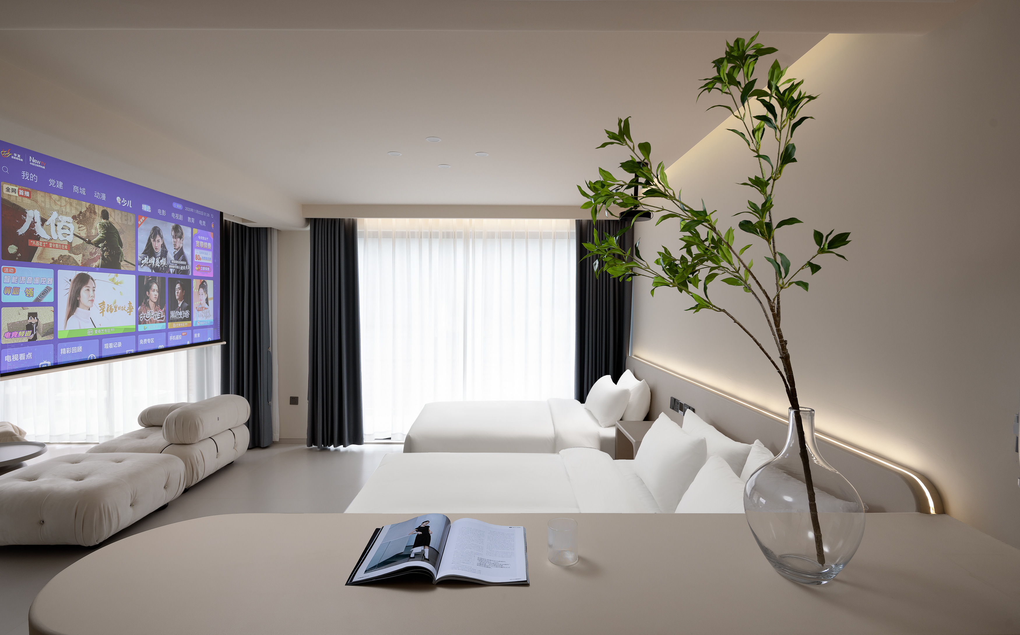 Jane Oxygen Light Family Twin Room With Hd Projection + 90 ° Private Courtyard Parlor + Smart Home + Water Dispenser
