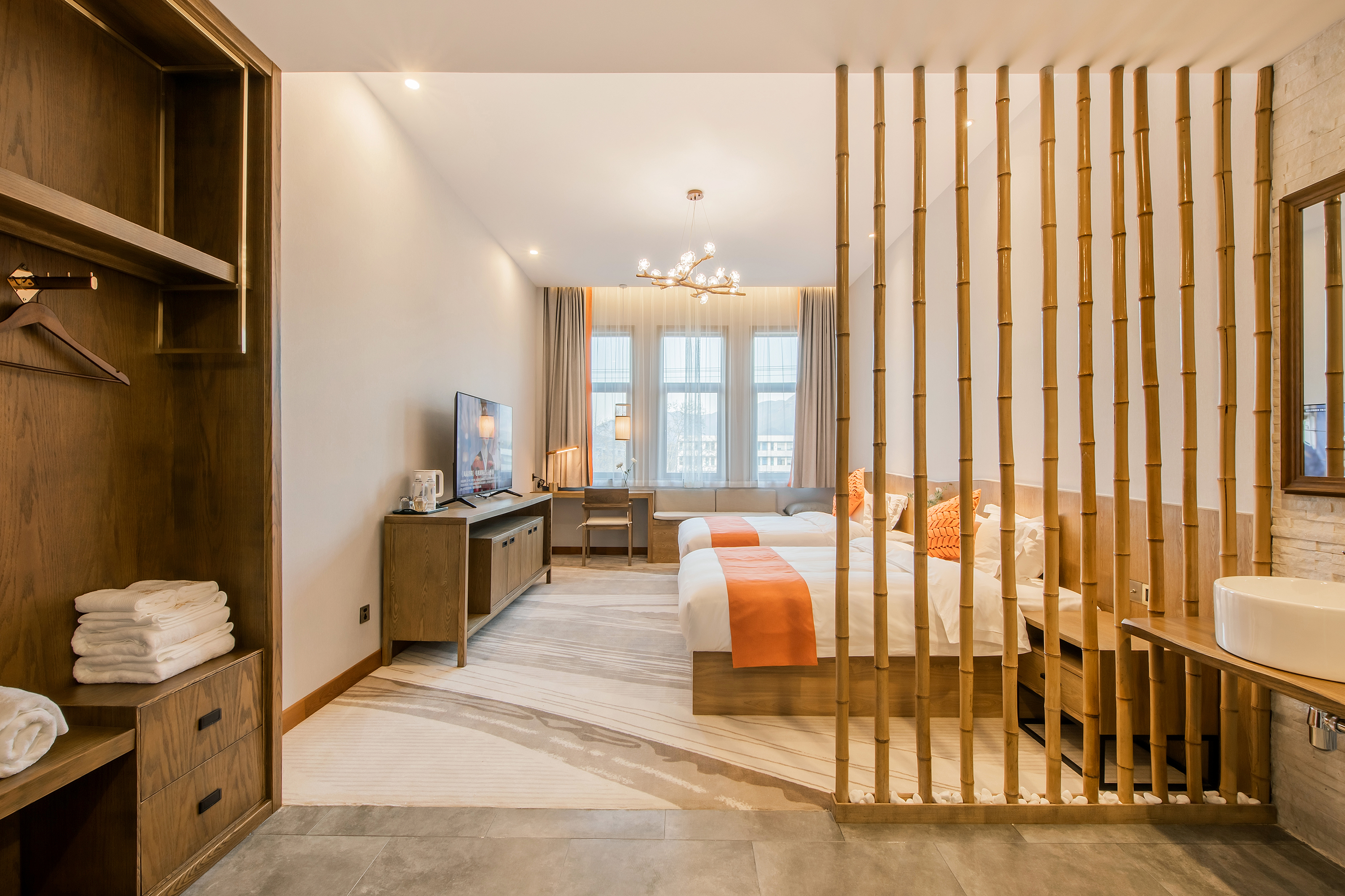 Xi Lu Light Luxury Twin Room (Window Desk Scenic View + Leisure Couch + Hd Television + Bathroom Wet-Dry Separation)