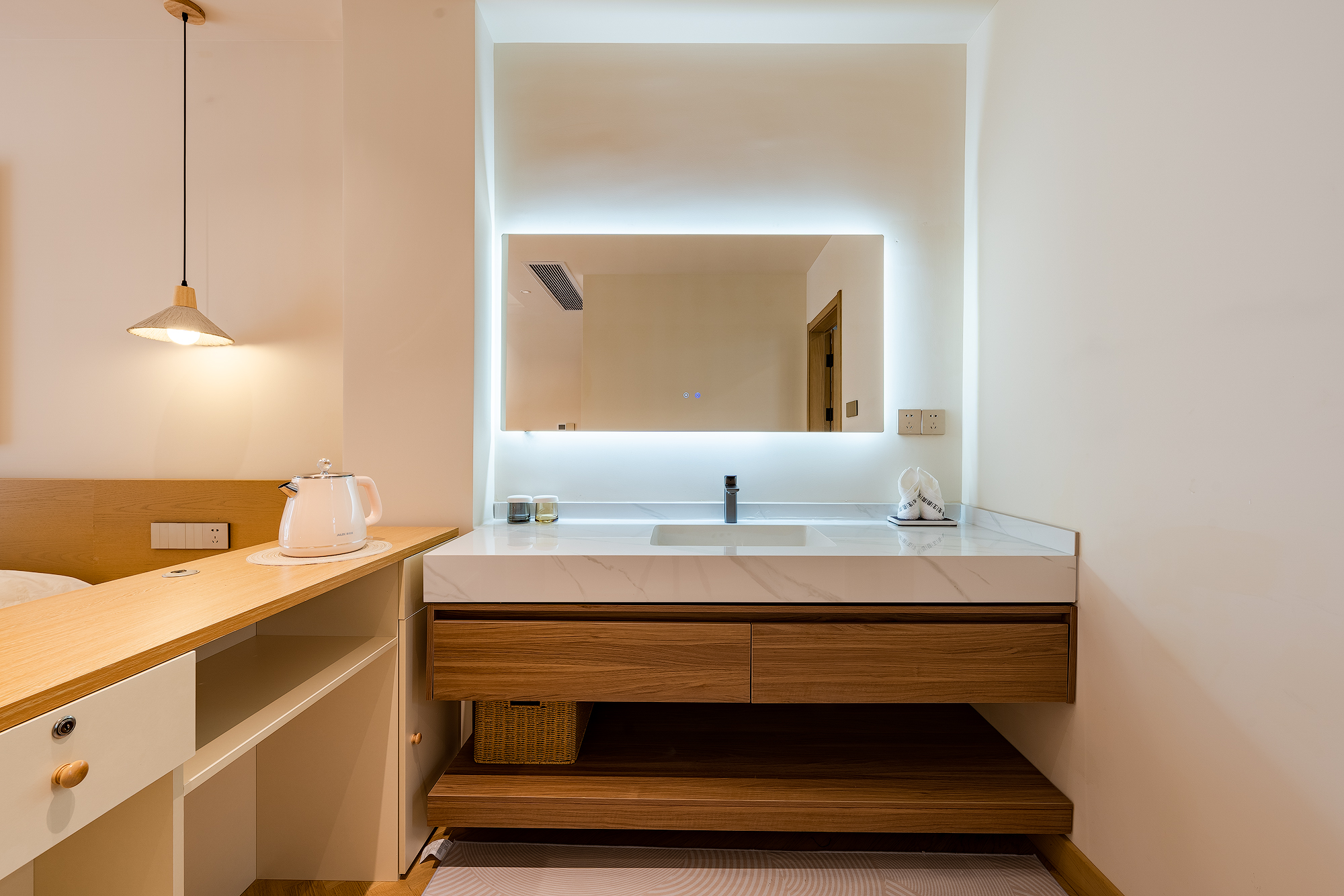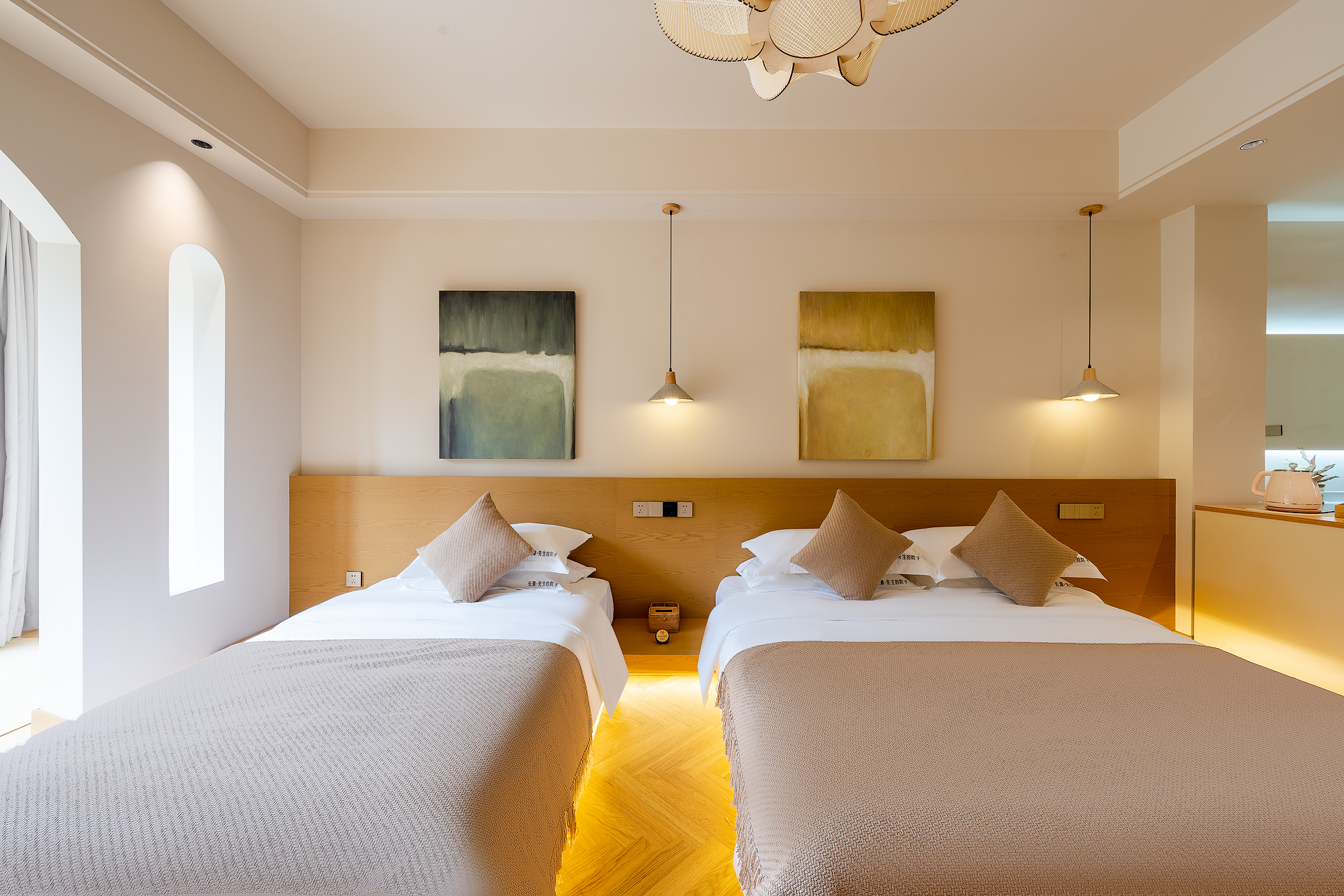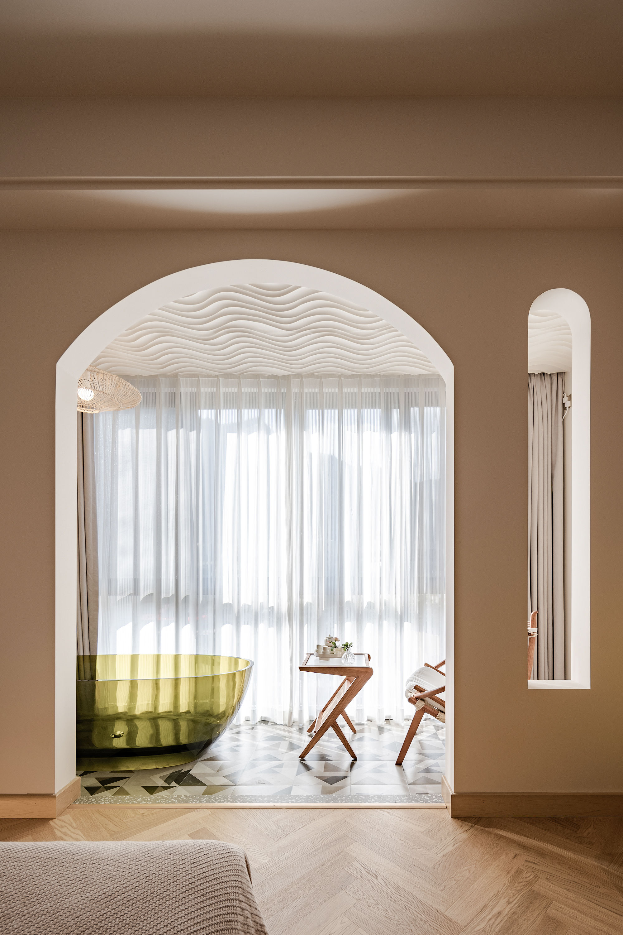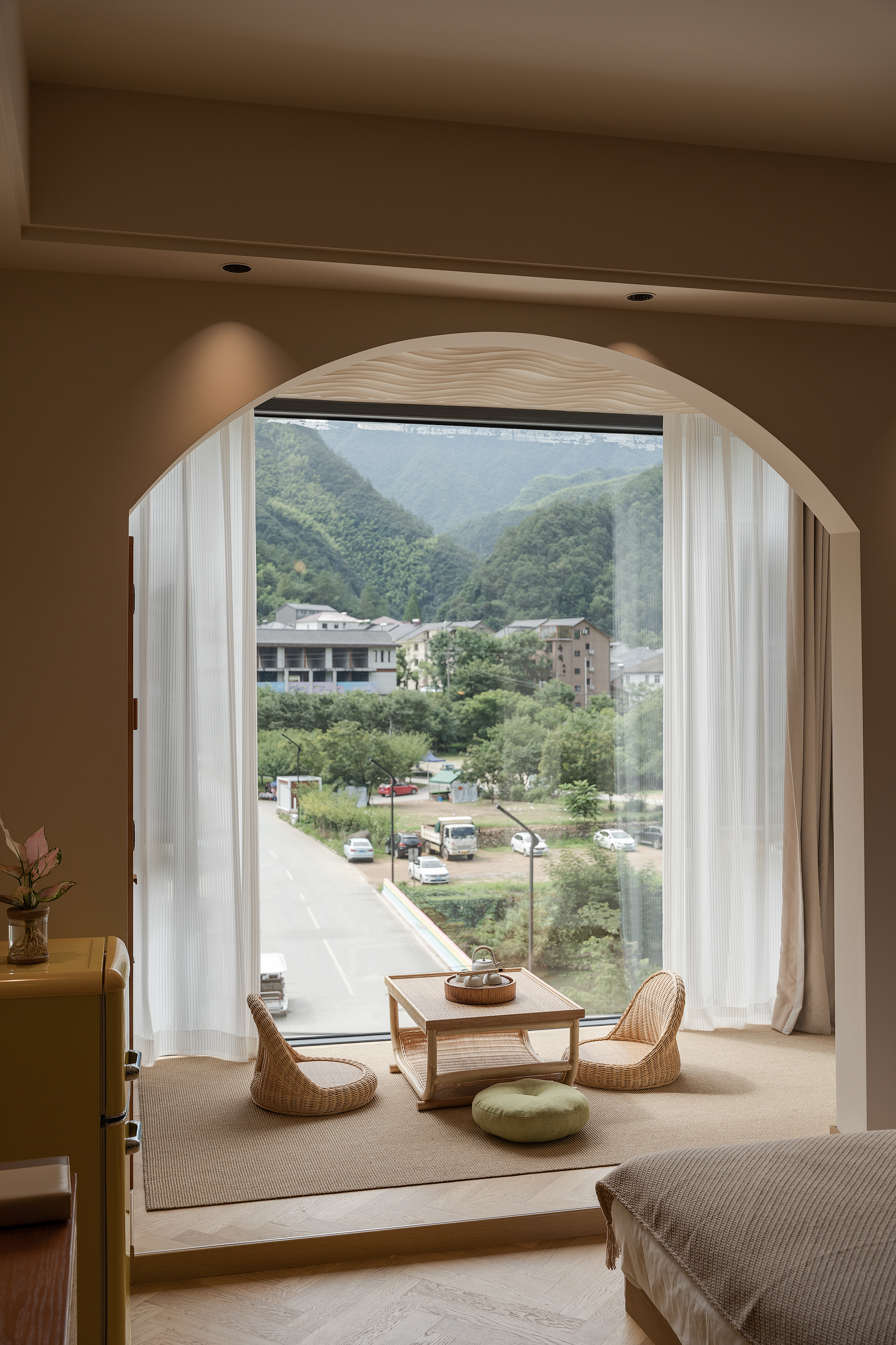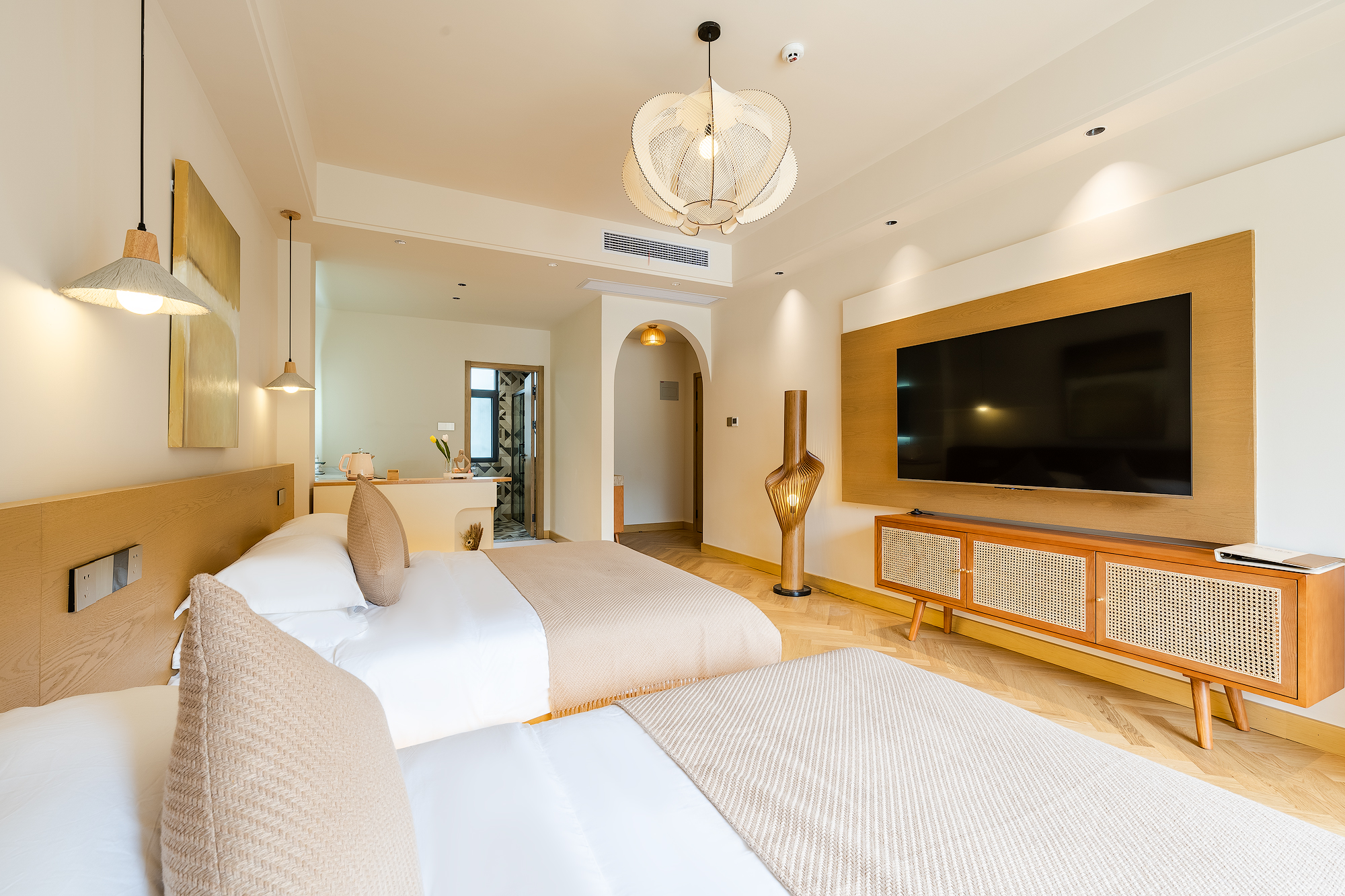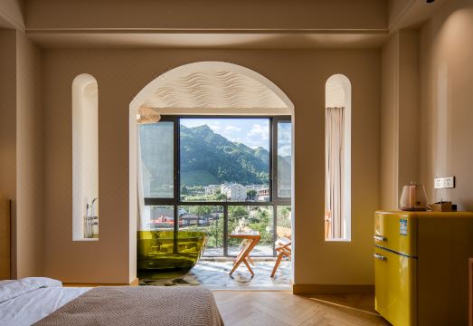 Landscape Bathtub Climbing Family Room (65 Inch LCD Movie + Latex Mattress + Round Coffee Table + Private Bathtub + Jiumu Smart Toilet)