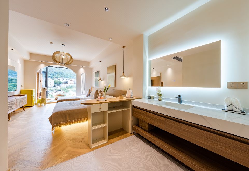 Family Room With Landscaped Bathtub (65 Inch LCD TV + Latex Mattress + Viewing Terrace + Square Coffee Table + Private Bathtub + Jiumu Smart Toilet)
