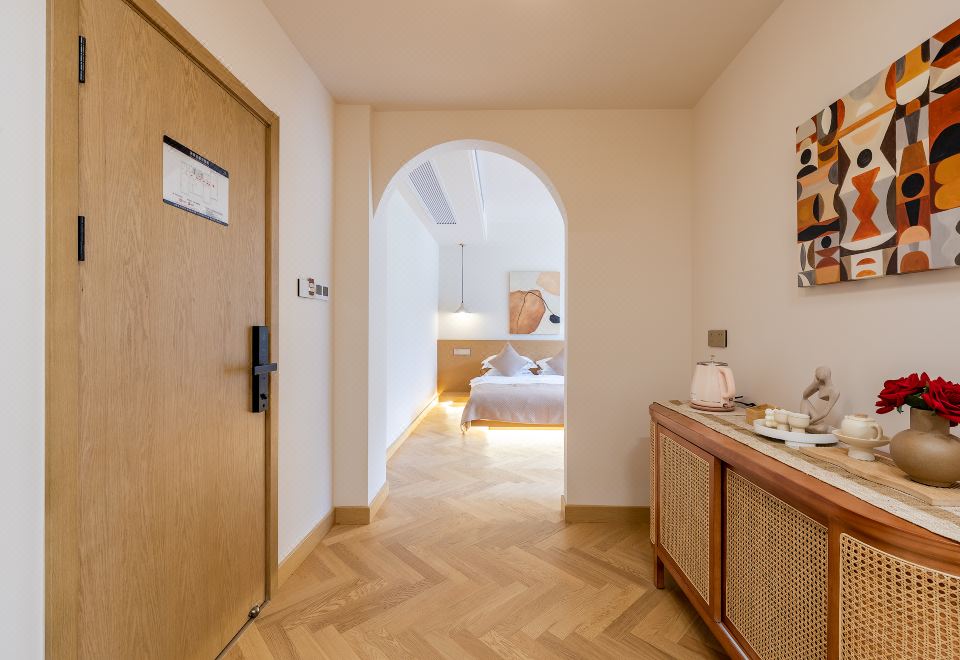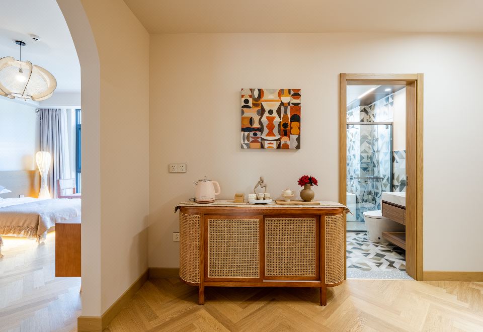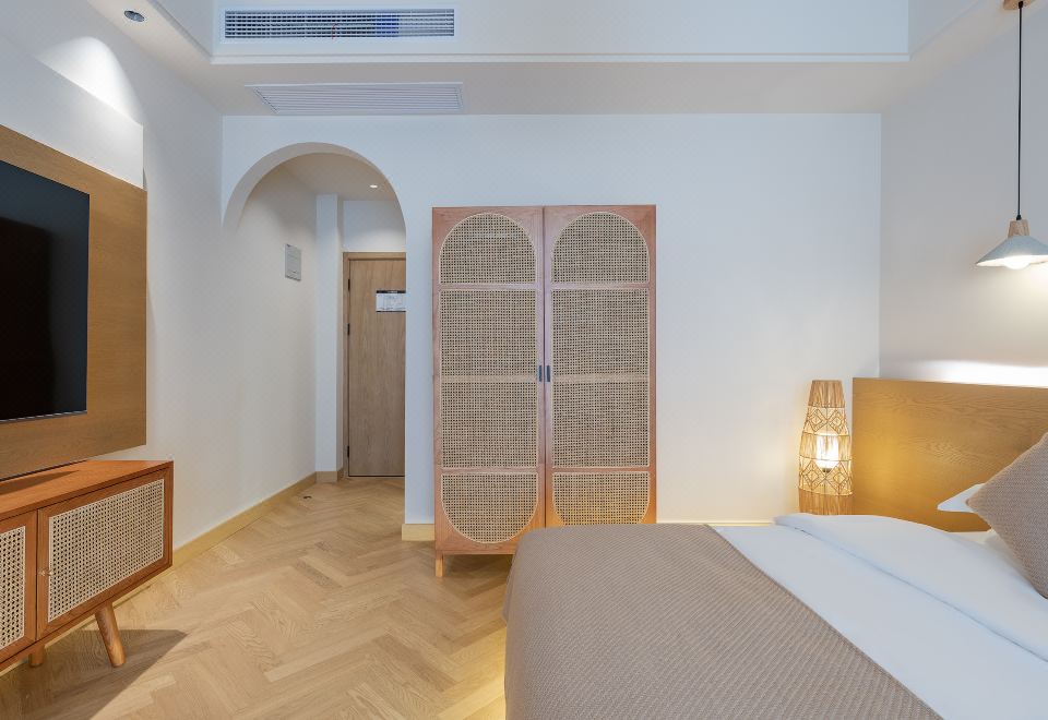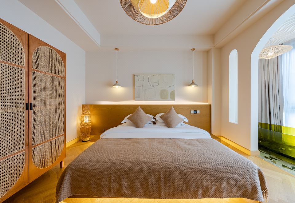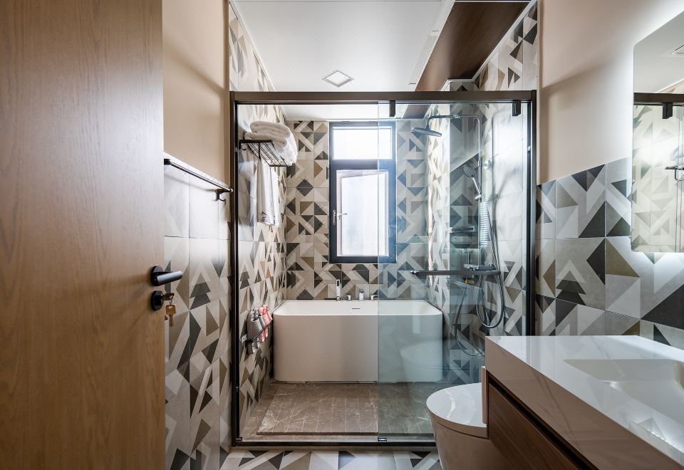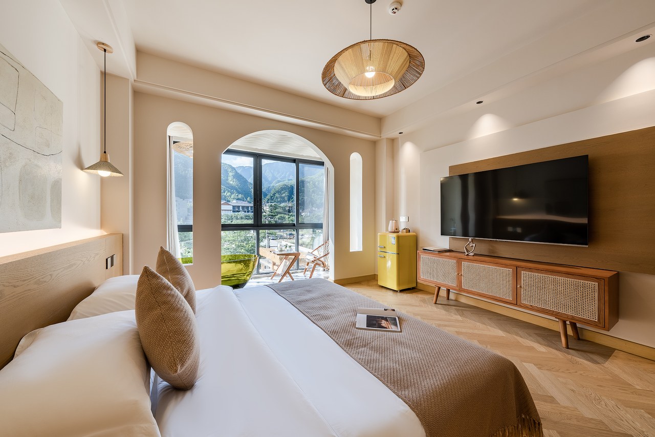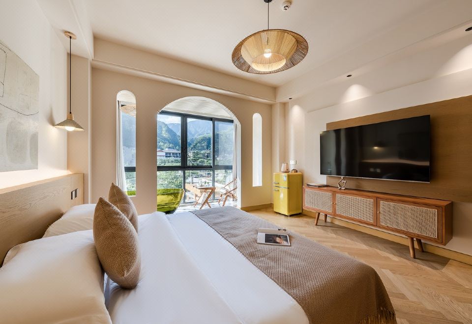Queen Bed Room With Landscaped Bathtub (65 Inch LCD TV + Latex Mattress + Viewing Terrace + Square Coffee Table + Private Bathtub + Jiumu Smart Toilet)