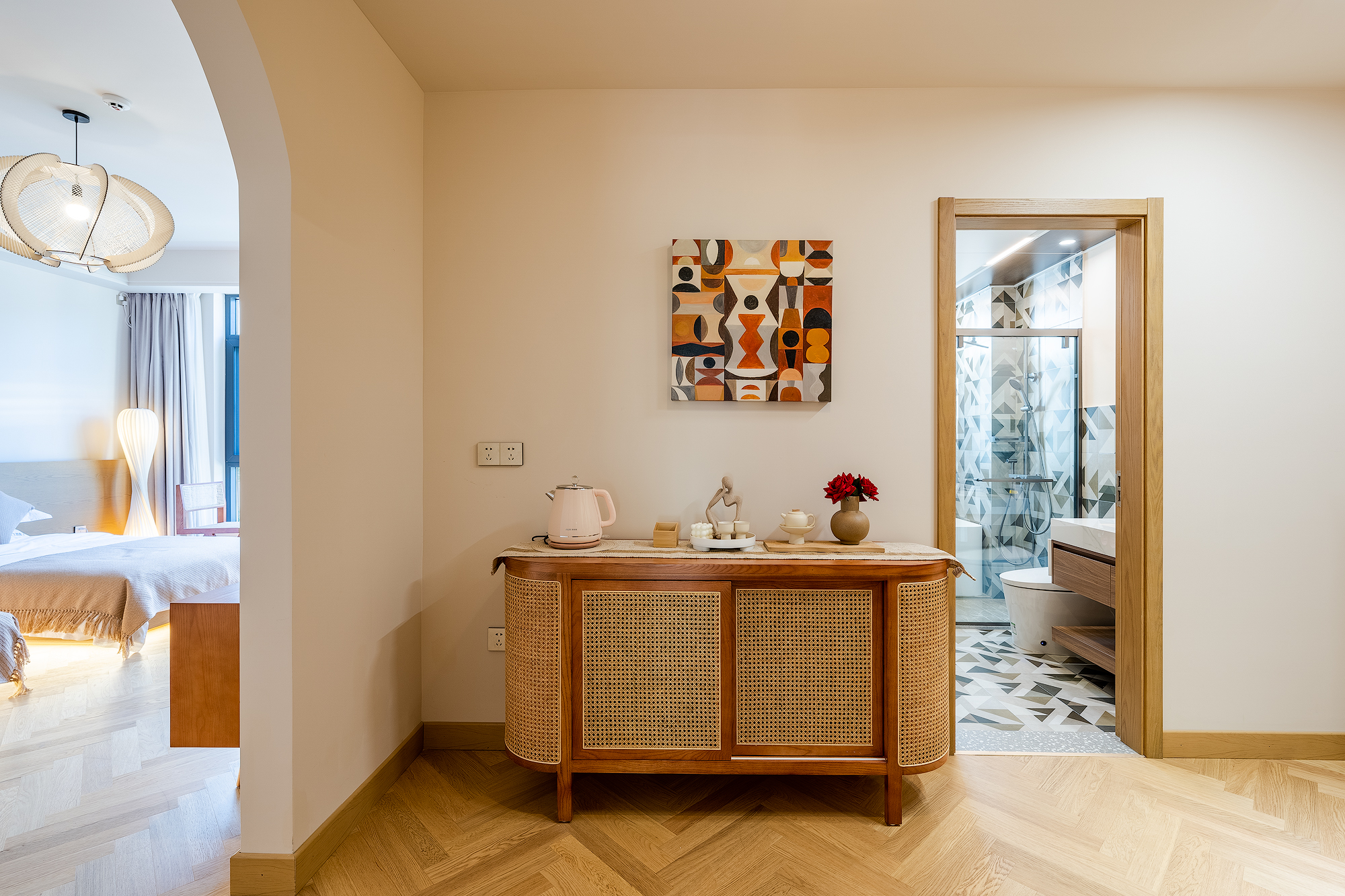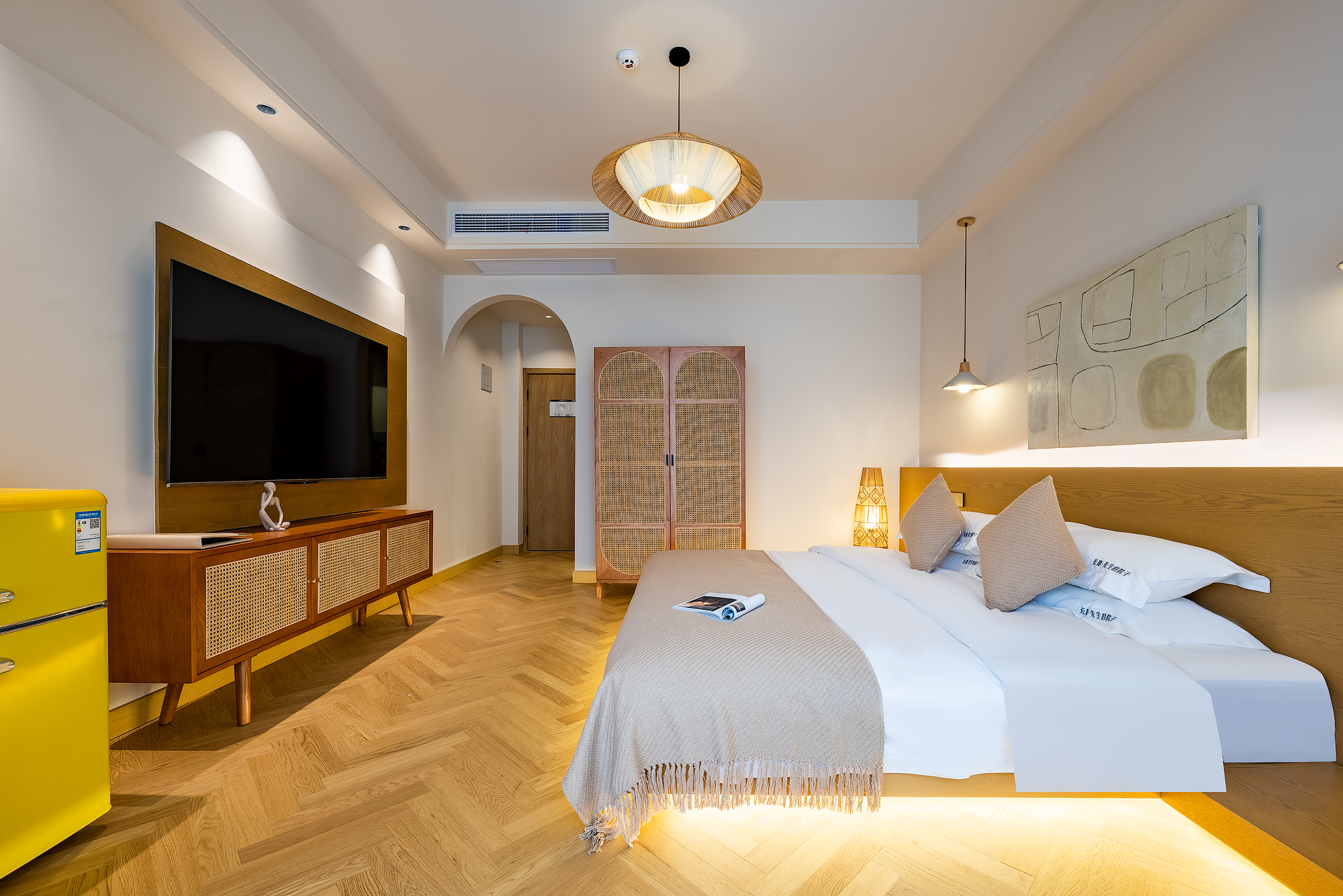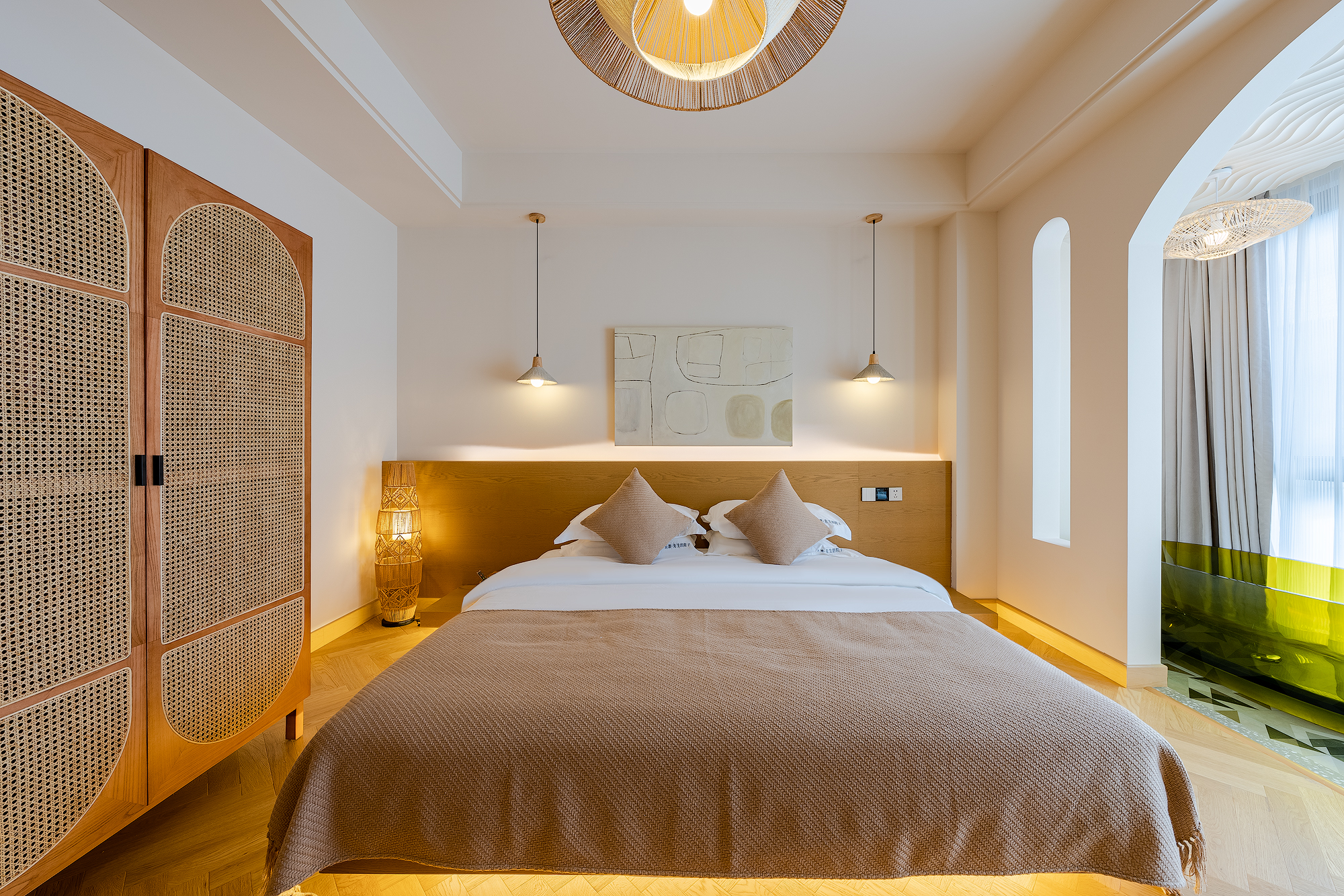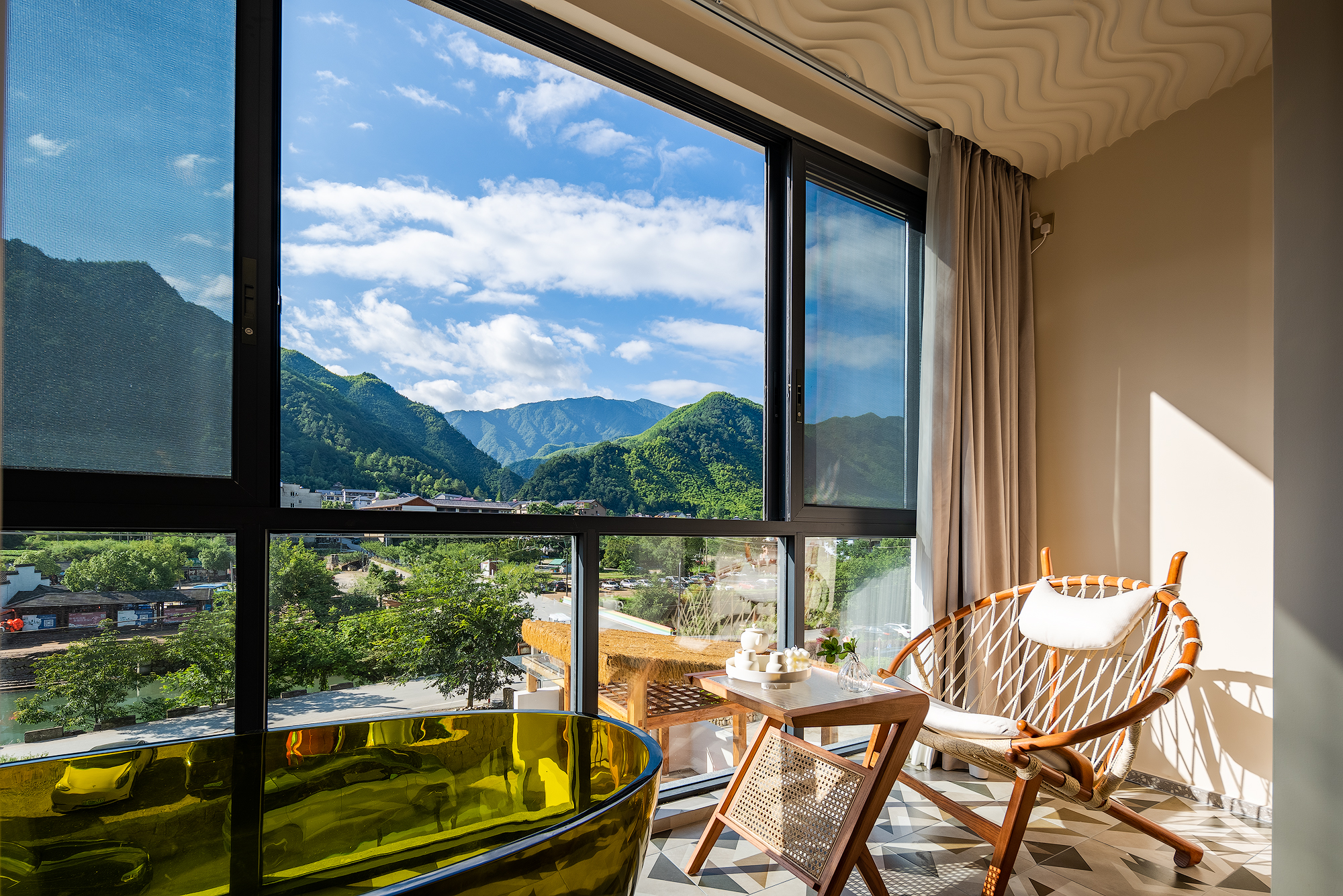 Queen Bed Room With Landscaped Bathtub (65 Inch LCD TV + Latex Mattress + Viewing Terrace + Square Coffee Table + Private Bathtub + Jiumu Smart Toilet)