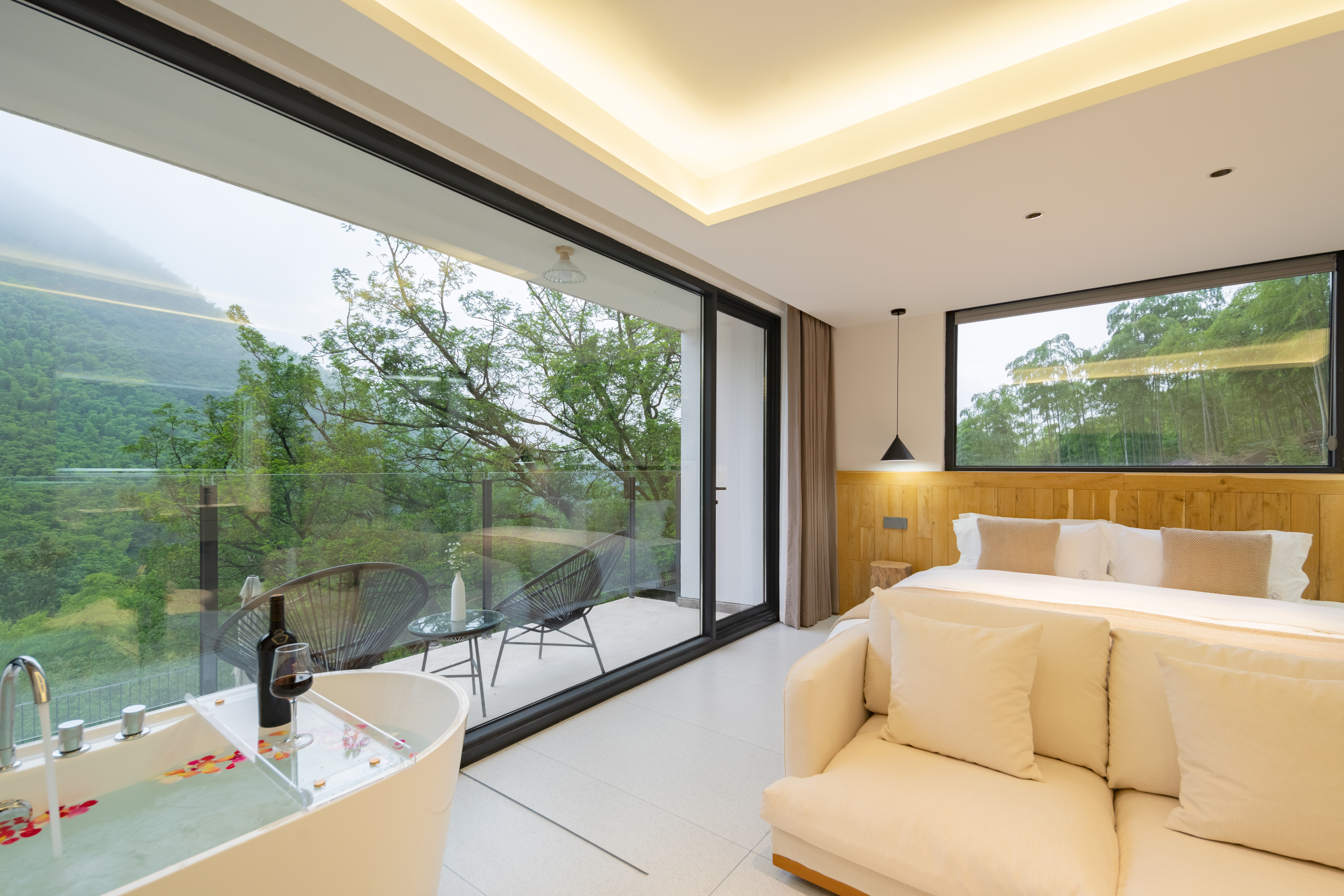 Qiyun Bamboo · Design Double Bed Room With Mountain Panorama, Tub&Scenic Terrace