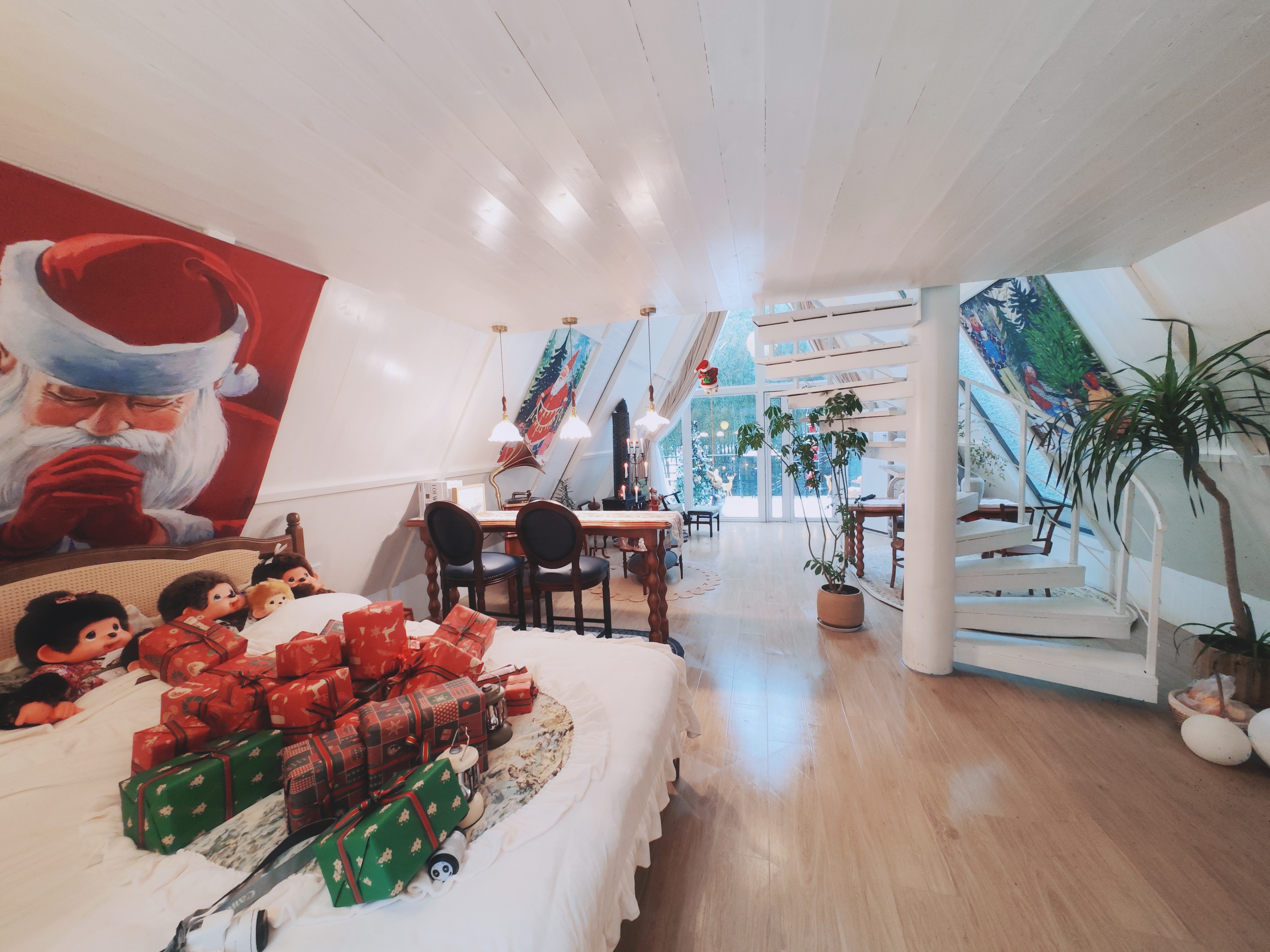 當時的月亮 · 雪白複式芬蘭聖誕木屋套房【山野幽居+環山視野】
