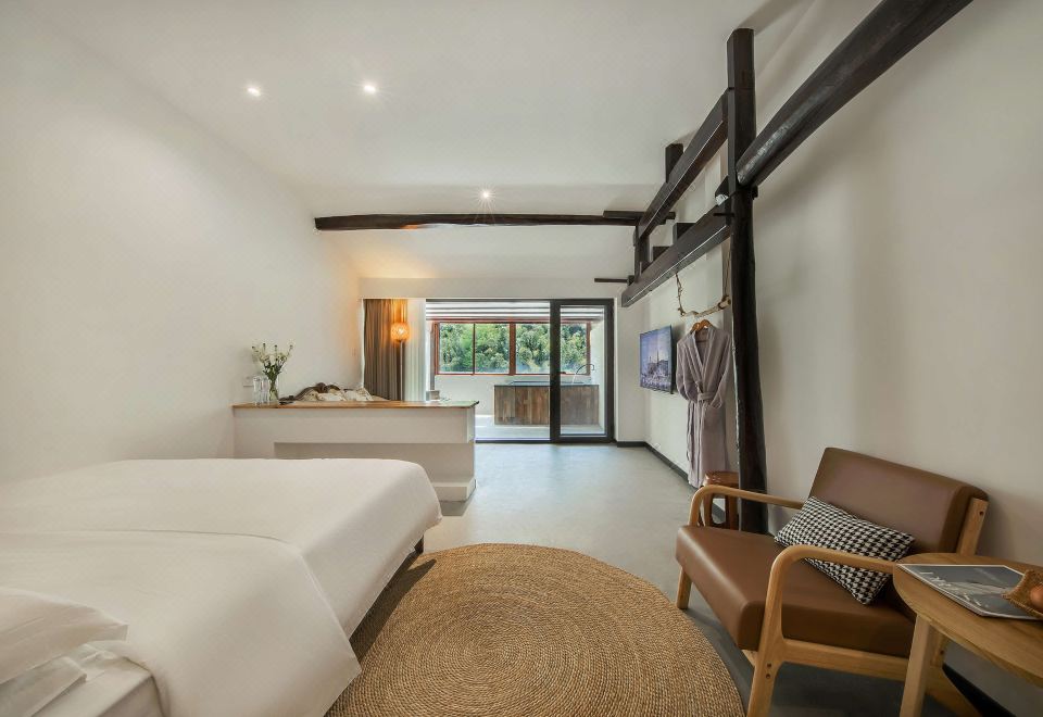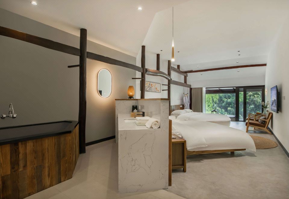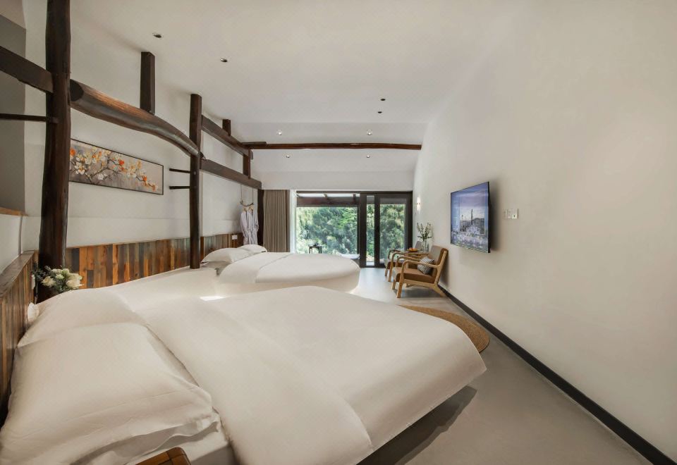 山景雙大床家庭房-古糧倉改造·全景山景陽台+室內私湯温泉+景觀品茗茶台