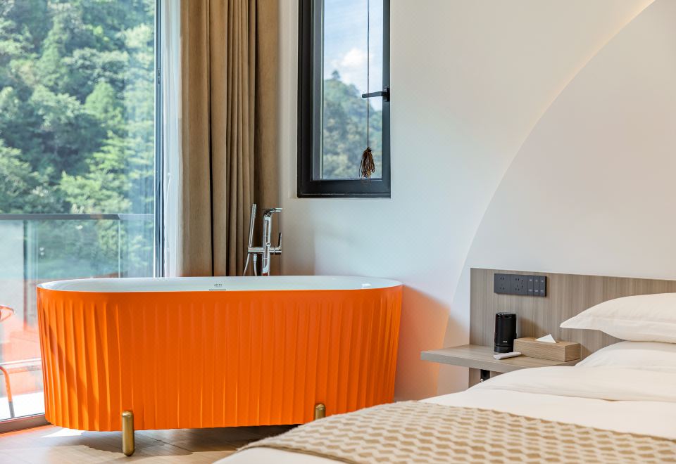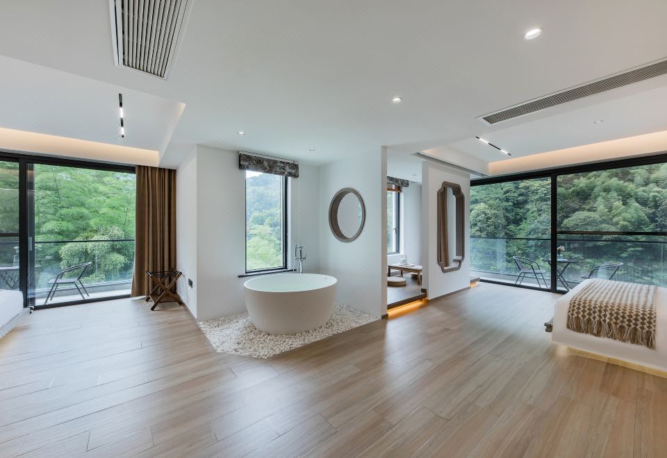 倚竹苑·山奢蜜月複式榻榻米大床房—浪漫空頂+山景浴缸+獨立陽台+庭院竹海景觀+智能馬桶+地暖