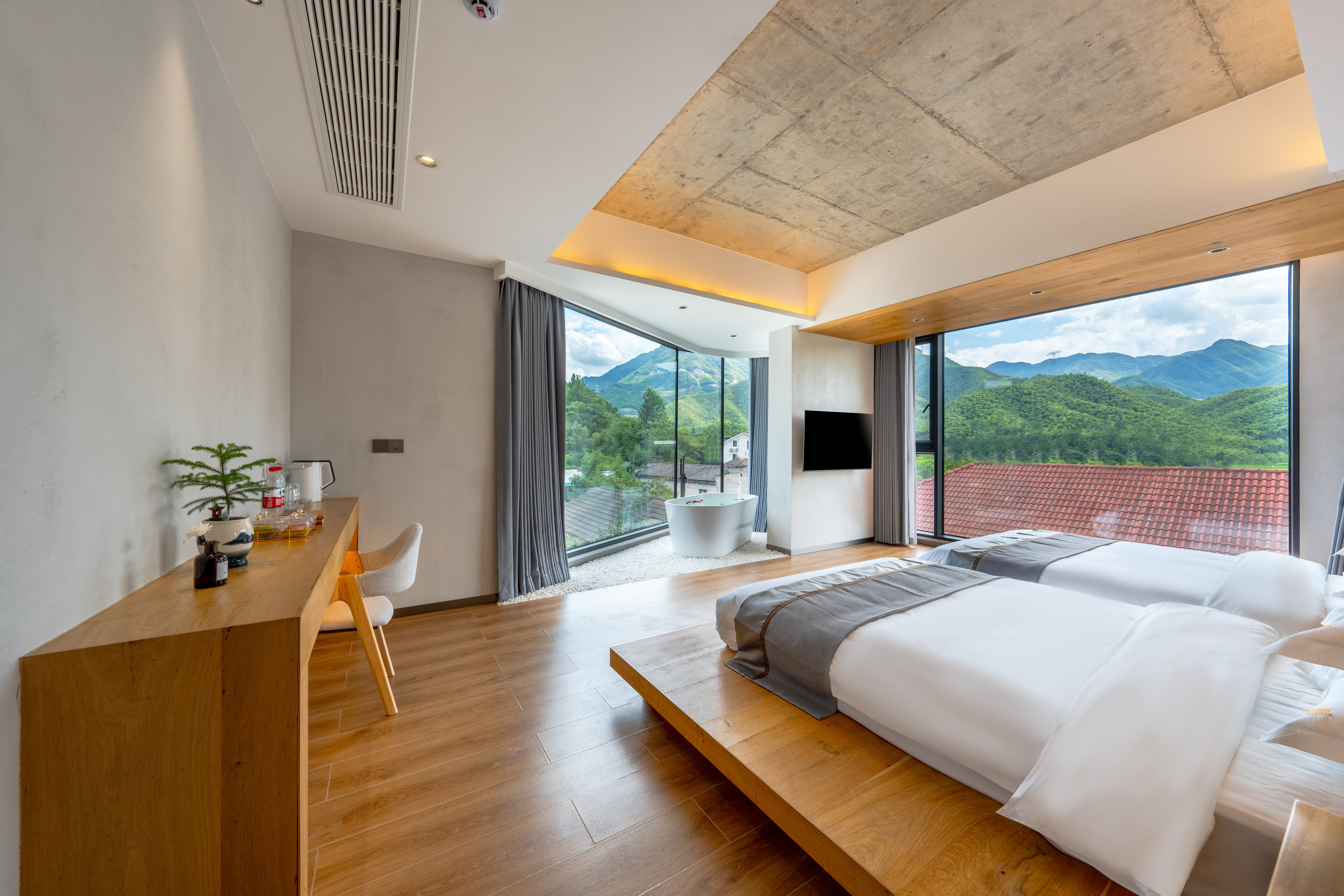 竹語·山隱大床房+超大落地窗+智能客控+浴缸