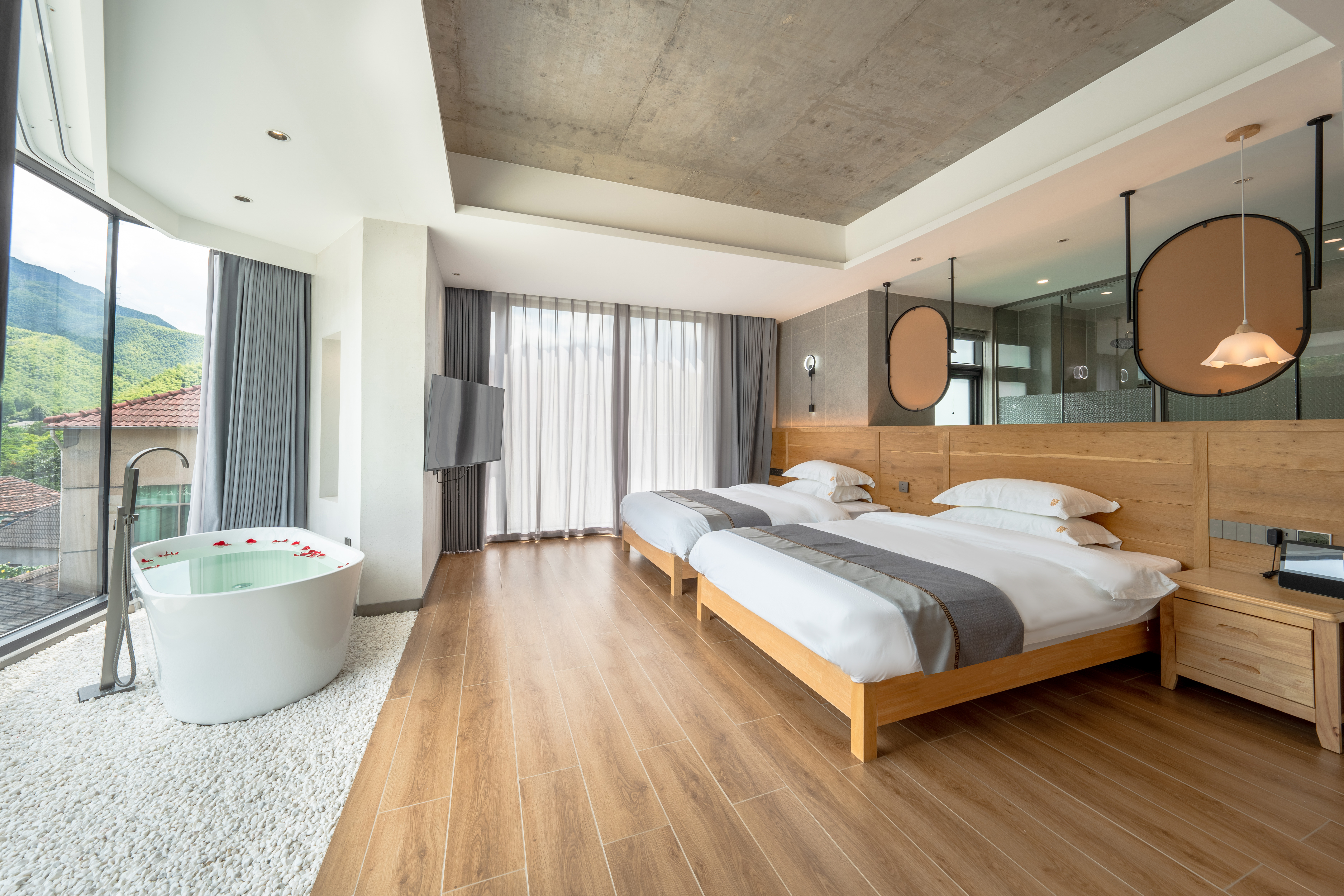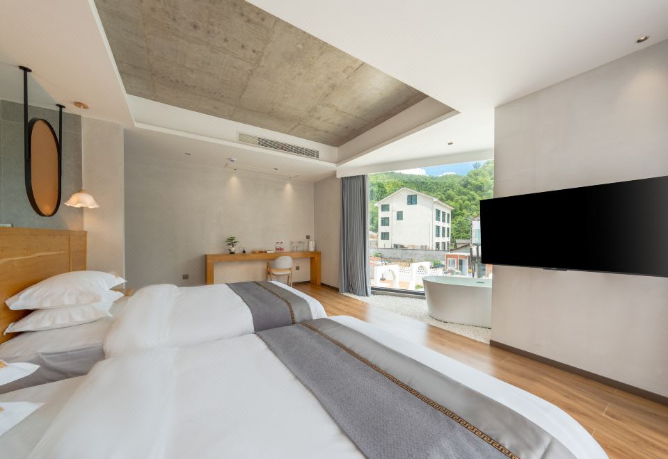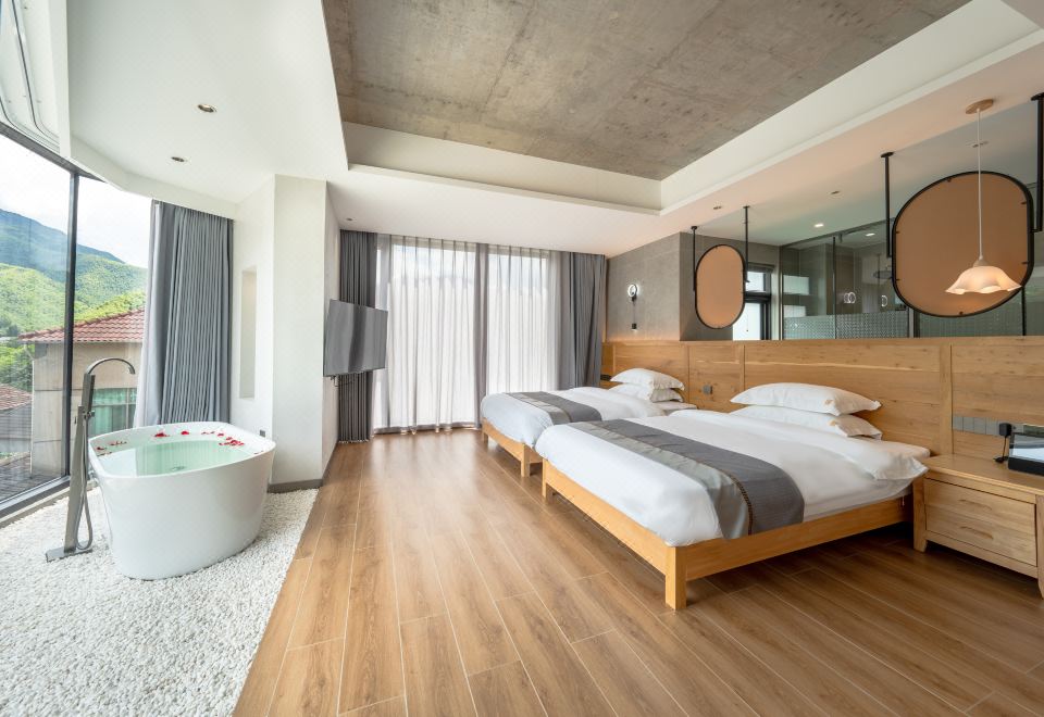 喊山·山隱雙床房+超大落地窗+智能客控+浴缸