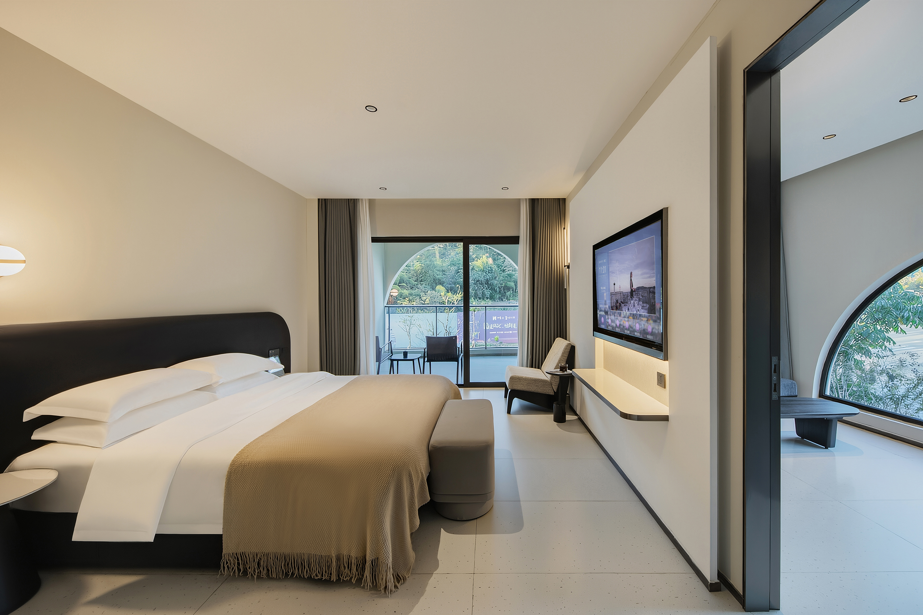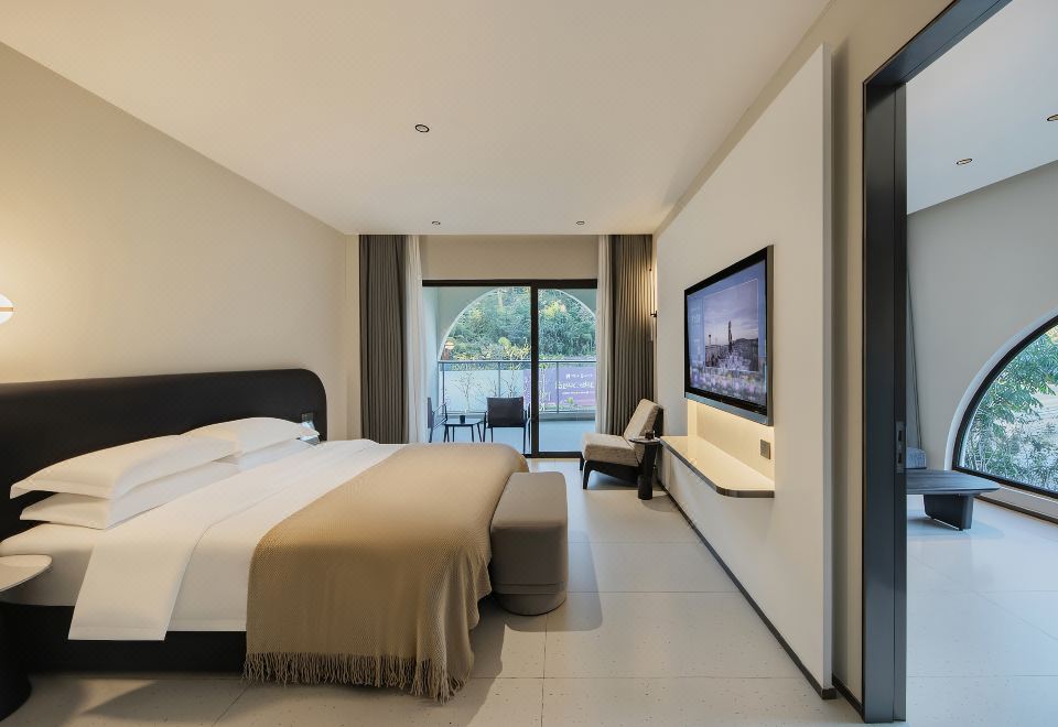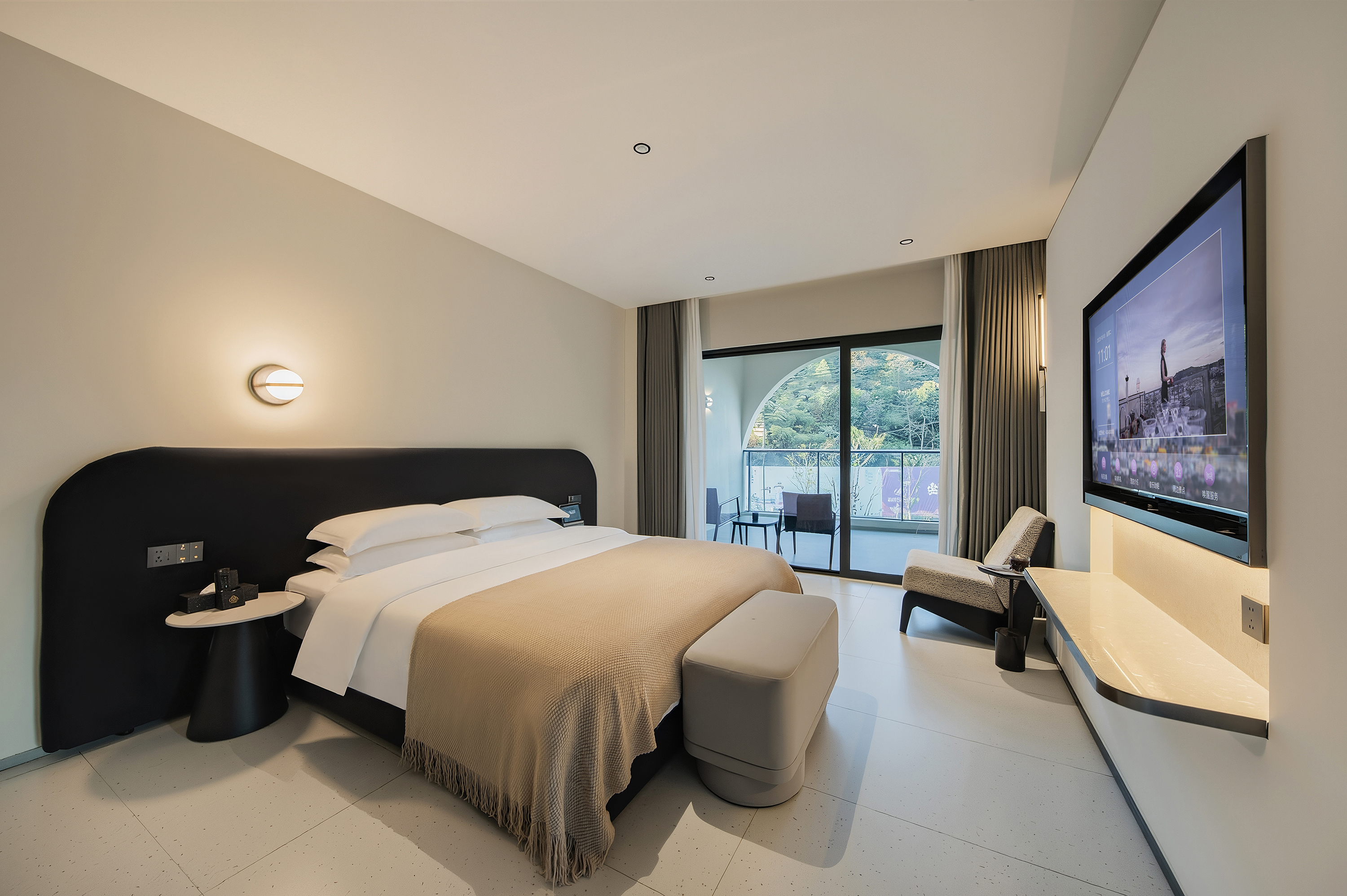 家庭房(全景弧形落地窗+书桌+零压床垫+裸棉床品)