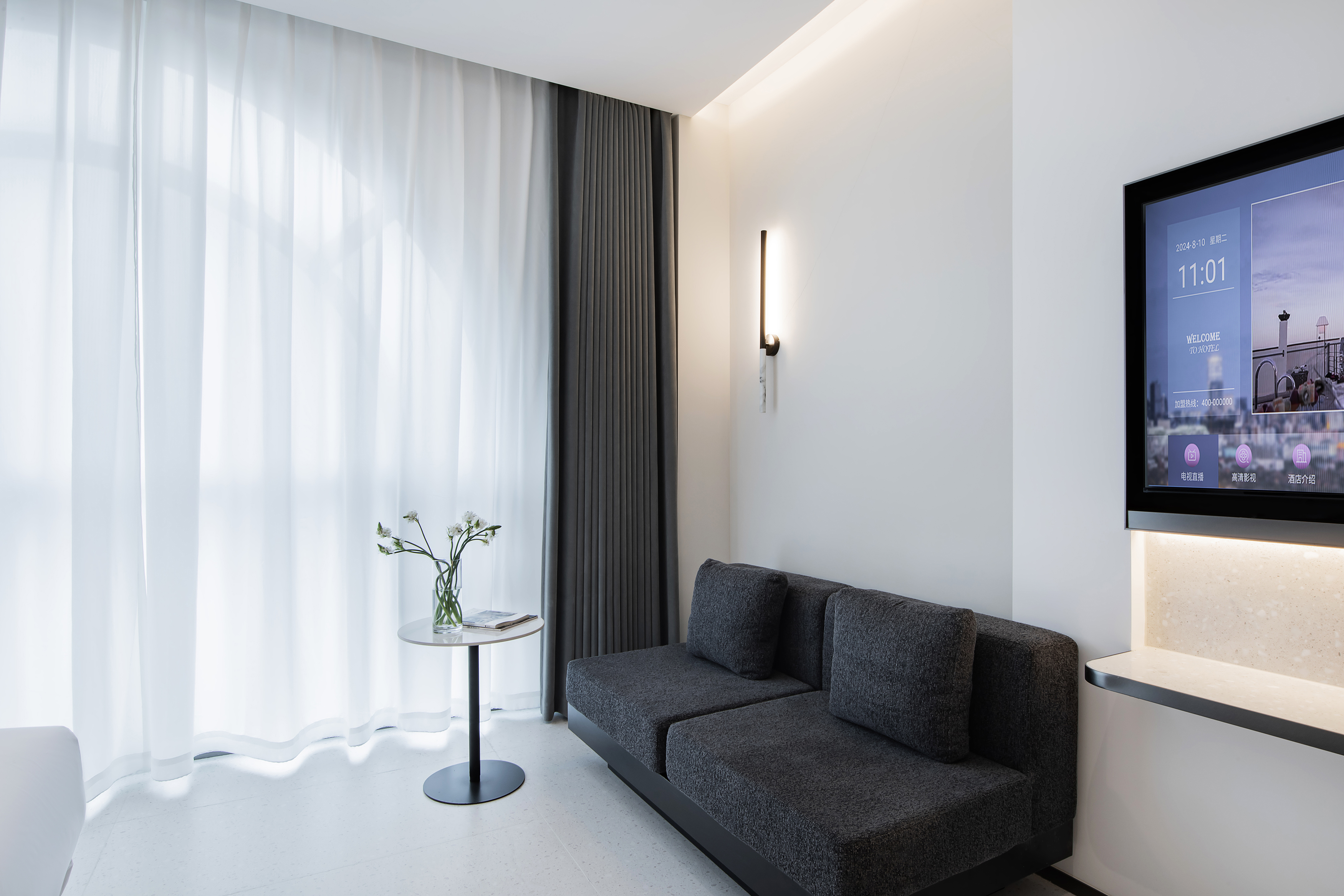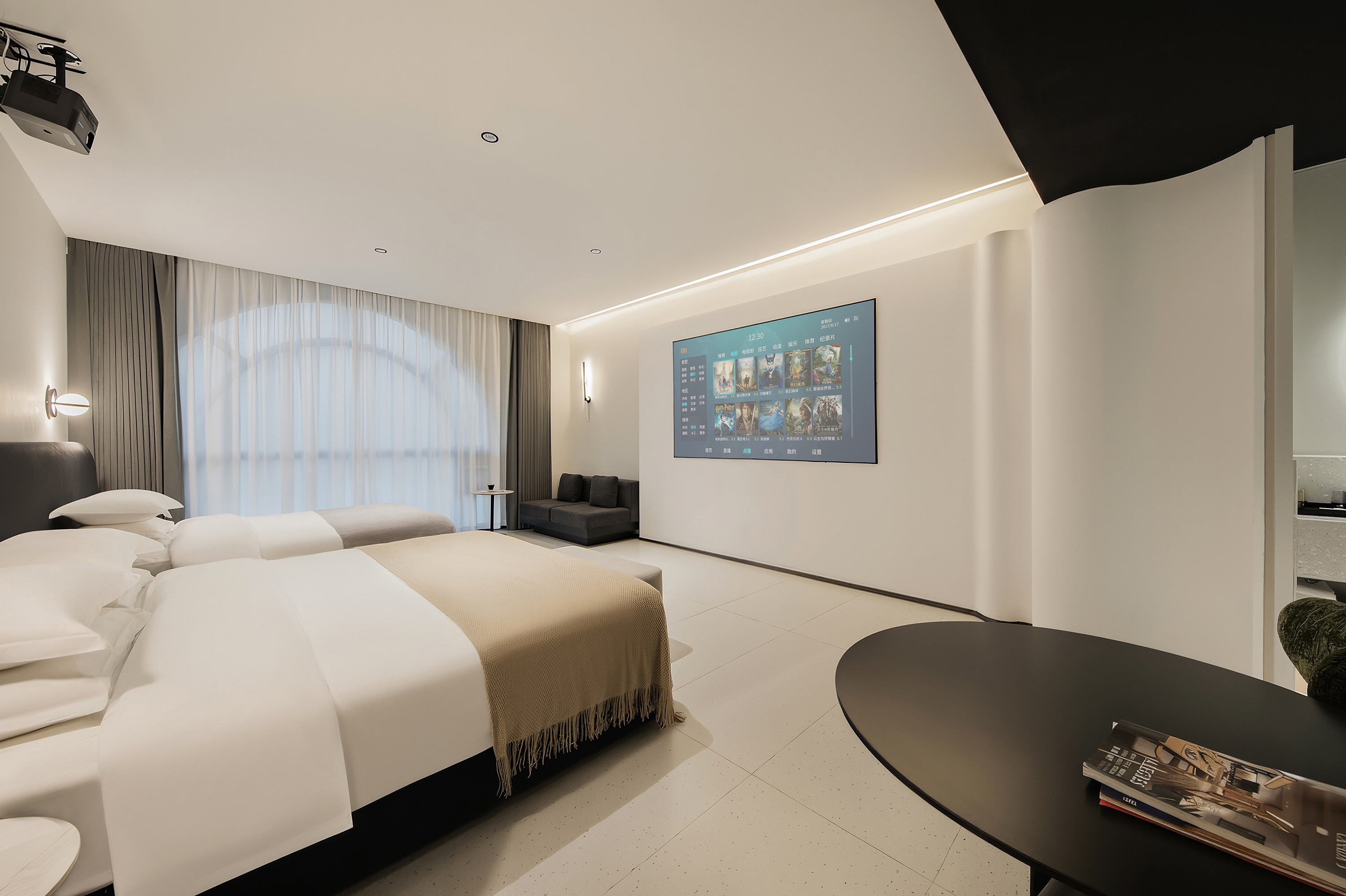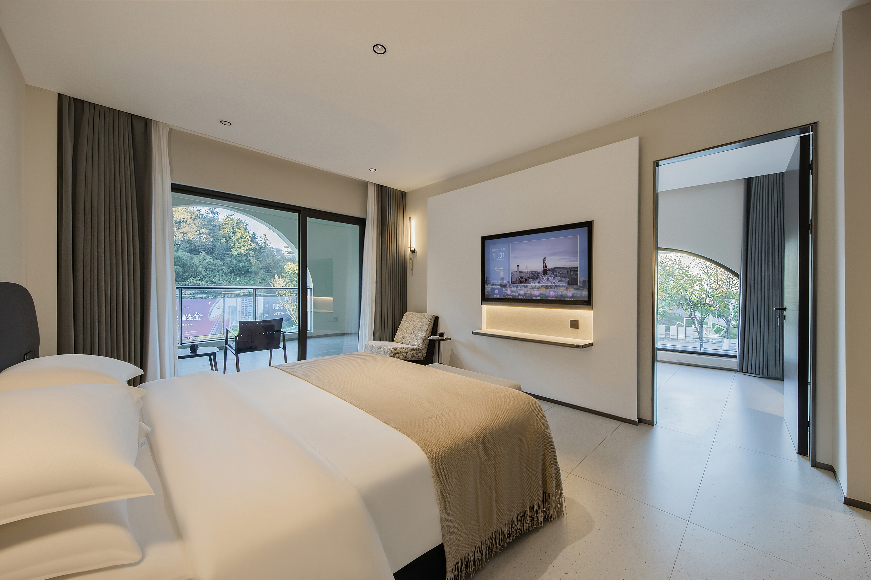 家庭房(全景弧形落地窗+书桌+零压床垫+裸棉床品)