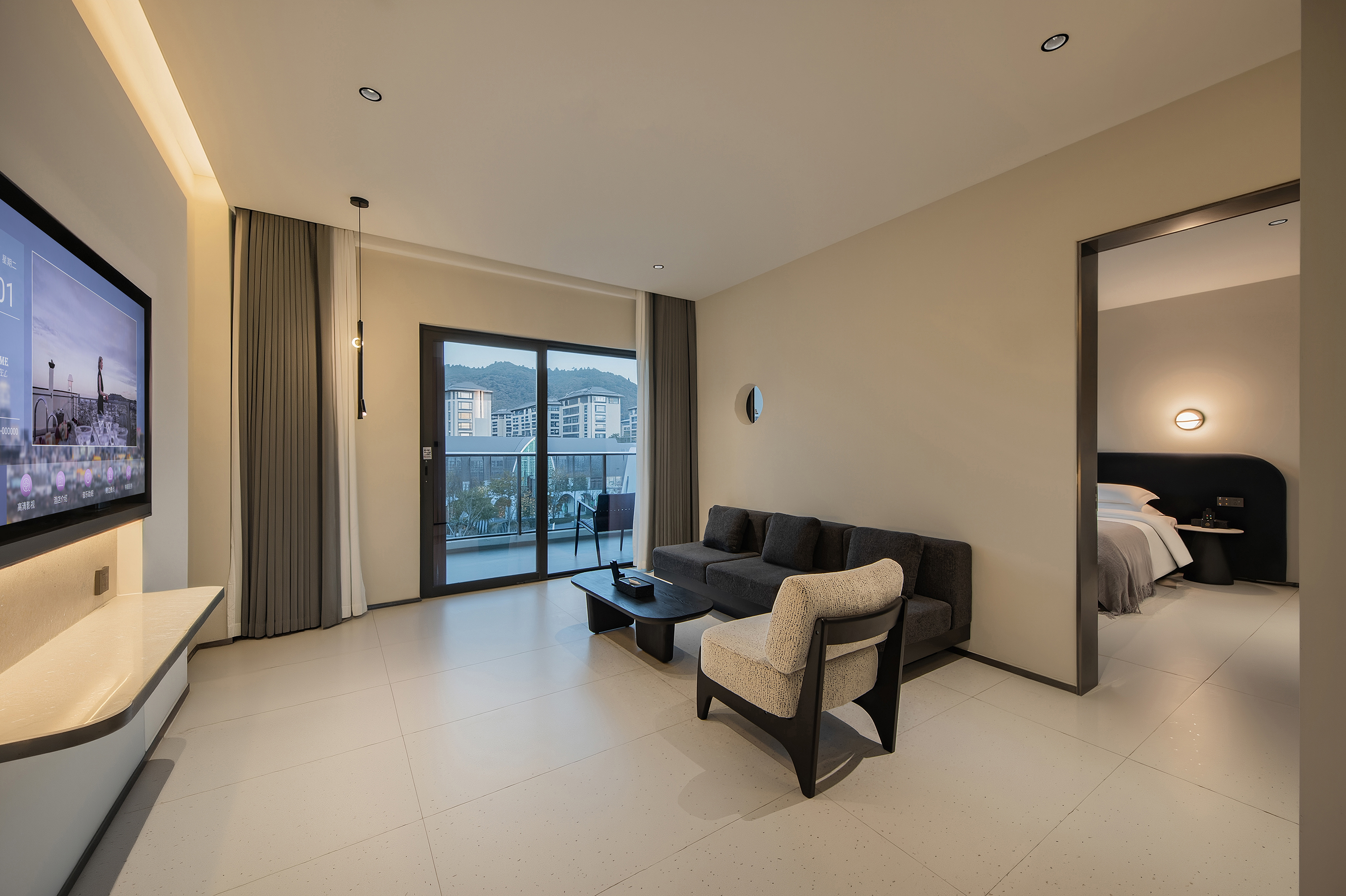 山景棋牌套房(一室一厅+棋牌桌+全景落地窗+大阳台)