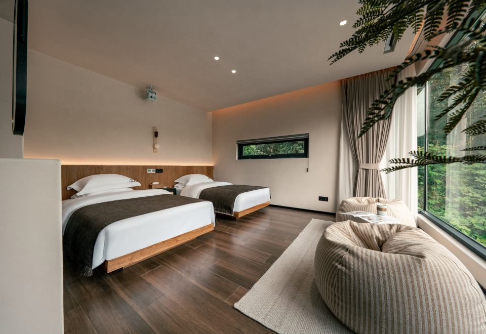 XIYU春月·雙床房【180°遠山青竹+懶人沙發+智能馬桶】