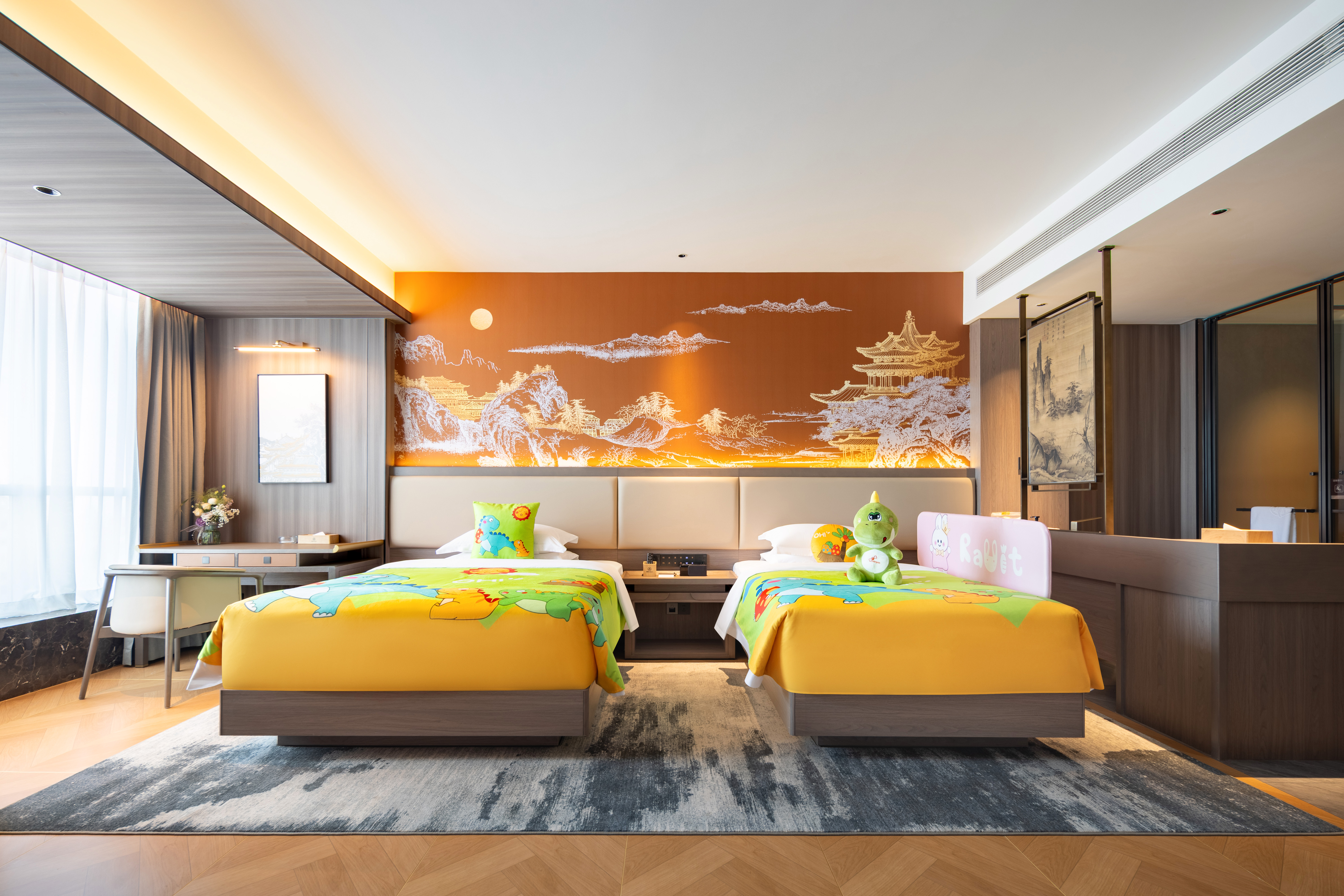乖乖恐龙亲子房【室内滑梯+小童洗护用品+电动马桶】