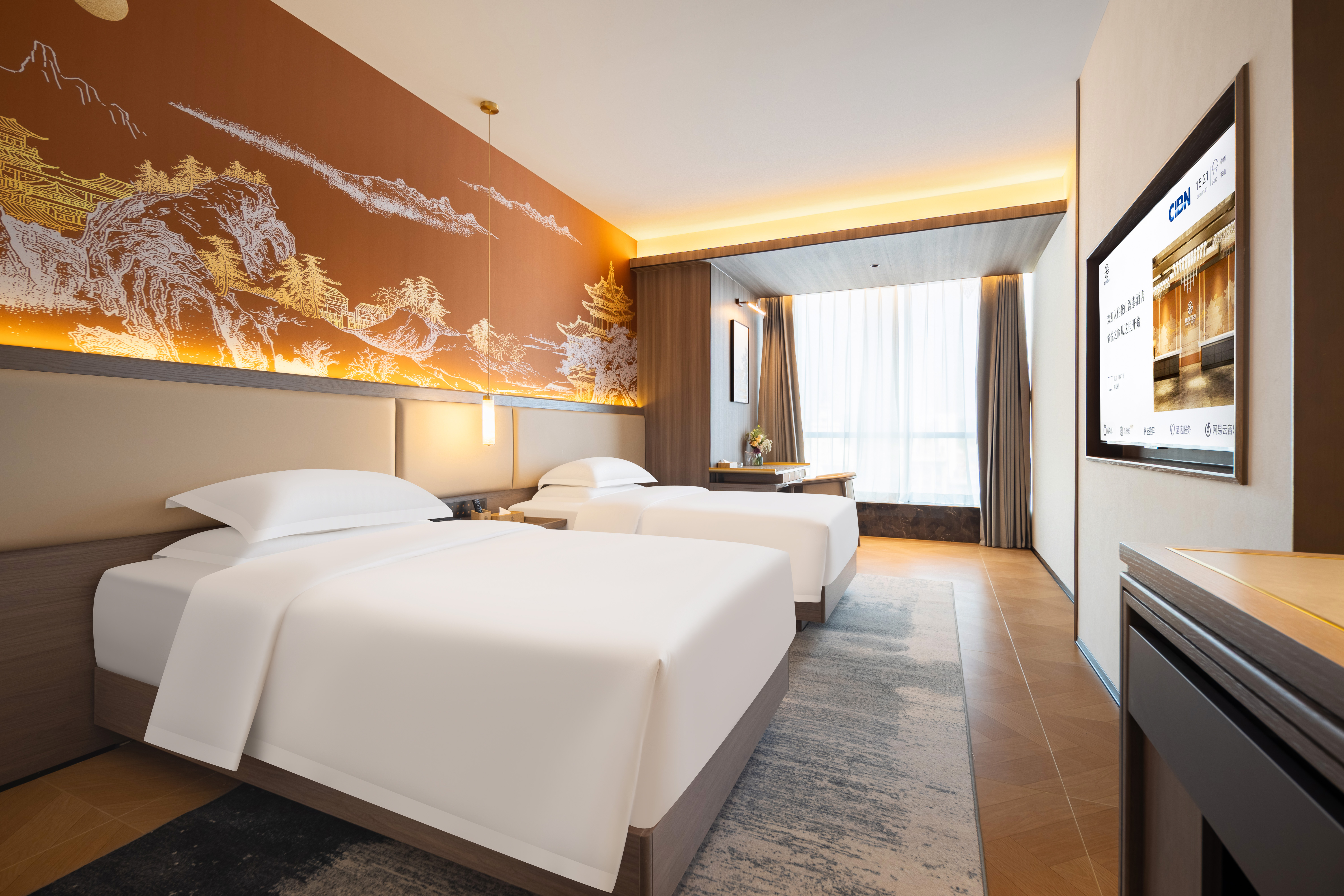高级城标双床房【广场景观+零压床垫+智能马桶】