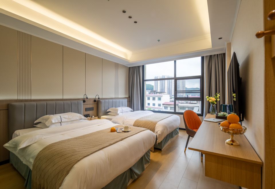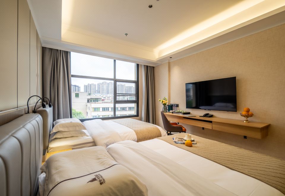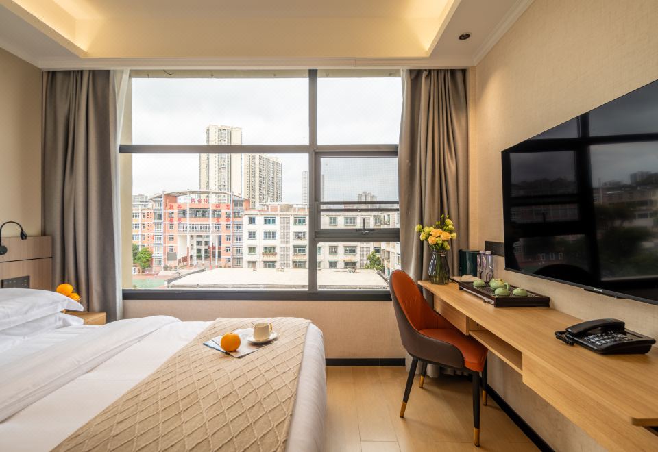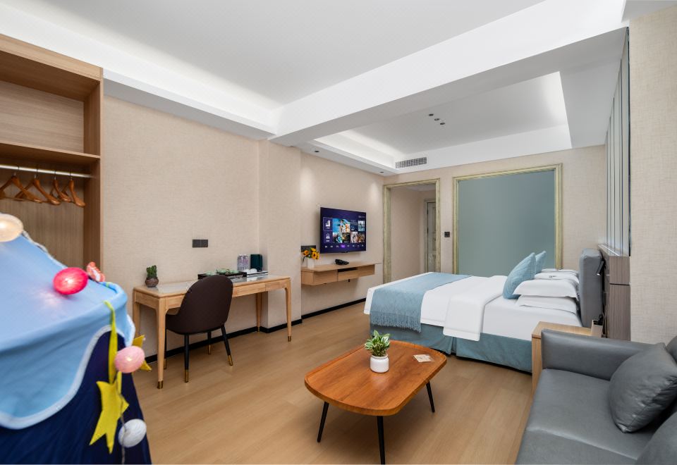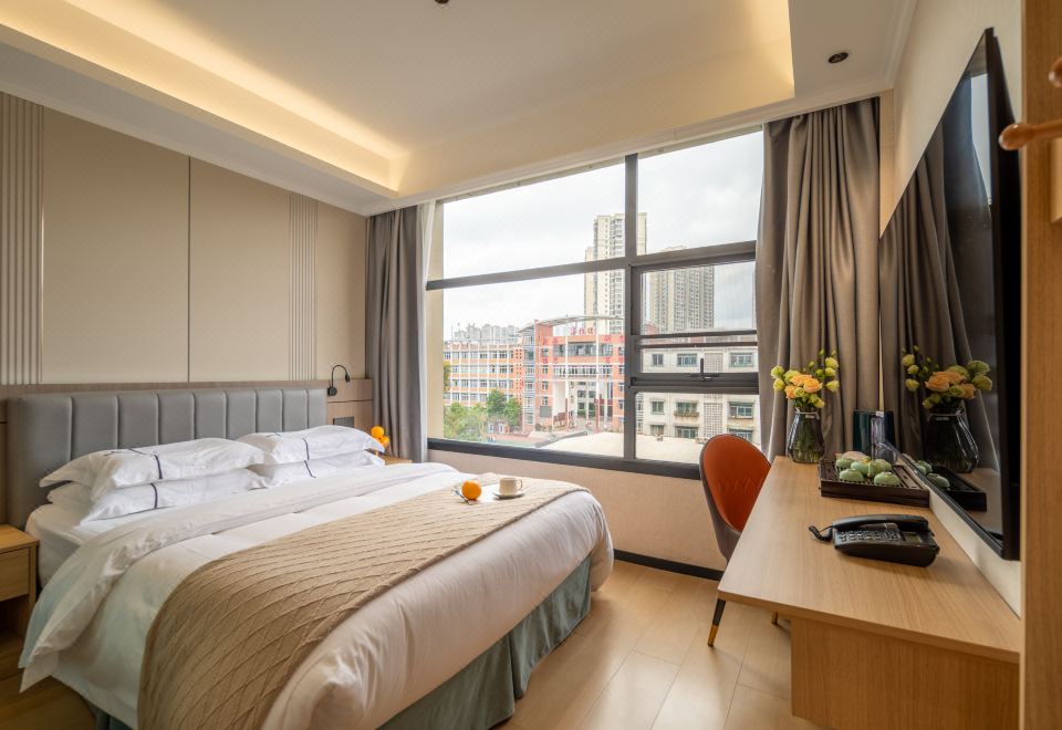 安睡城景大床房(全屋聲控+電動遮光窗簾+投屏電視)
