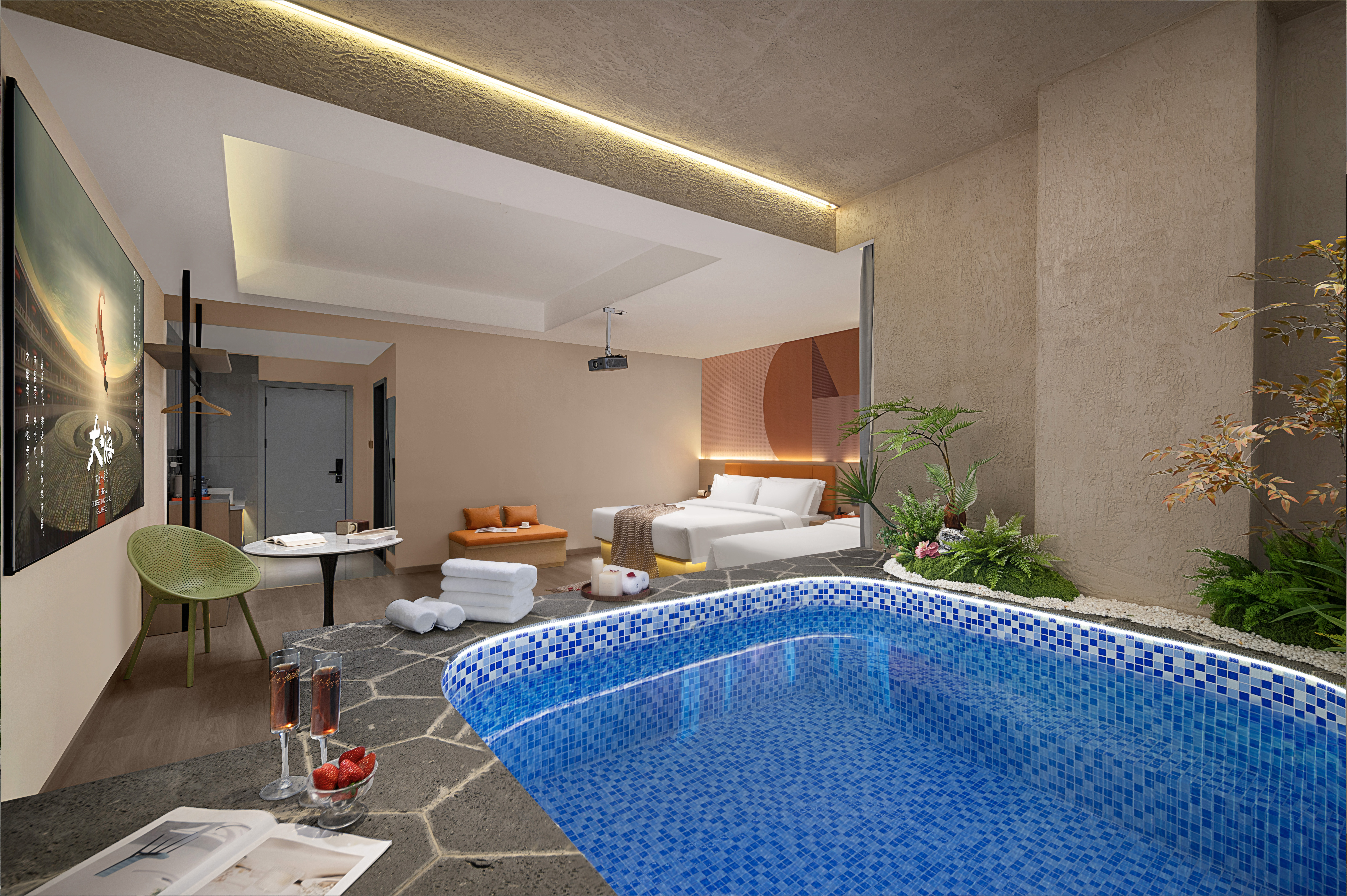 贵安樱花丨私汤温泉家庭房「天然私汤温泉+投影VIP会员」