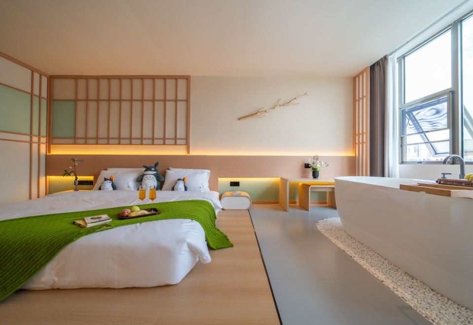 海棠醉日.情侣大床房【榻榻米+私汤浴缸+落地窗】
