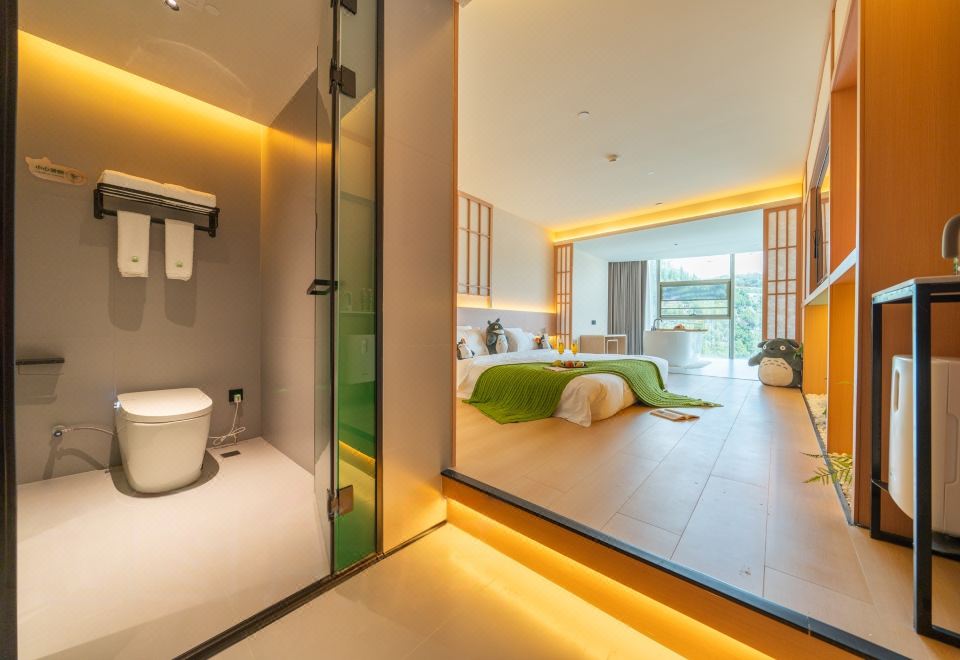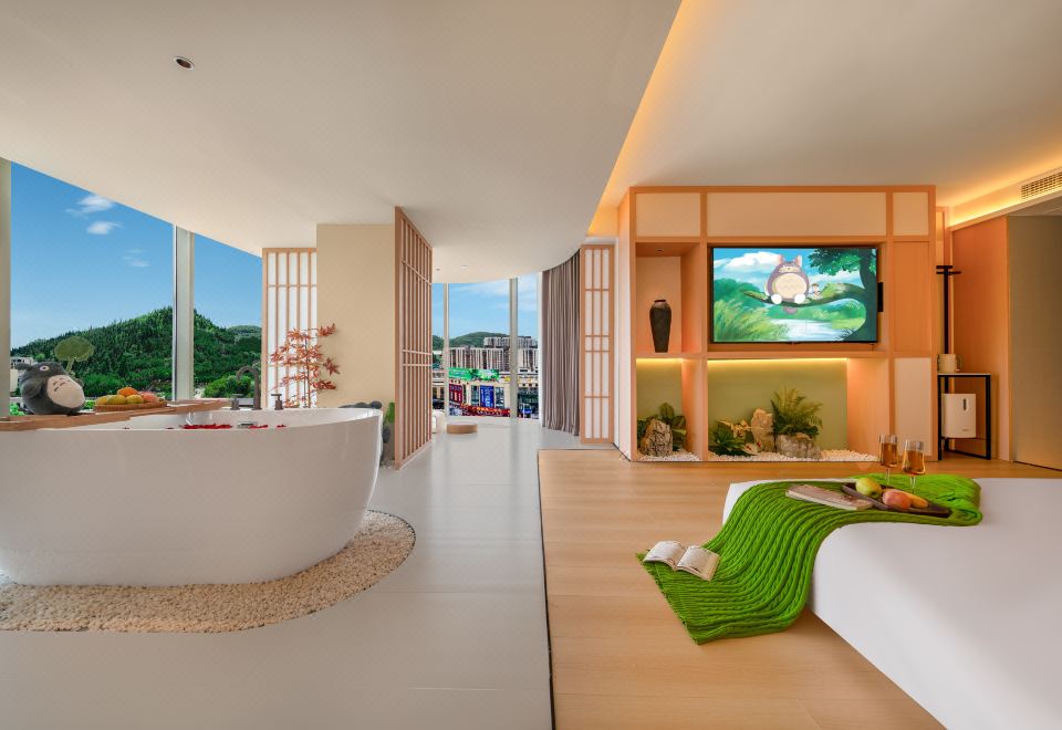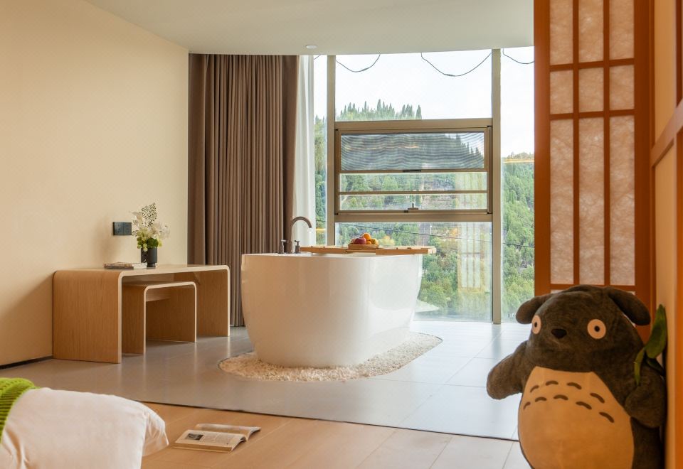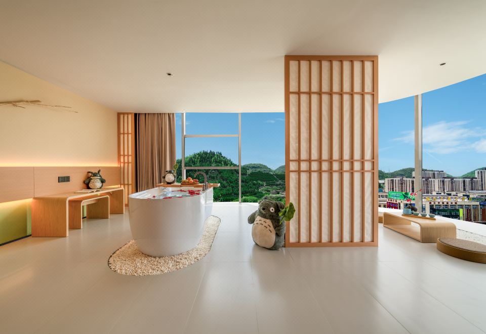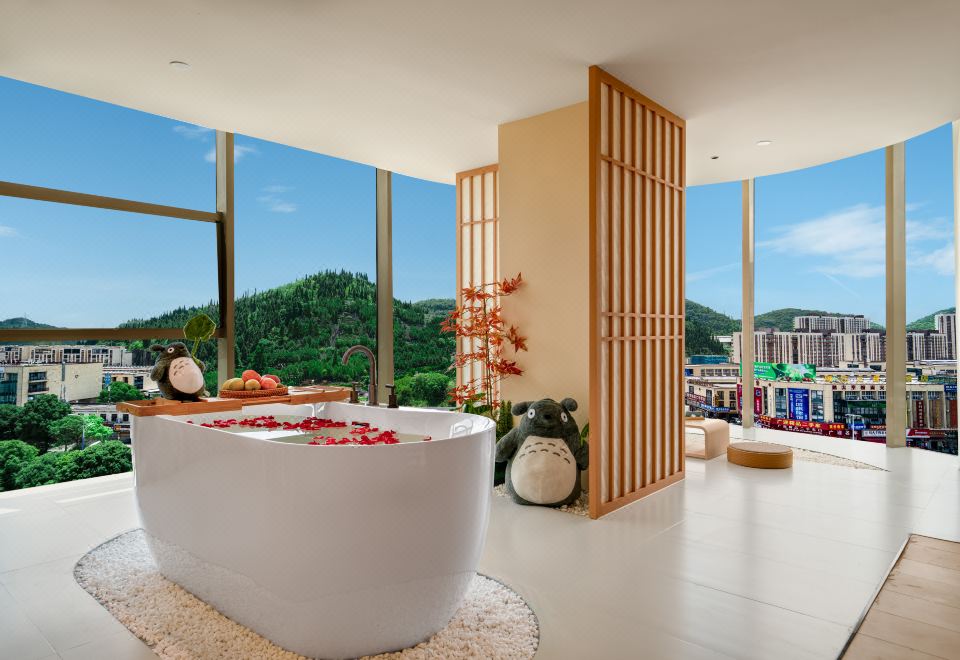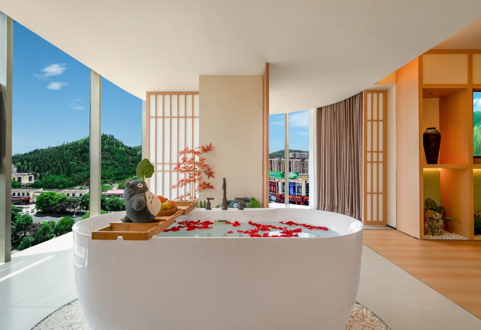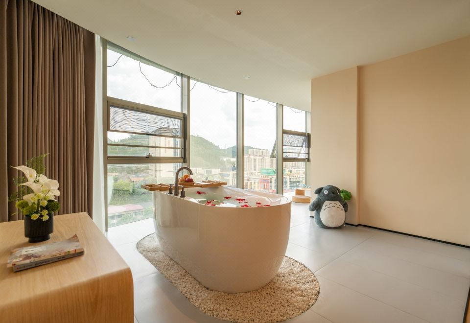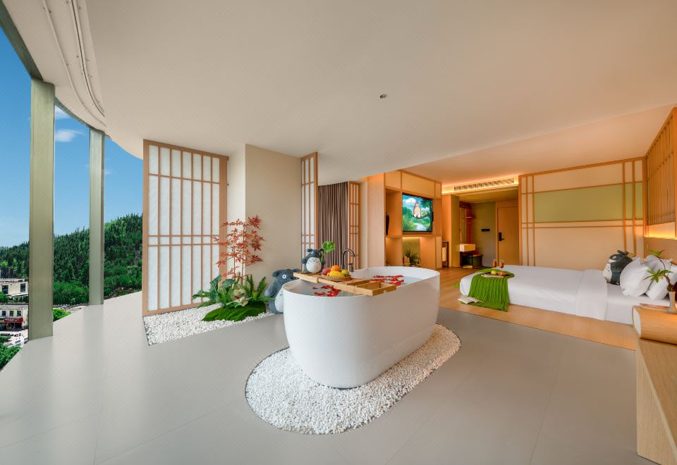 春山如笑.情侣大床房【浴缸+榻榻米床+圆弧落地窗】