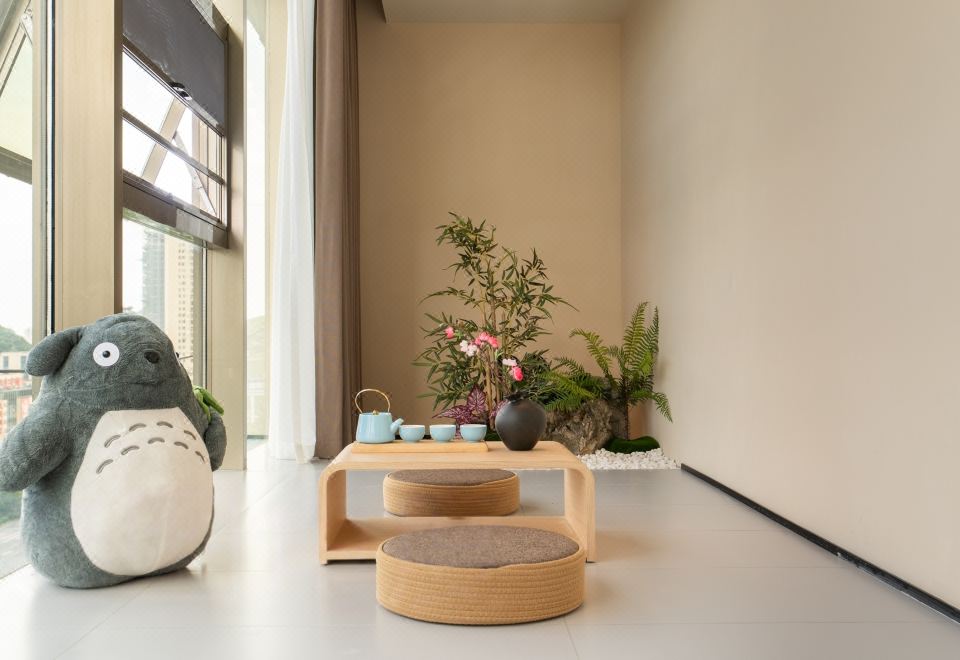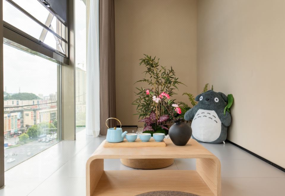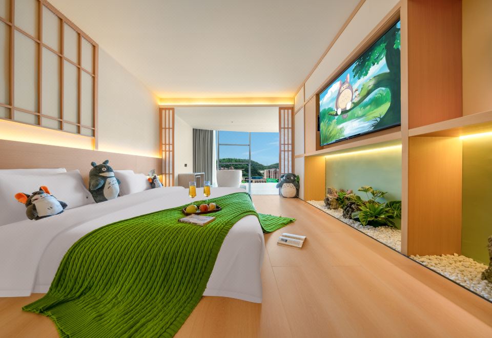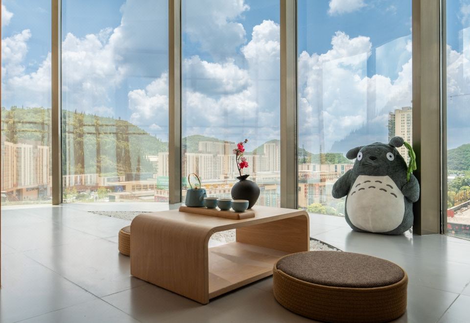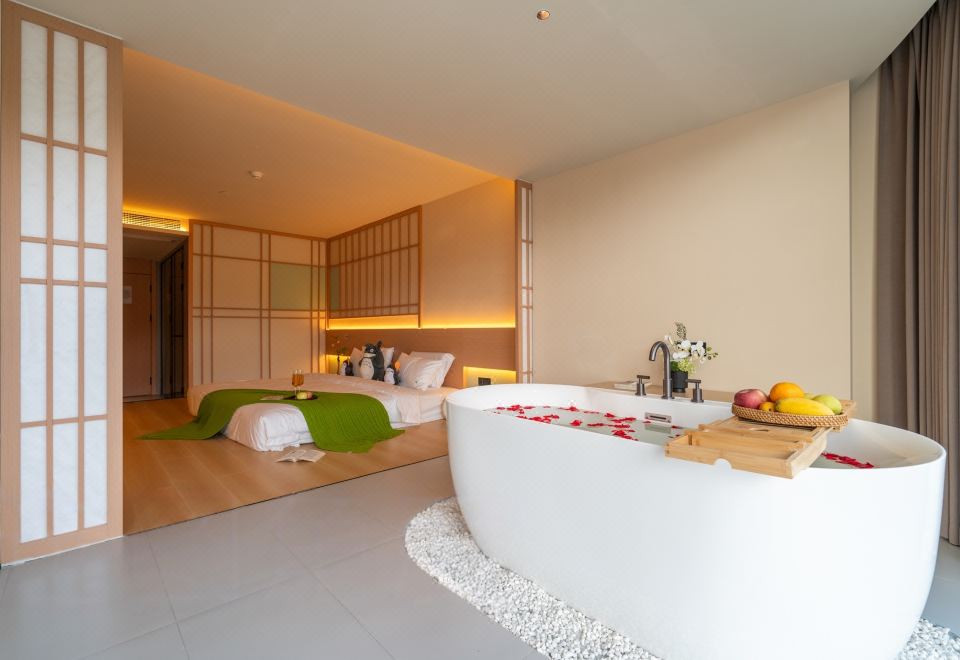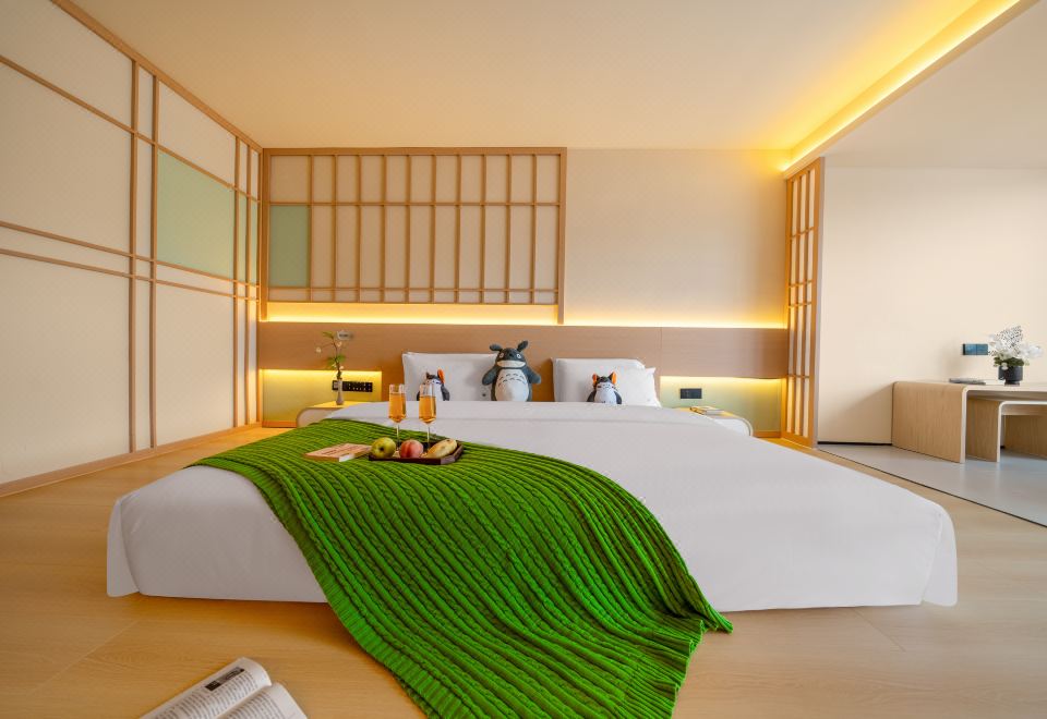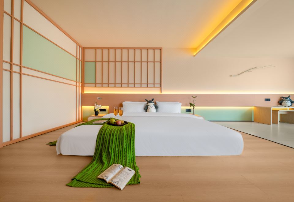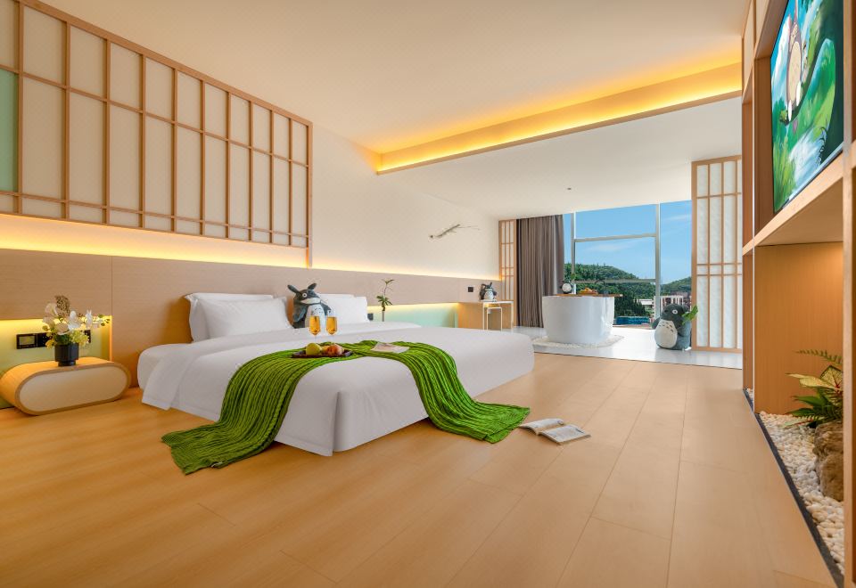 春山如笑.情侣大床房【浴缸+榻榻米床+圆弧落地窗】