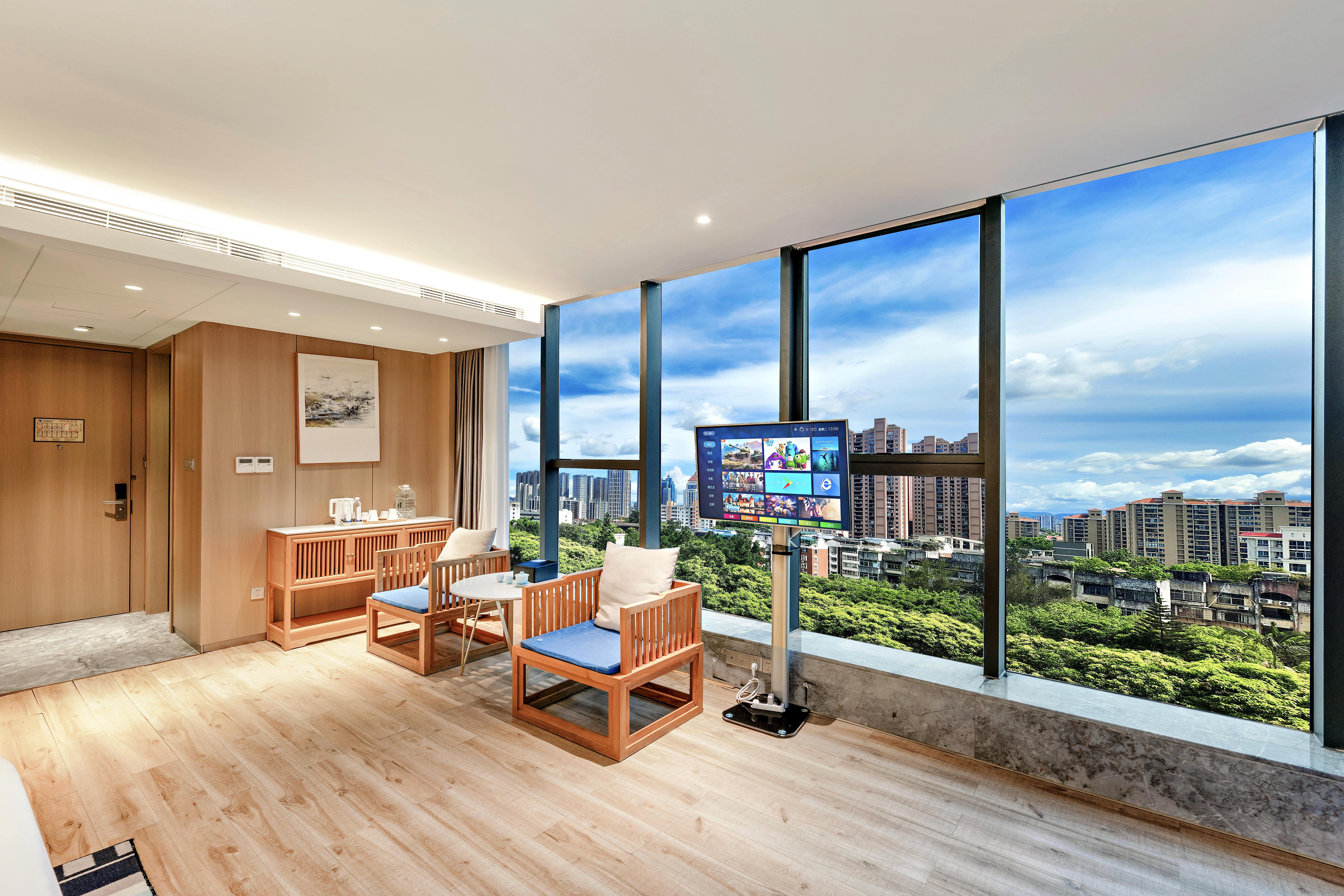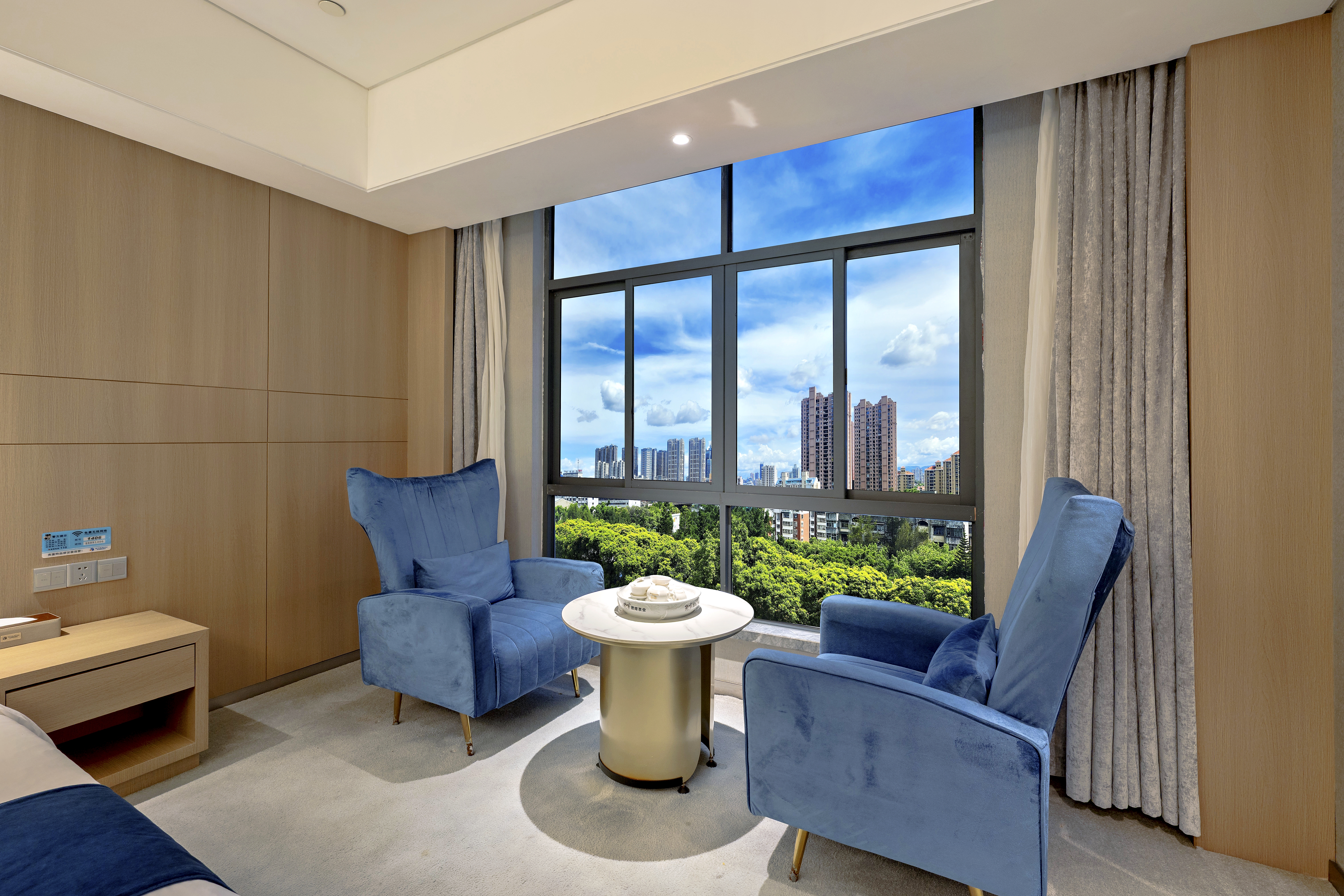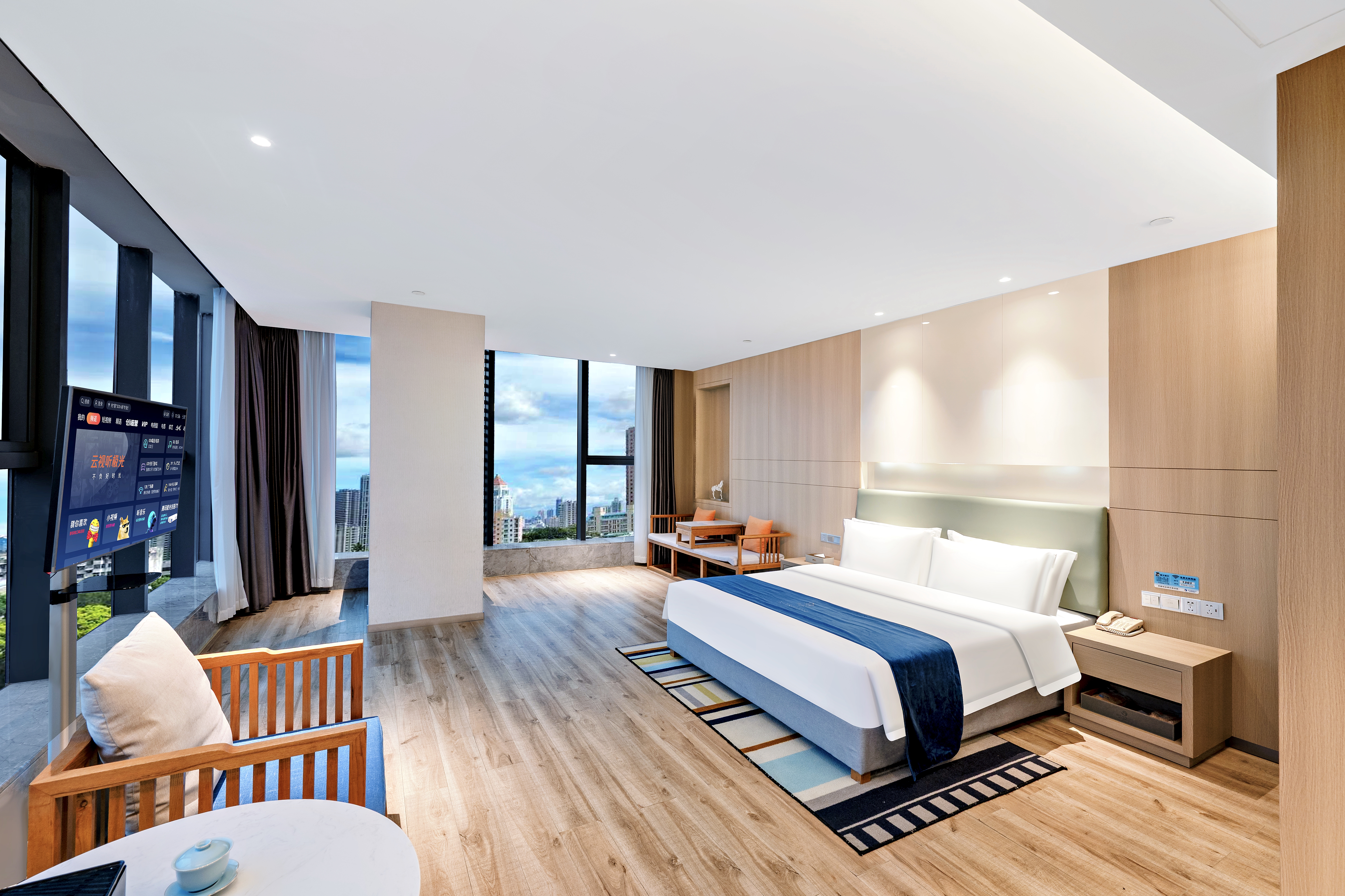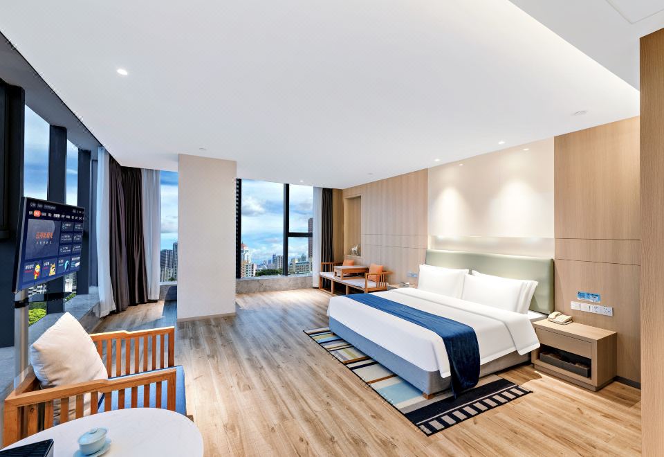 湖畔观景大床房【360°全景落地窗+高空夜景+休闲茶椅】