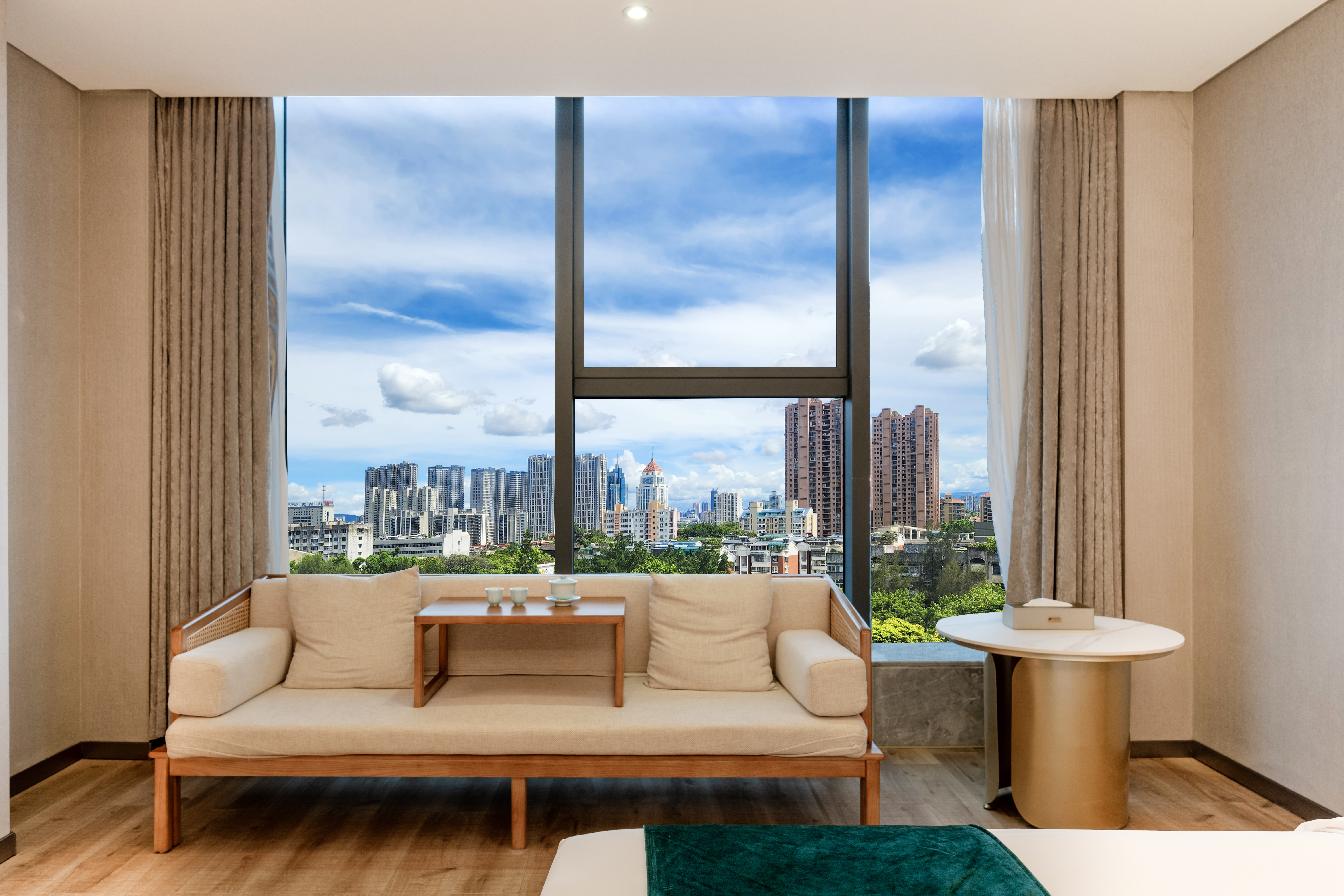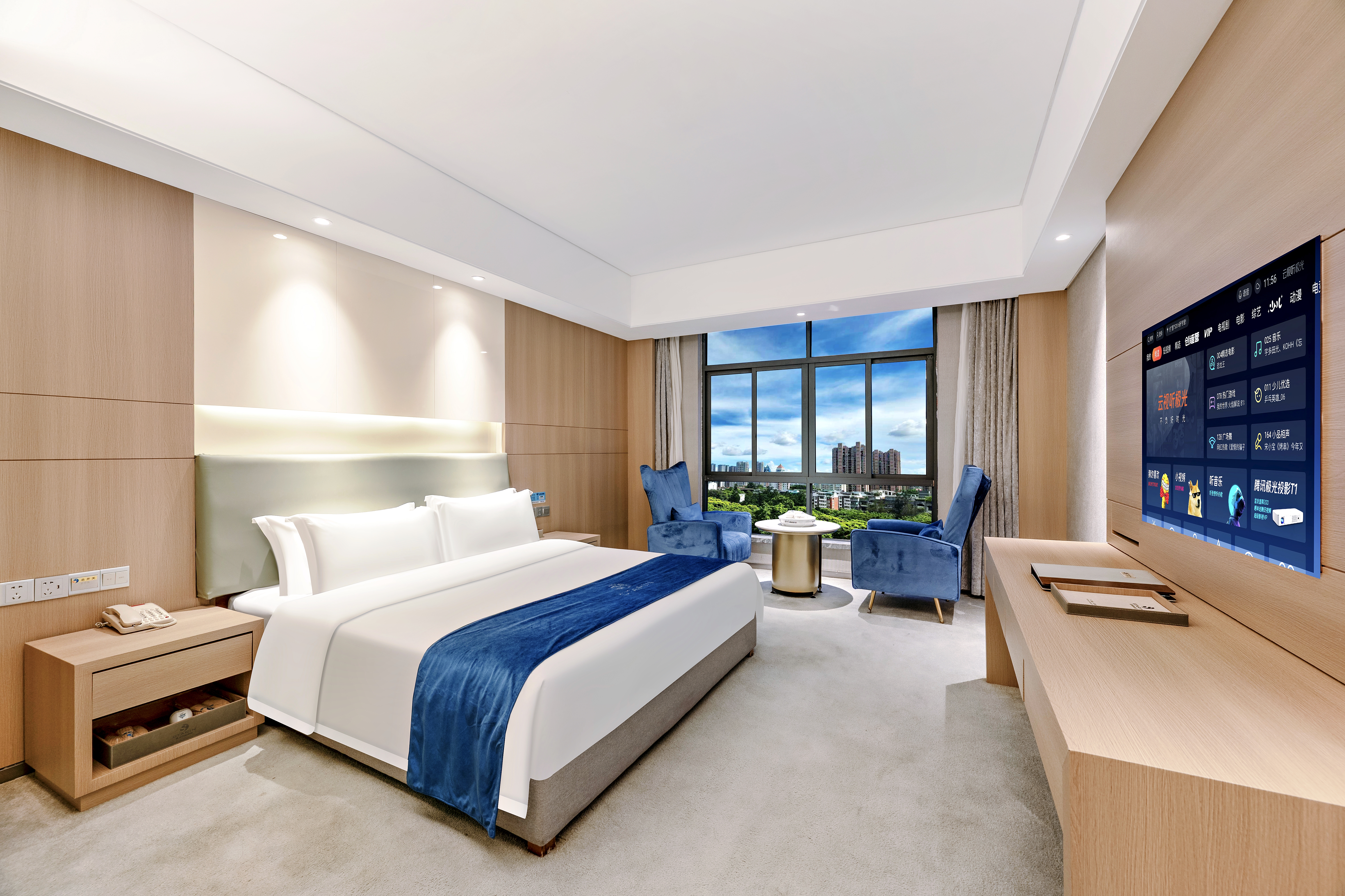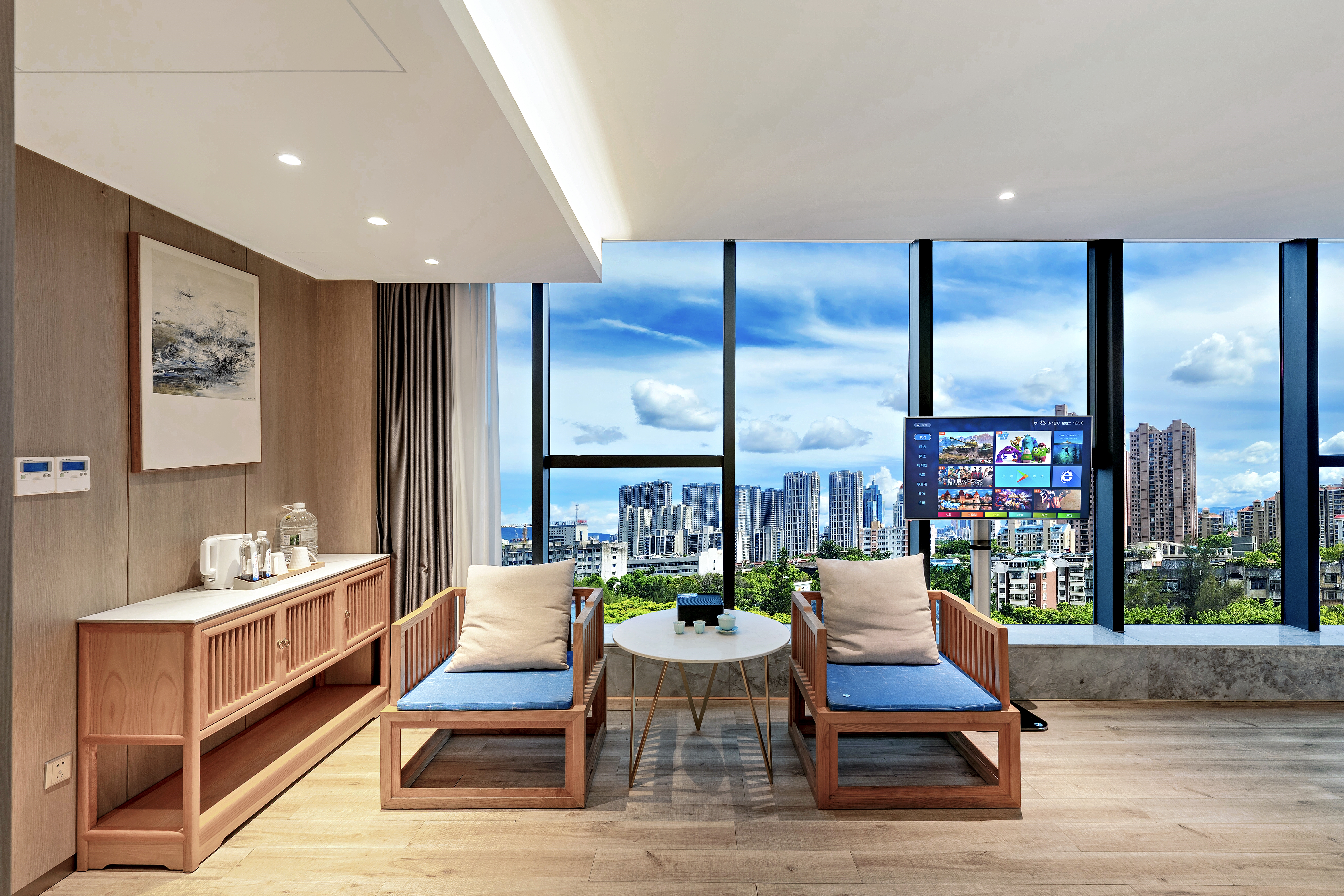 湖畔观景大床房【360°全景落地窗+高空夜景+休闲茶椅】