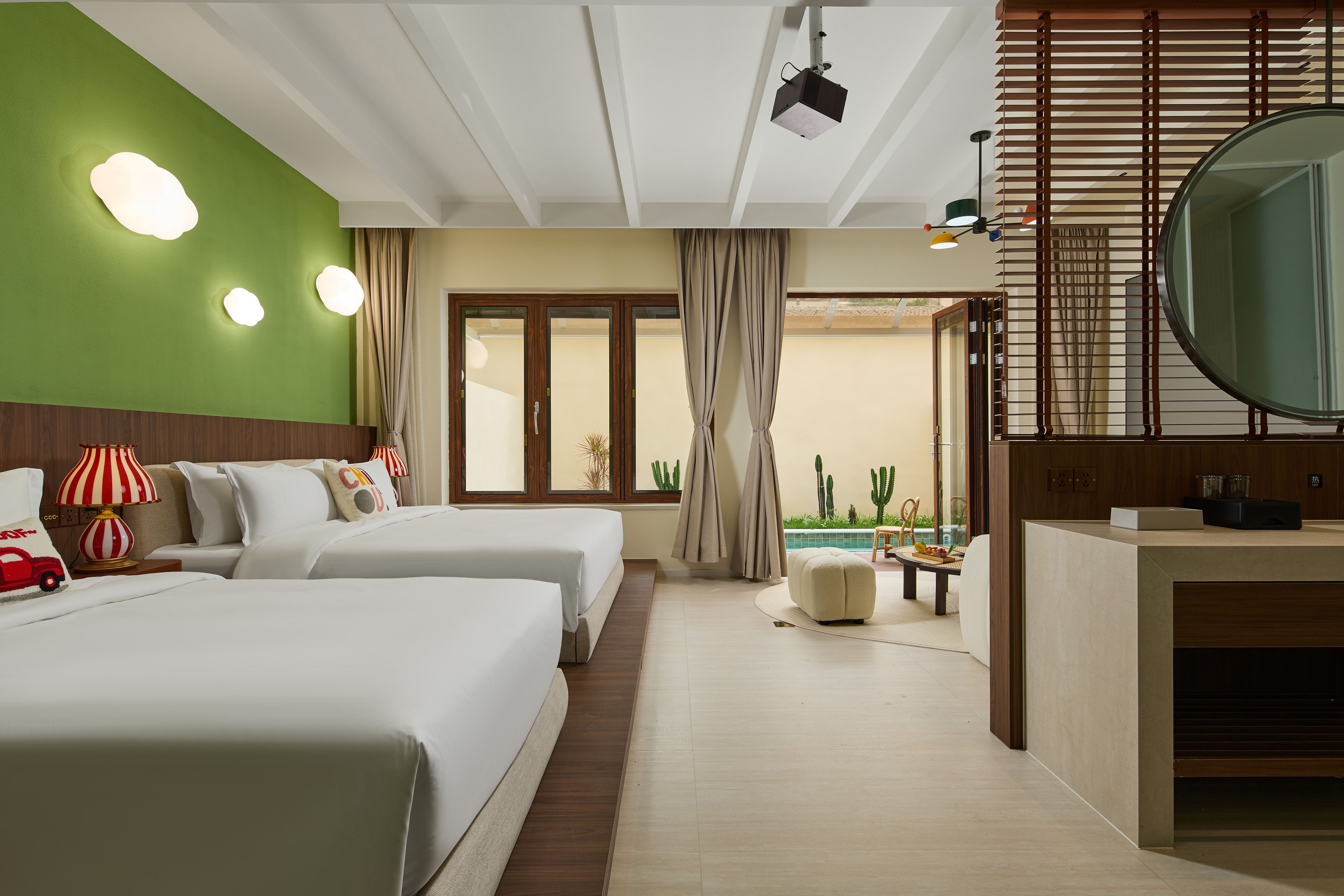 Comfy Family Smart Leisure Room (Pool, Window, Mini Fridge, Sofa)