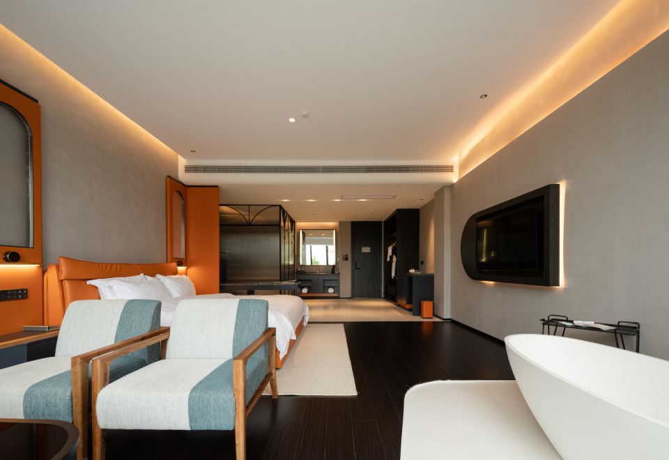 鯨沙 I 浴缸觀景大床房(全屋智能客控+戴森電吹風+迷你冰箱+金可兒零壓床墊)