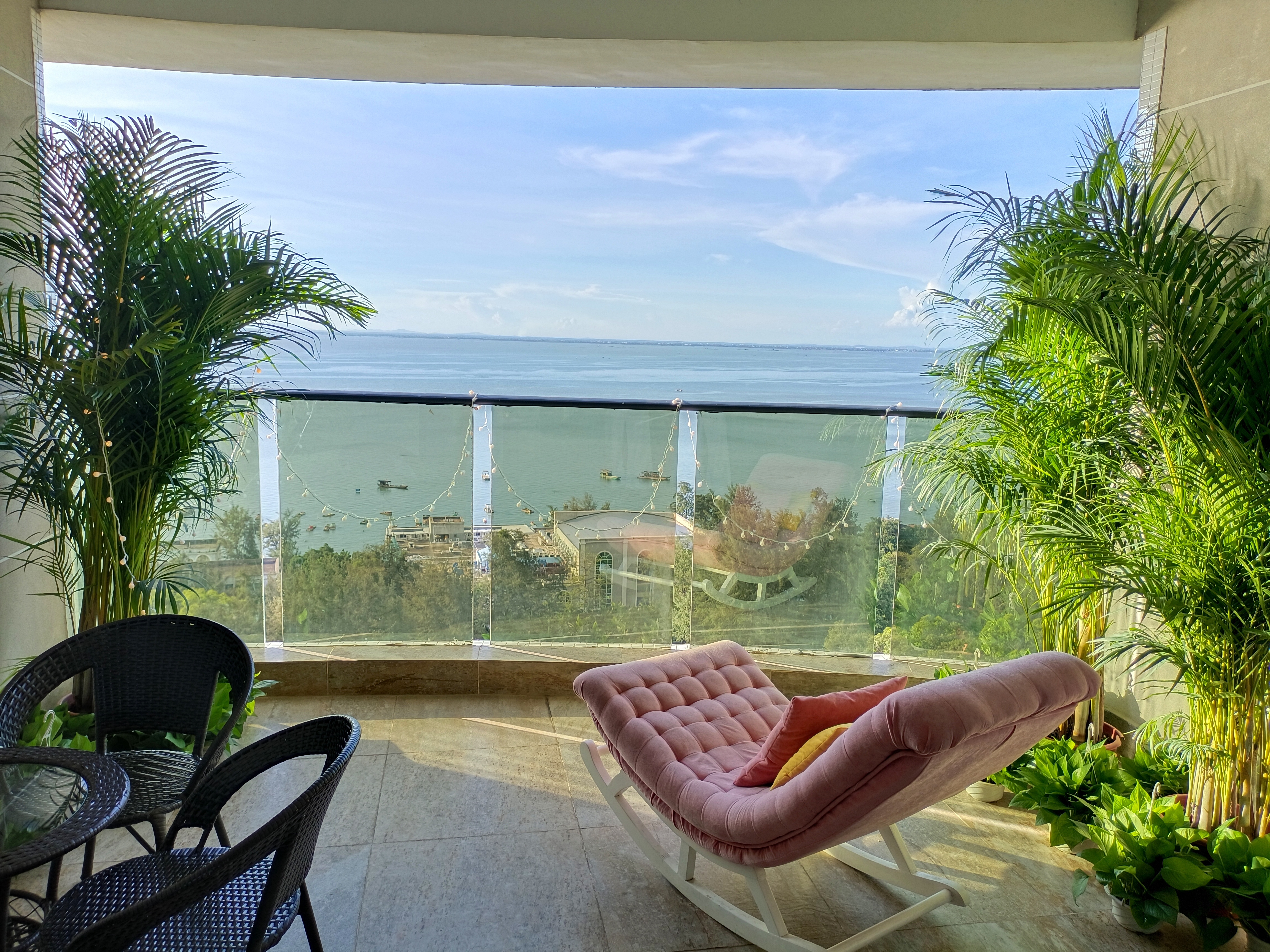 豪華海景親子房(高層獨立海景陽台+可做飯廚房+冰箱+洗衣機)