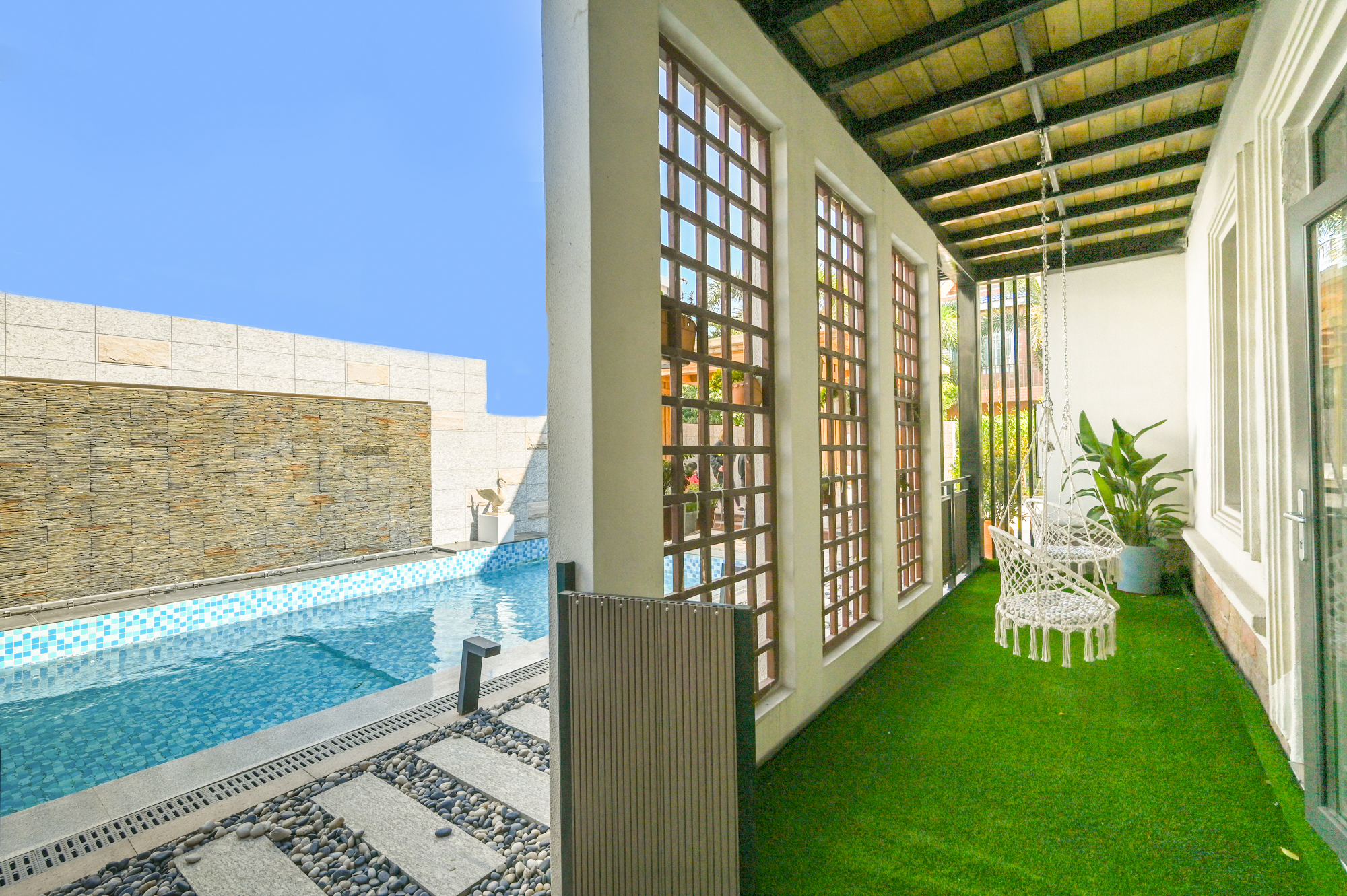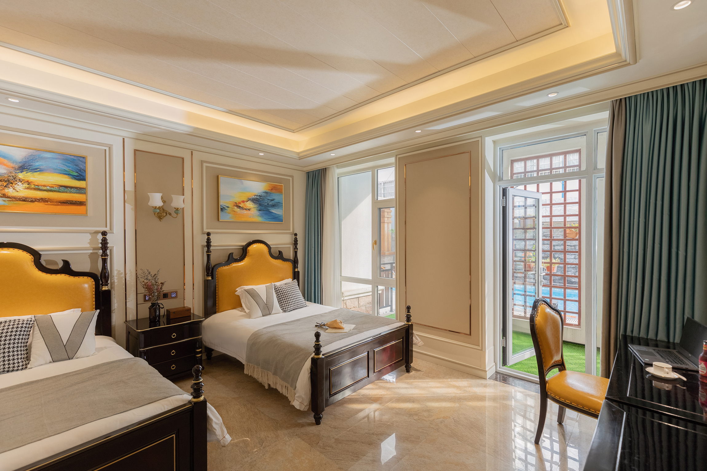 豪華池畔庭院雙床房(中央空調)