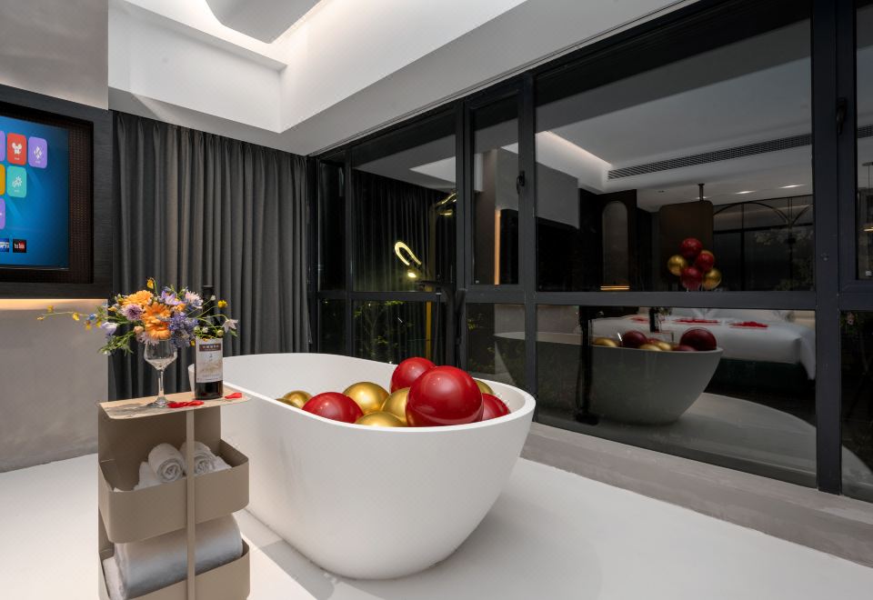情侶主題浴缸大床房