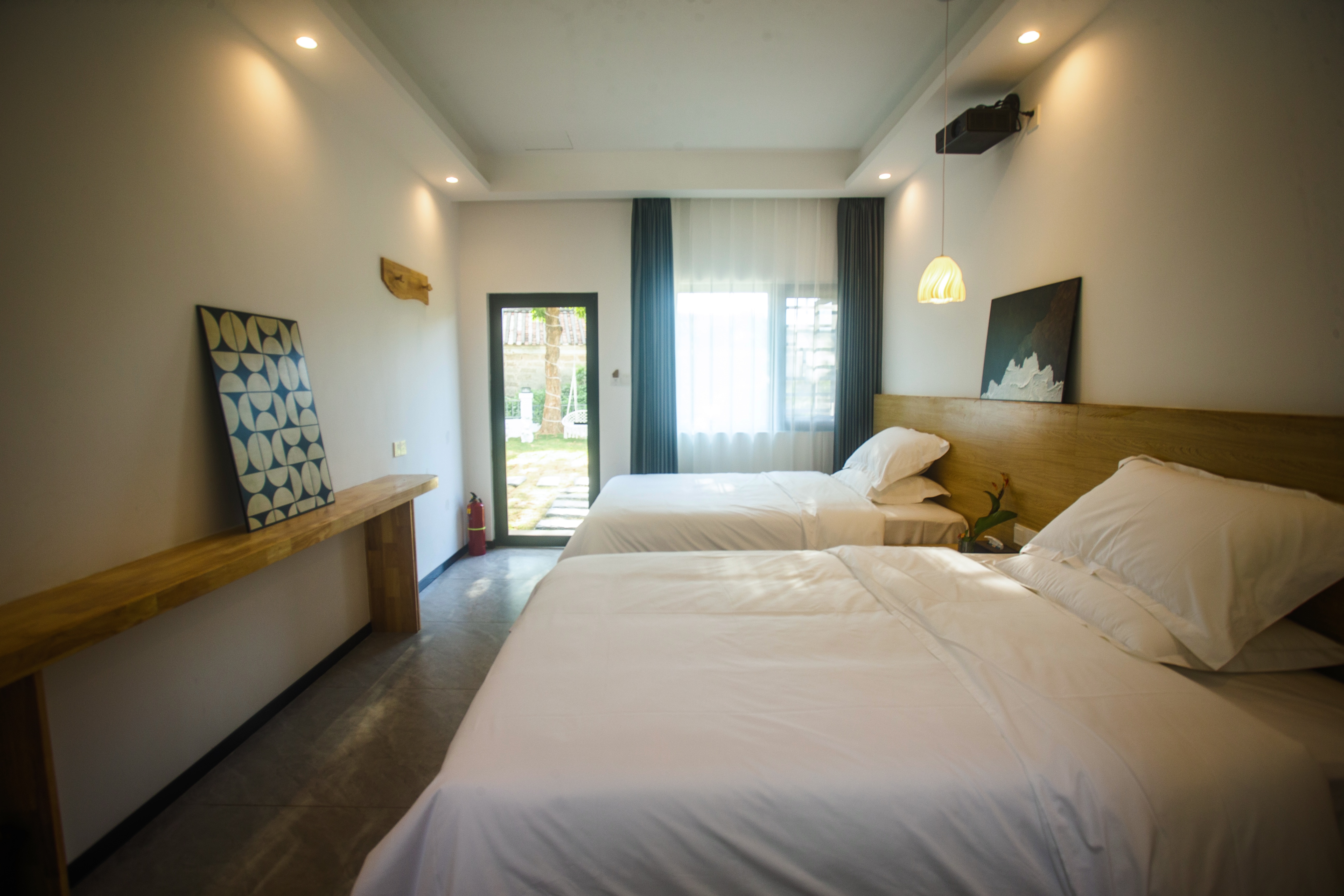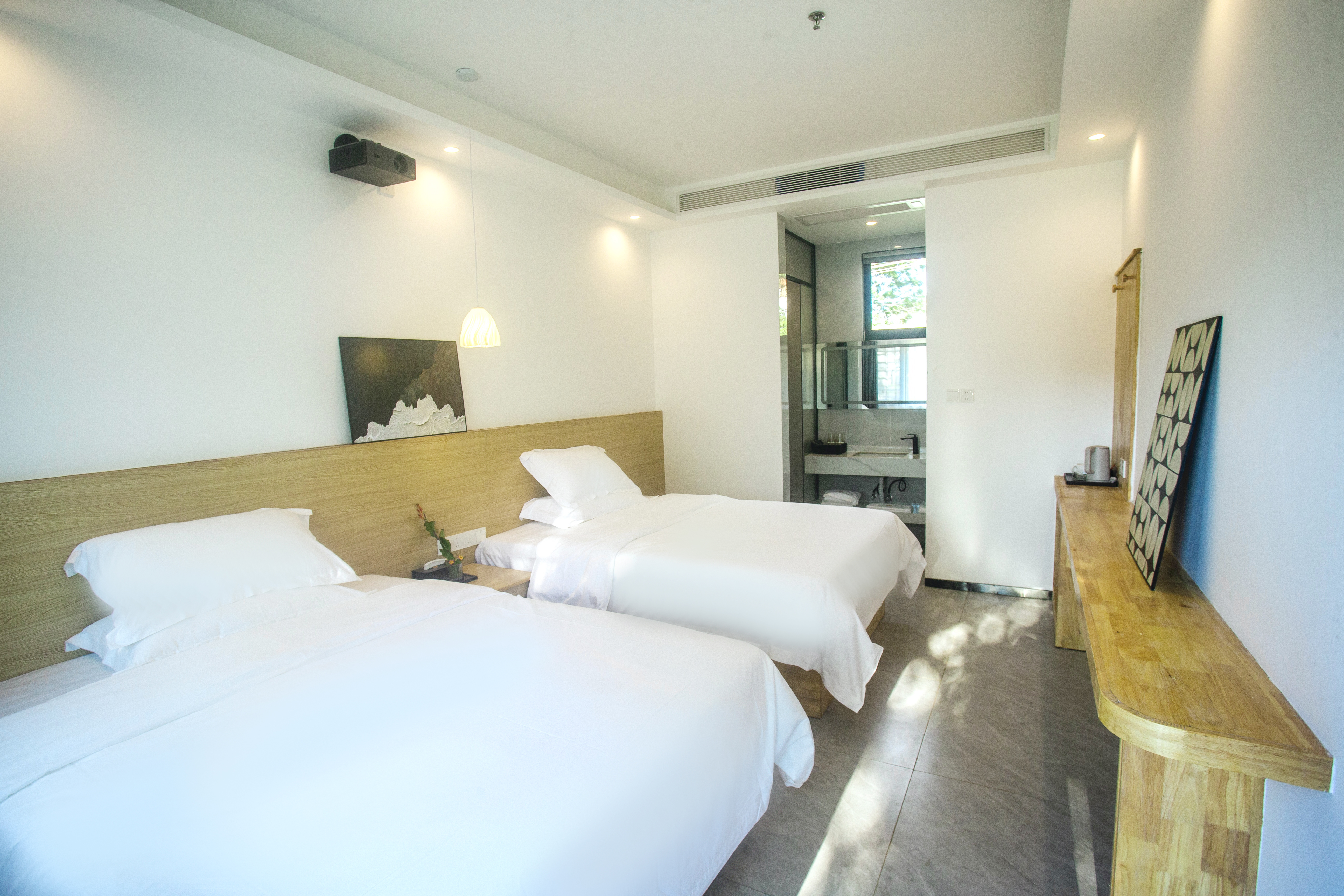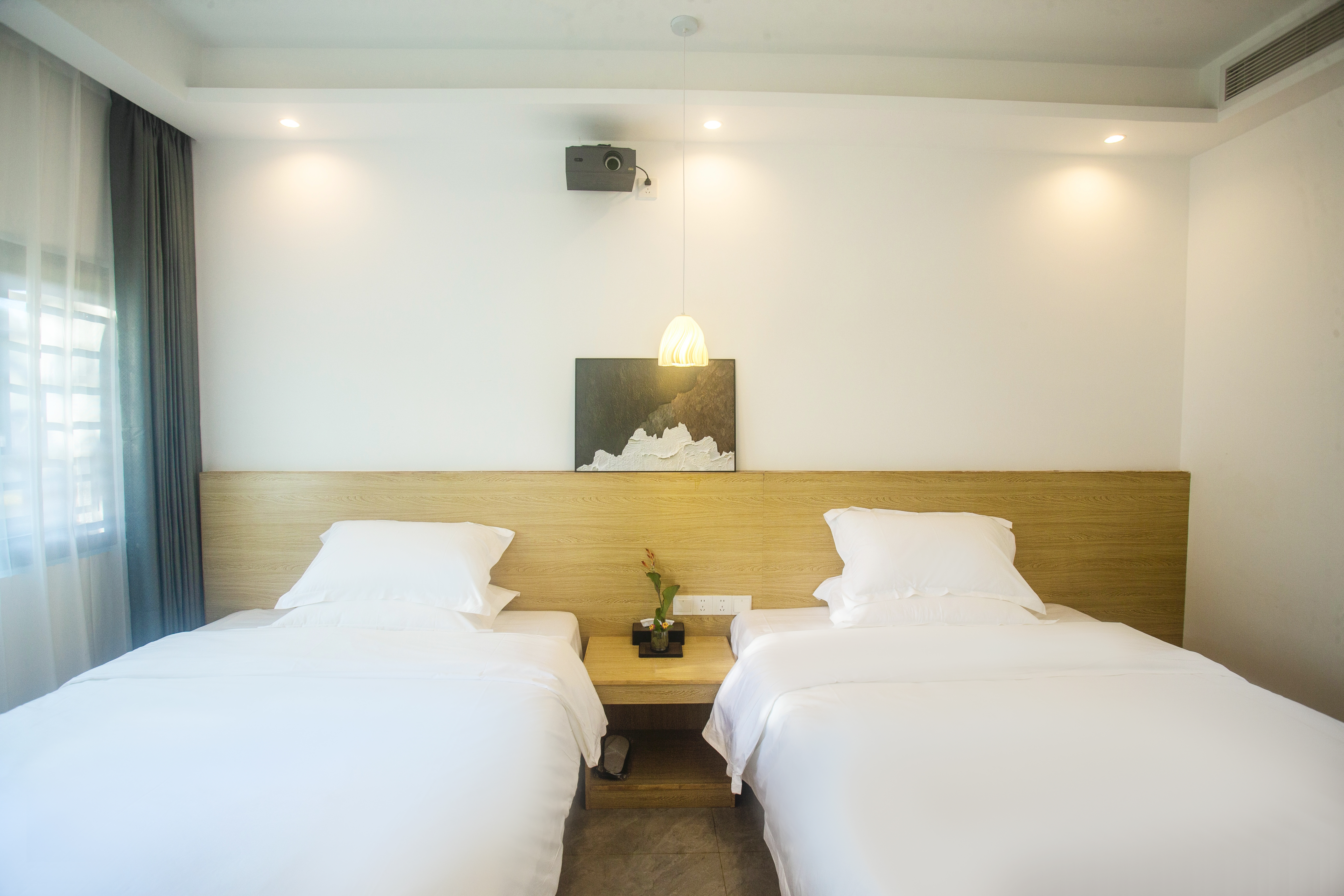 歸謐丨舒適投影雙床房(乾濕分離+觀景晚霞+高清投影+品質床墊)