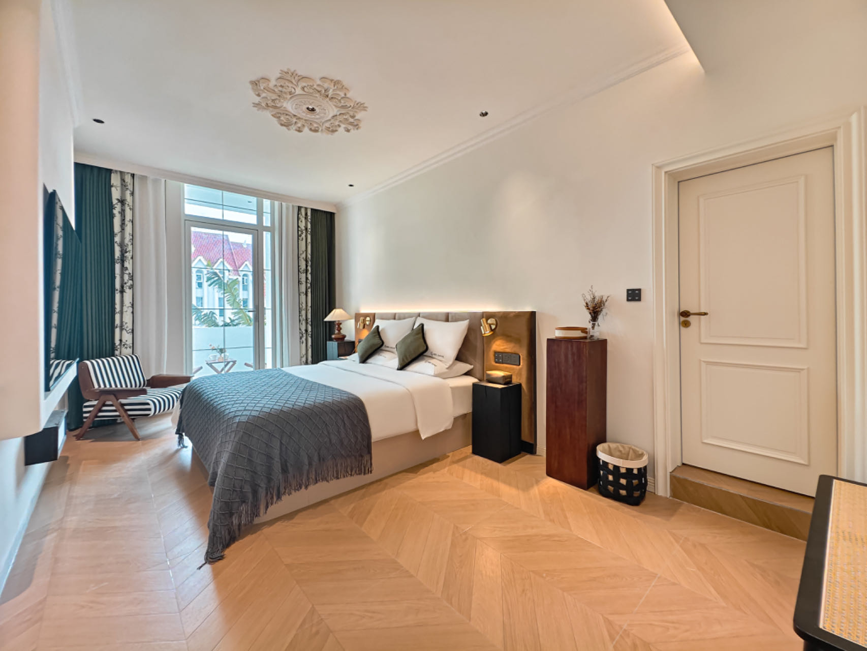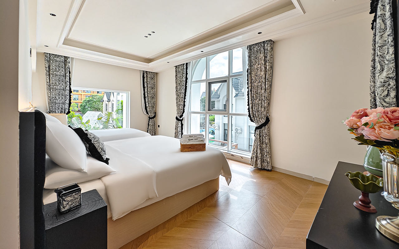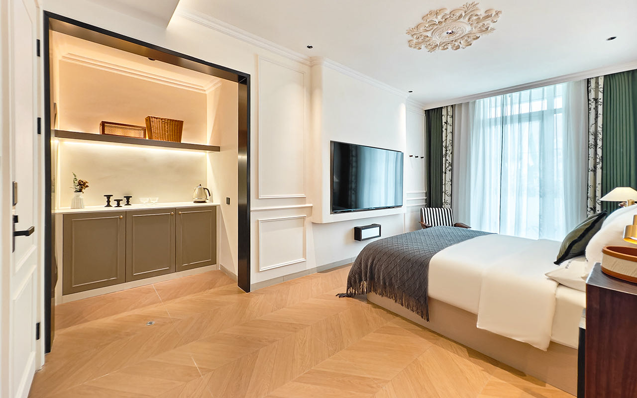 法式景觀露台大床房(智能聲控+75寸高清電視+30公分美國蕾絲床墊)