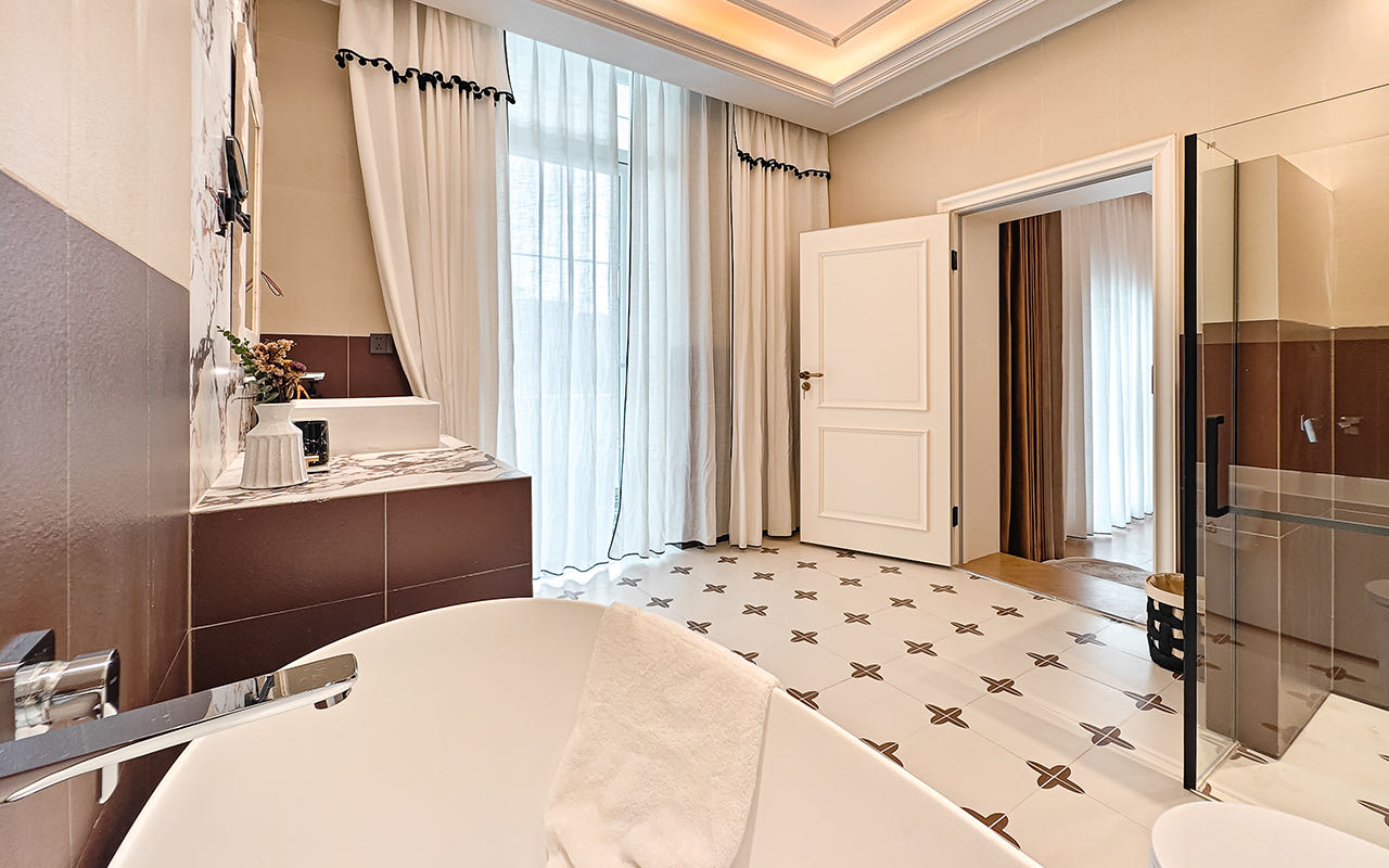 法式落日浴缸大床房(智能聲控+75寸高清電視+30公分美國蕾絲床墊)