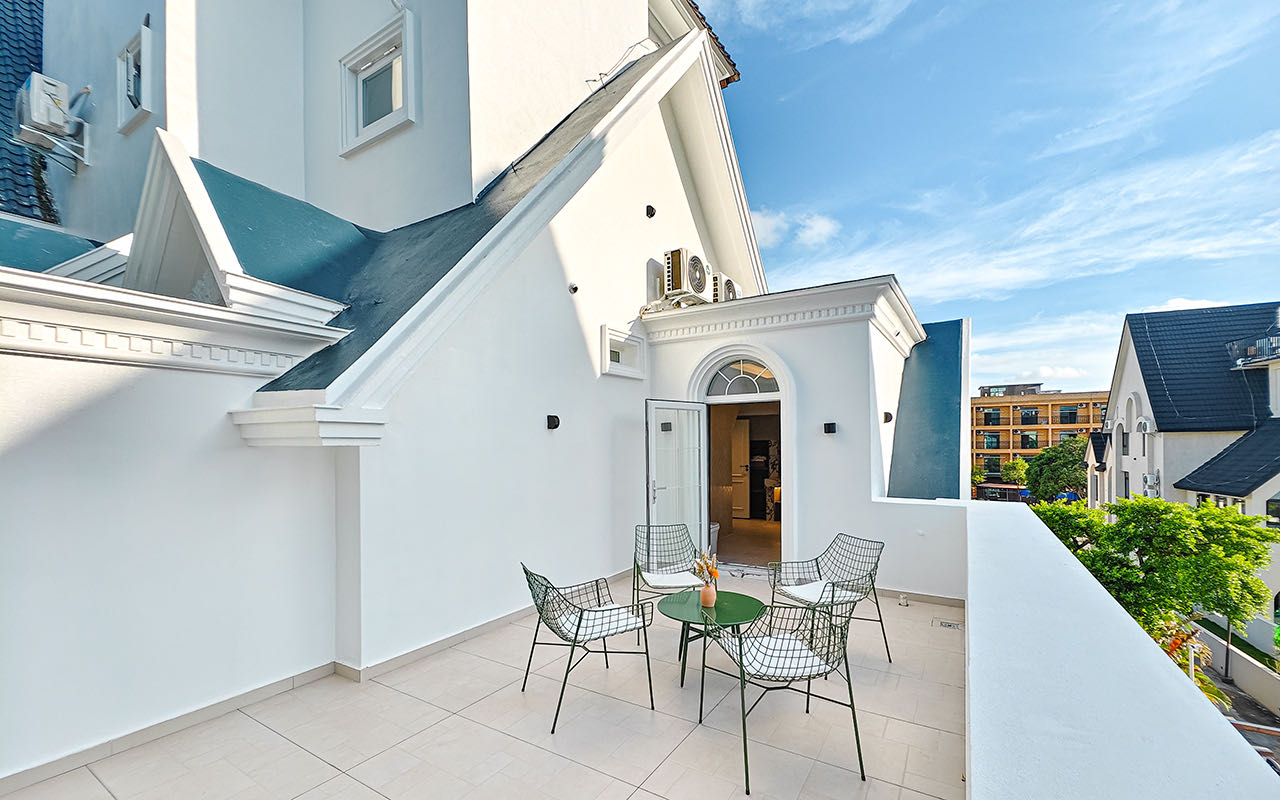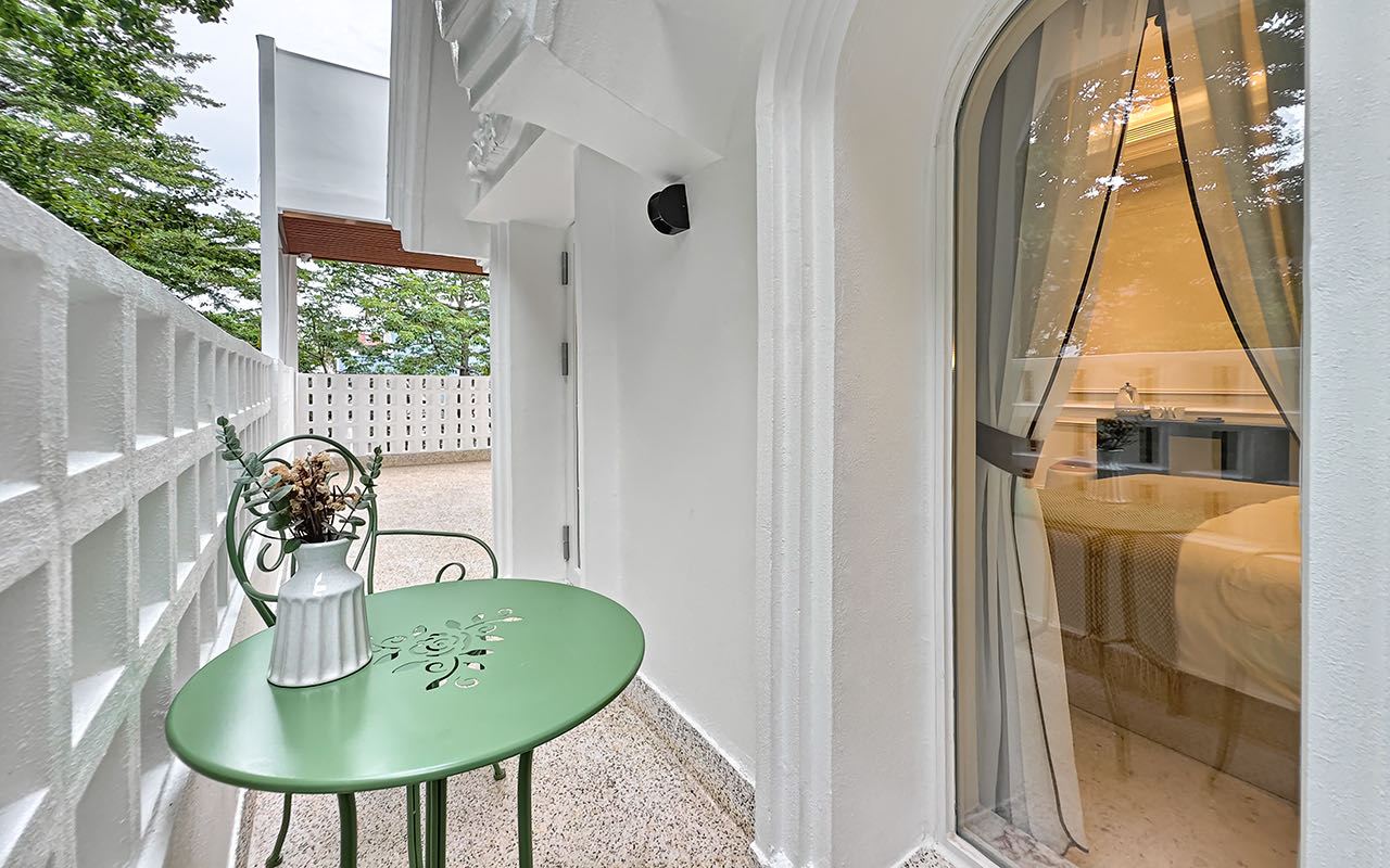 法式城堡露台大床房(智能聲控+75寸高清電視+30公分美國蕾絲床墊)