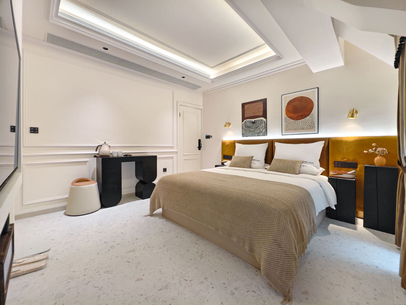 法式靜謐雙床房(智能聲控+75寸高清電視+30公分美國蕾絲床墊)