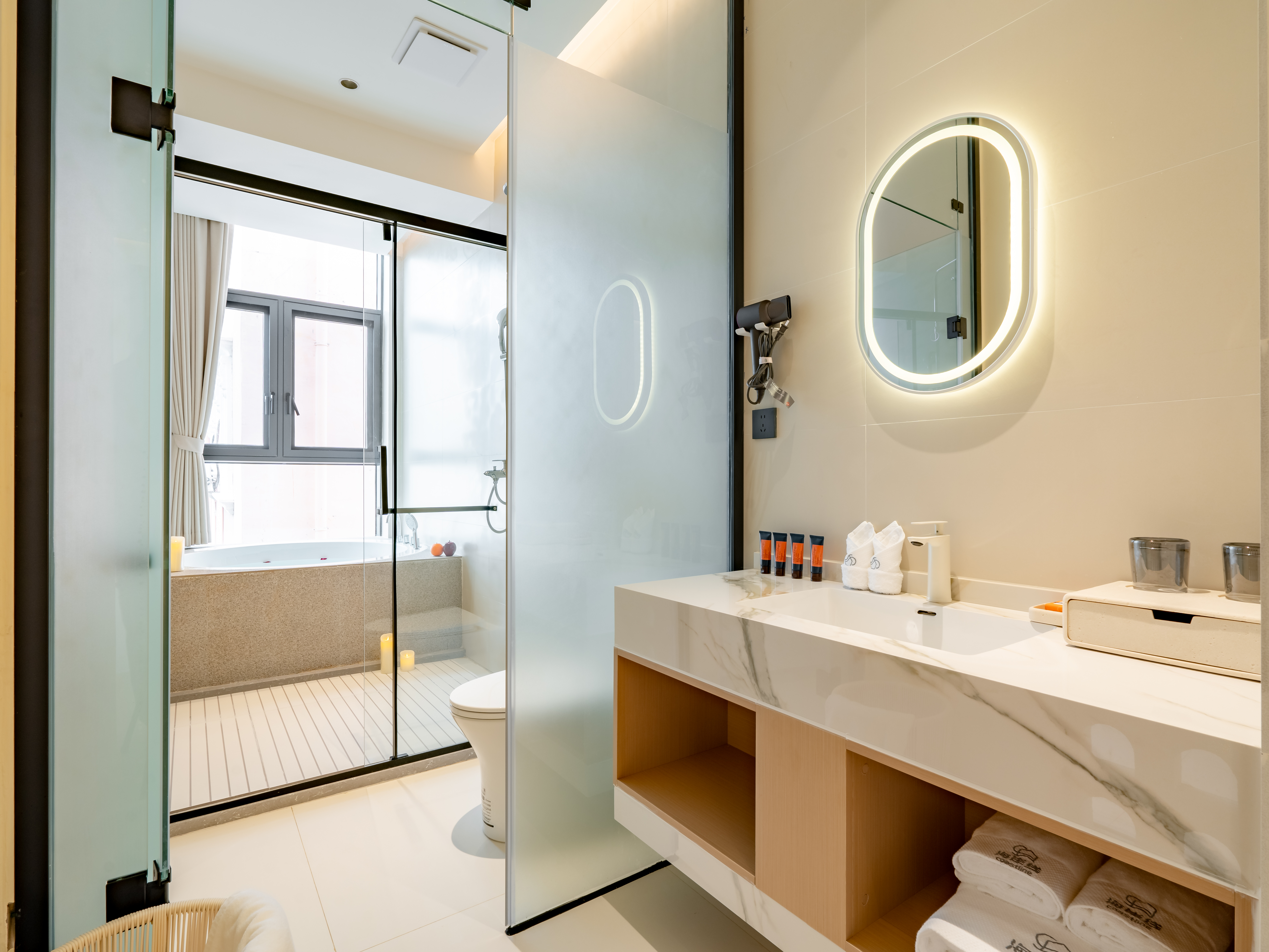 海岸浪花Wave高级私人恒温泳池超大床房∣洗烘洗衣机