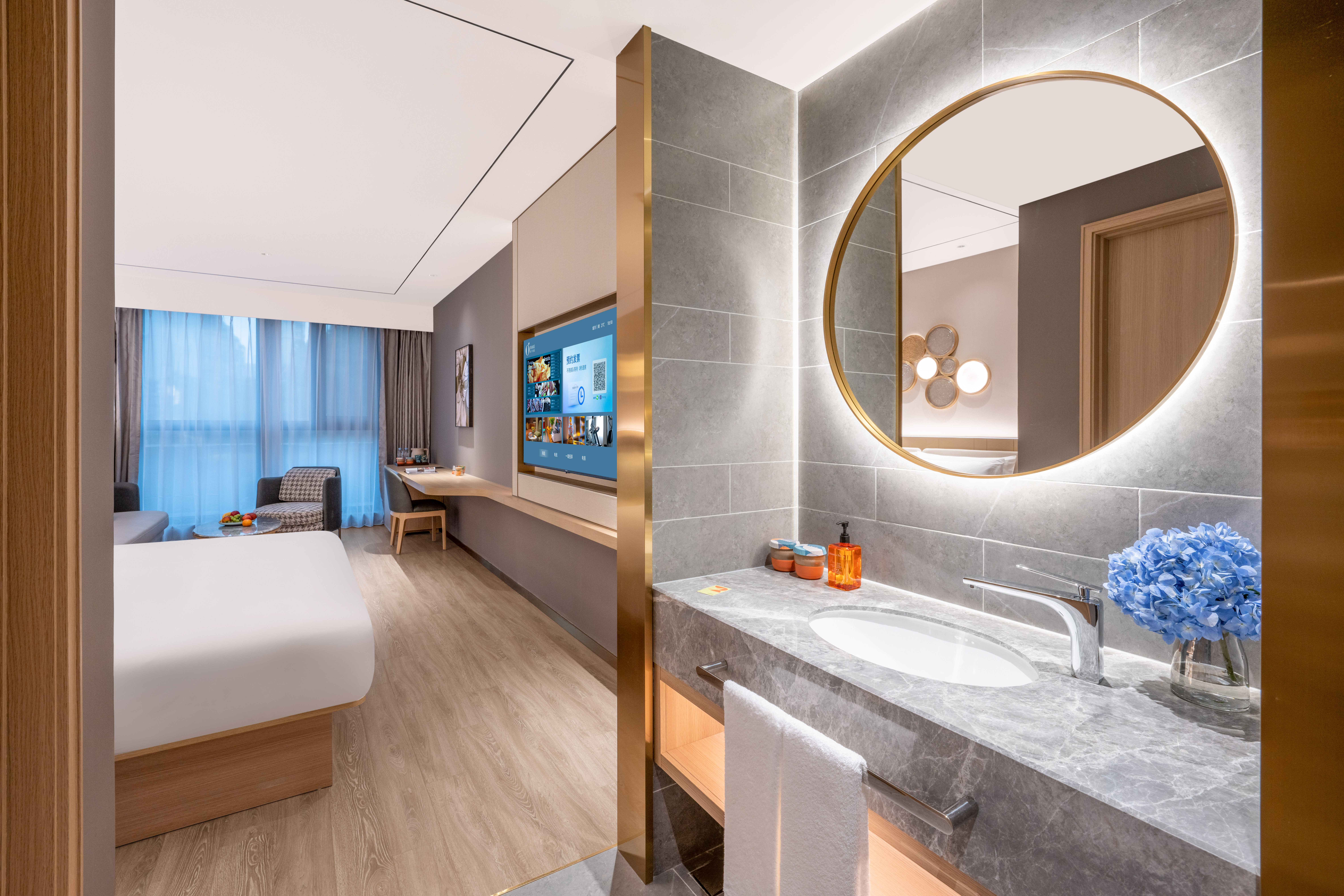 月若流金豪华大床房(65K电视投屏+智能客控+小冰箱)