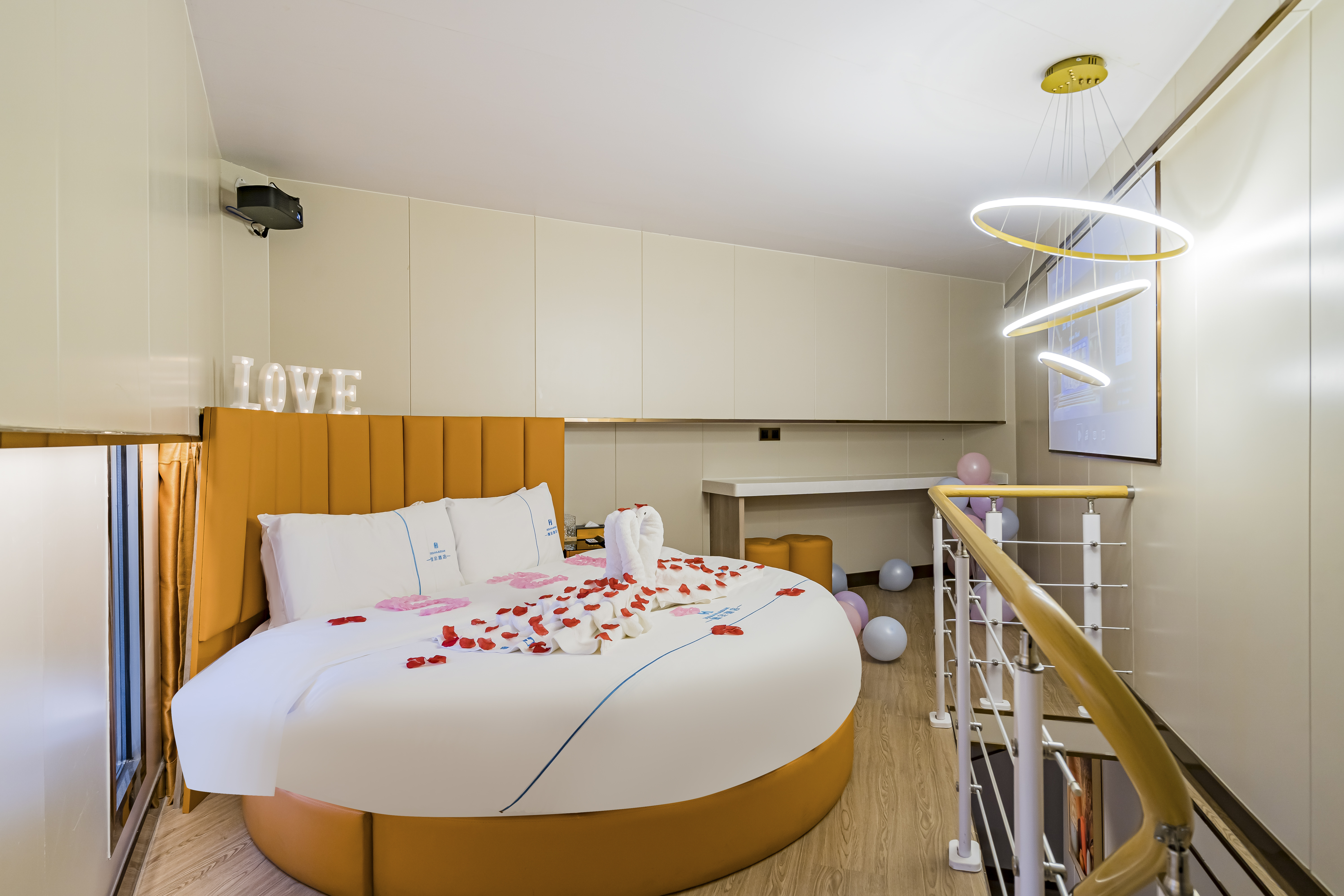 LOFT轻奢圆床房(浪漫花瓣+巨幕投影+智能投屏)