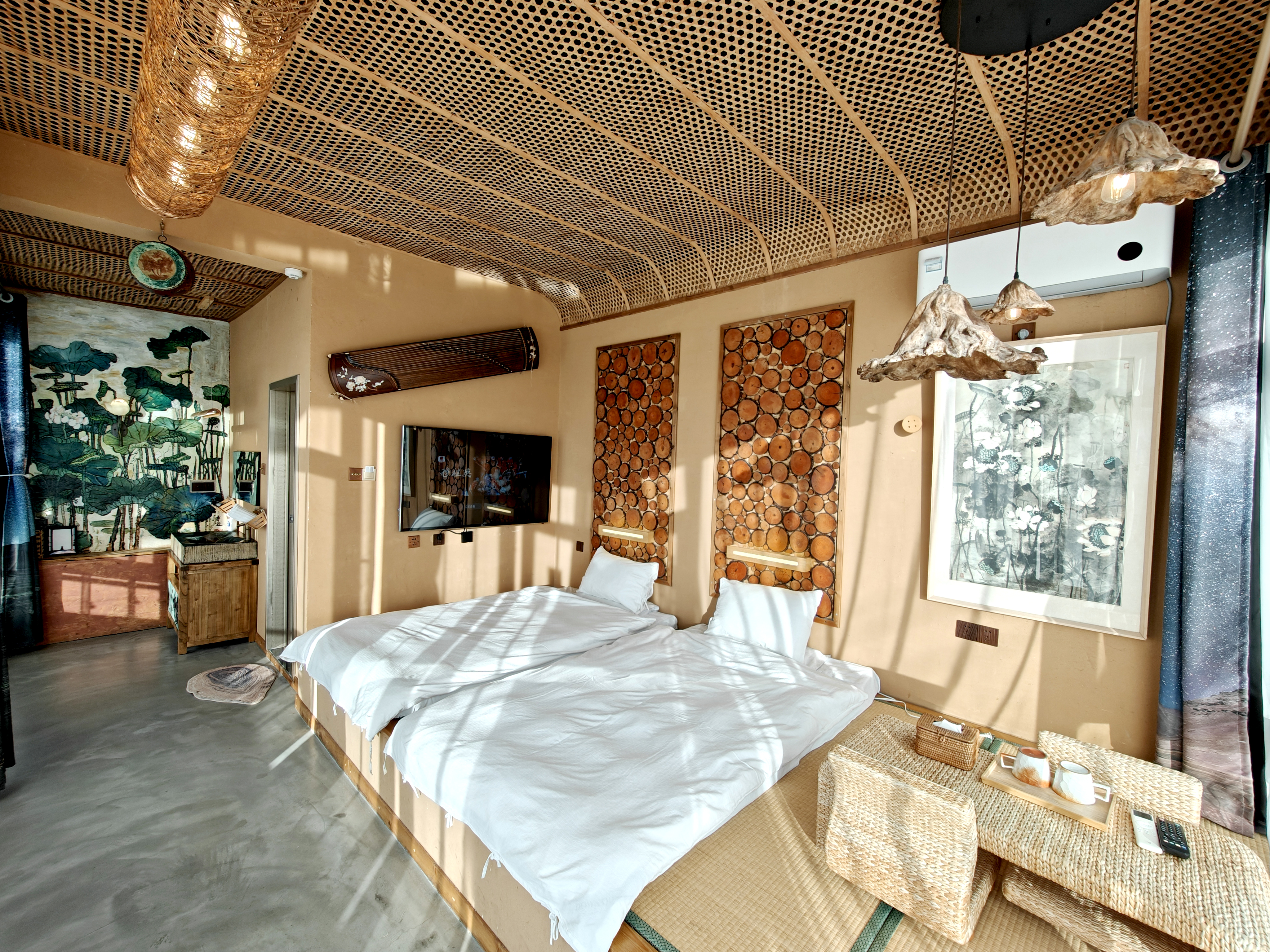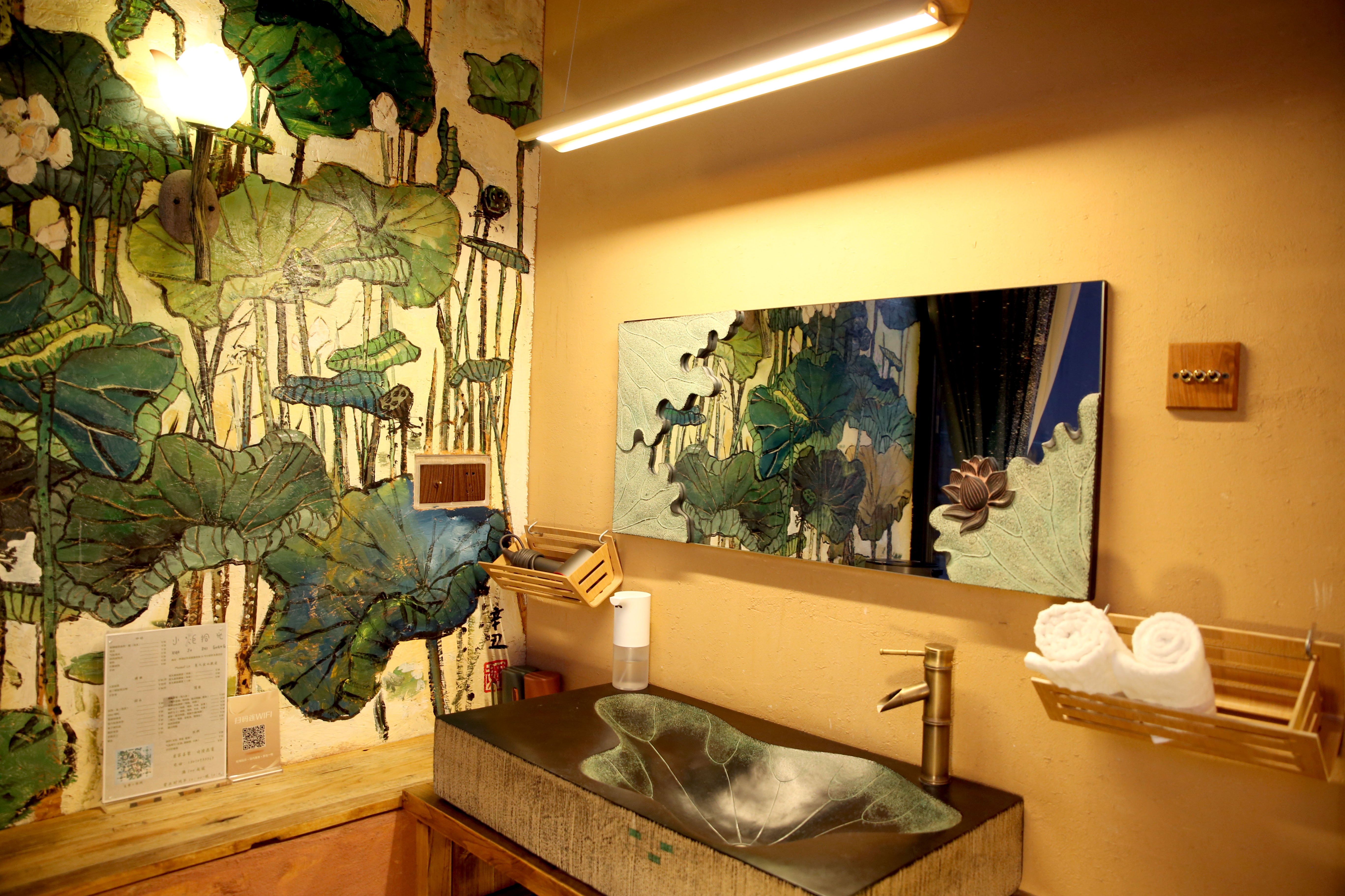 “詩情畫意”創意荷花主題特色榻榻米木質浴缸房