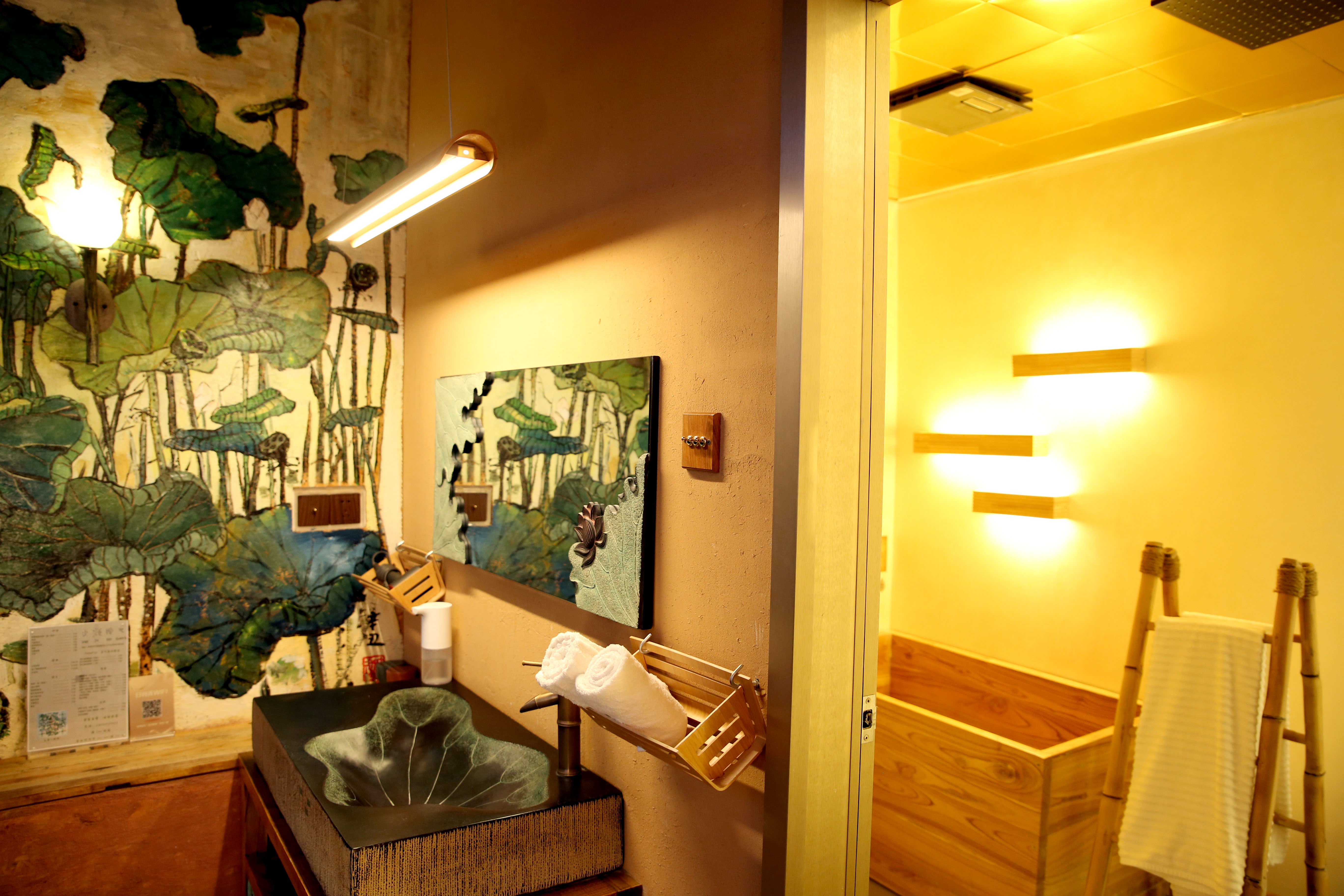 “詩情畫意”創意荷花主題特色榻榻米木質浴缸房