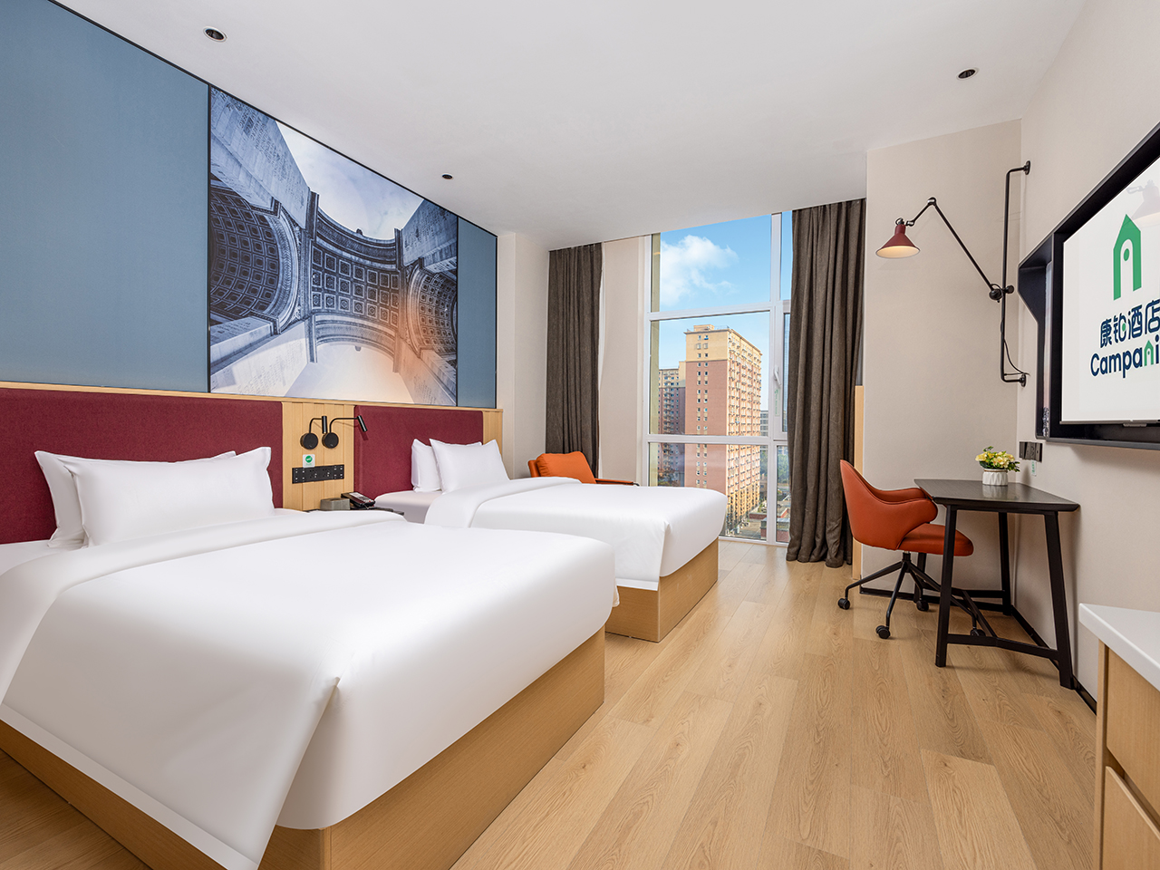 高级双床房(手机投屏+智能马桶+落地窗)