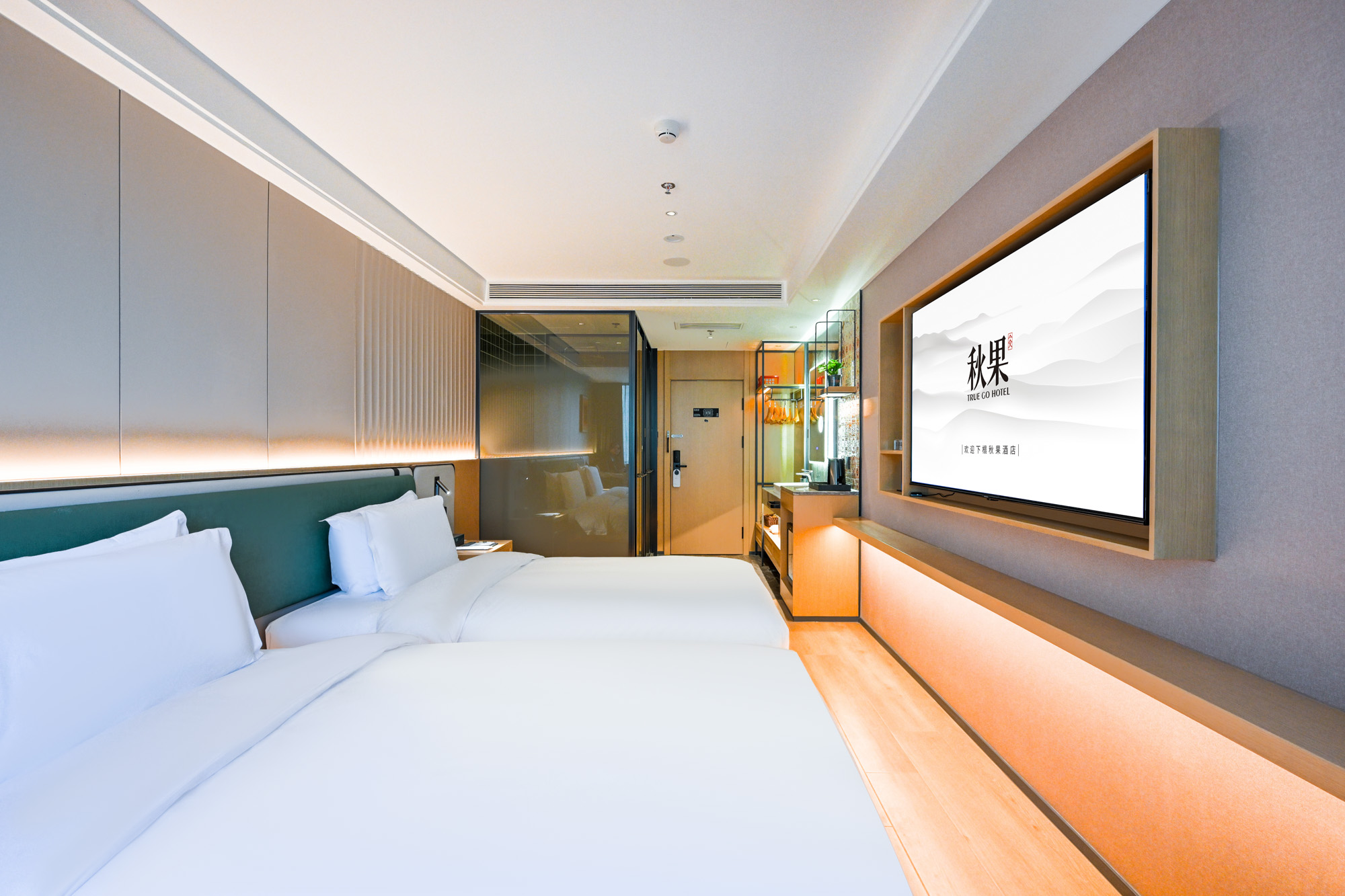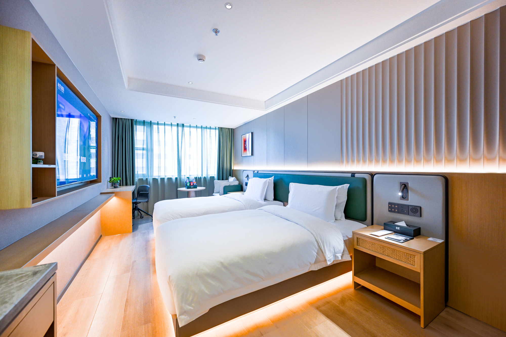 商务双床房(智能客控+65寸电视投屏+夜景俯视)