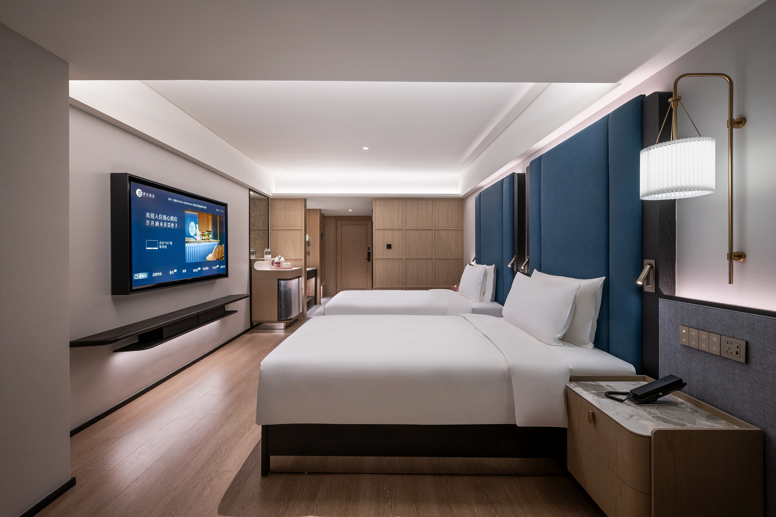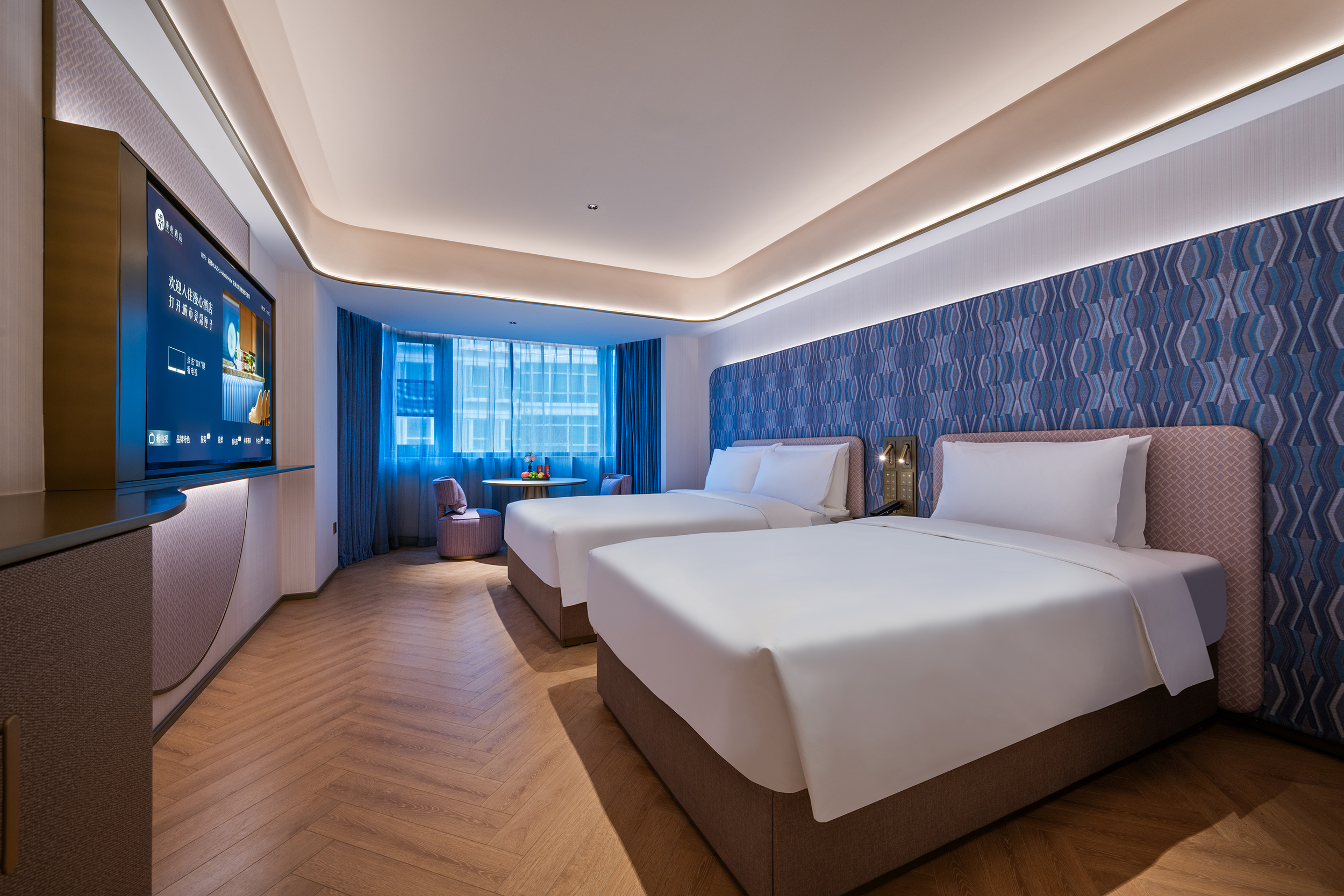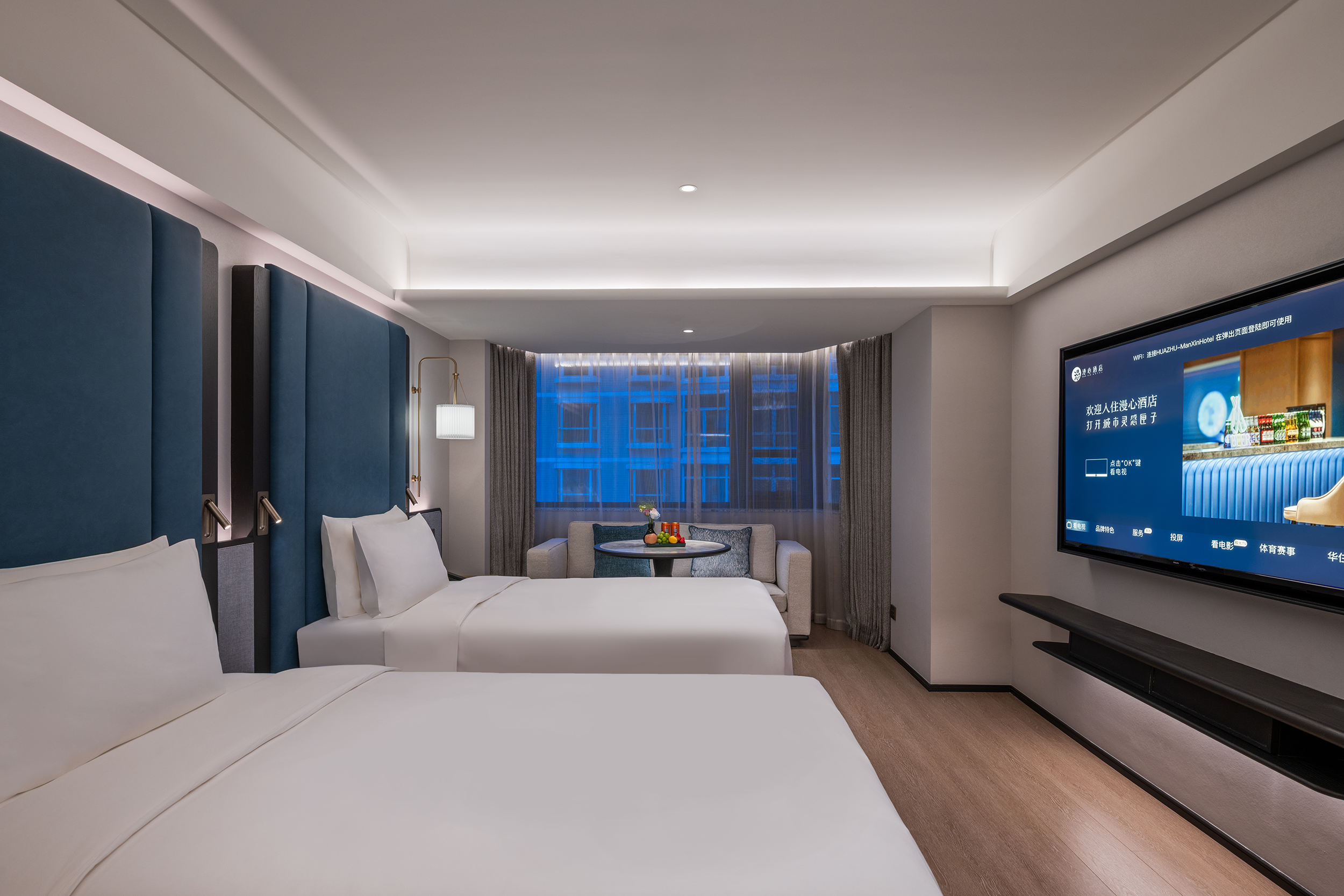 城市海岸双床房(65寸电视投屏,小冰箱,丝涟床垫)