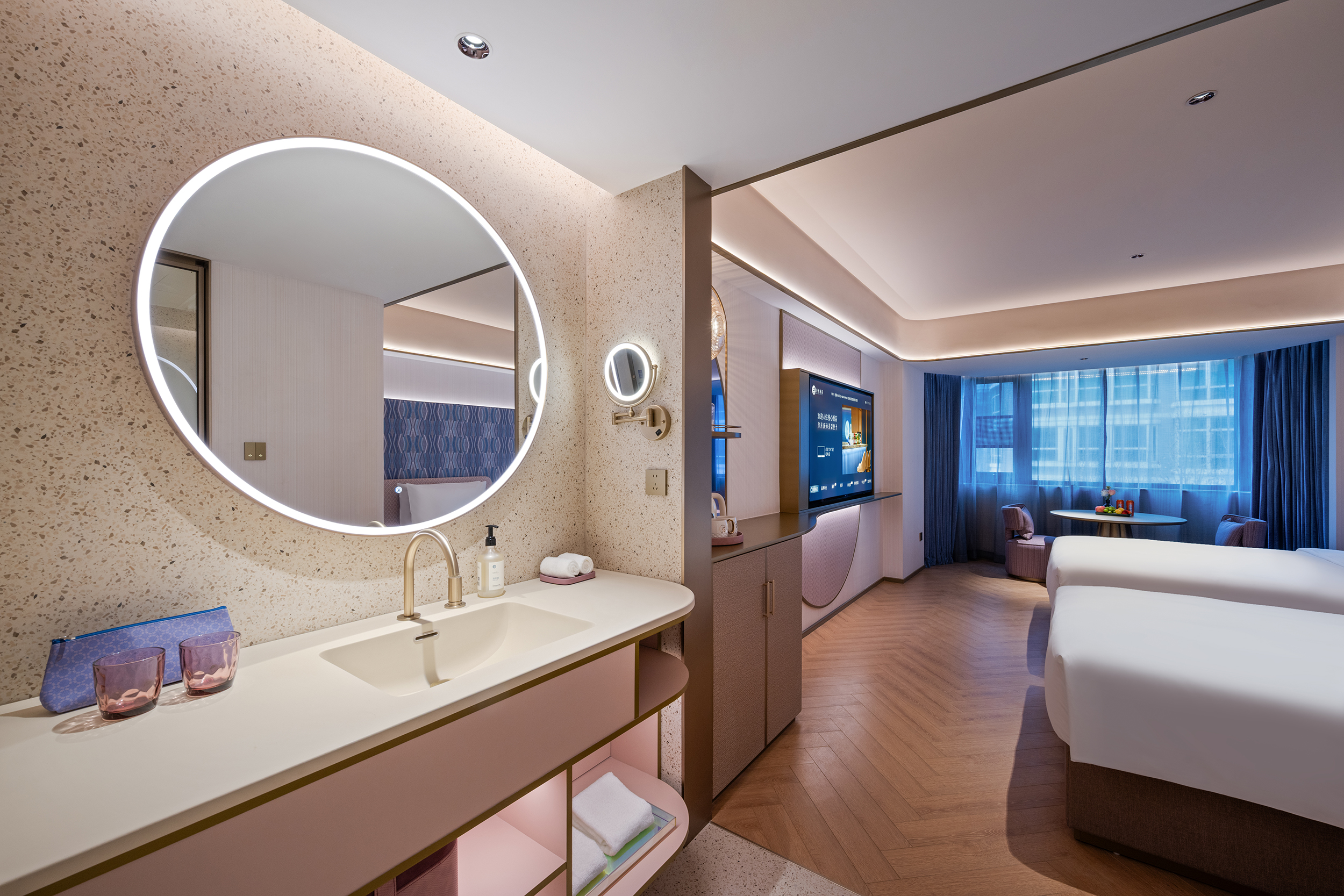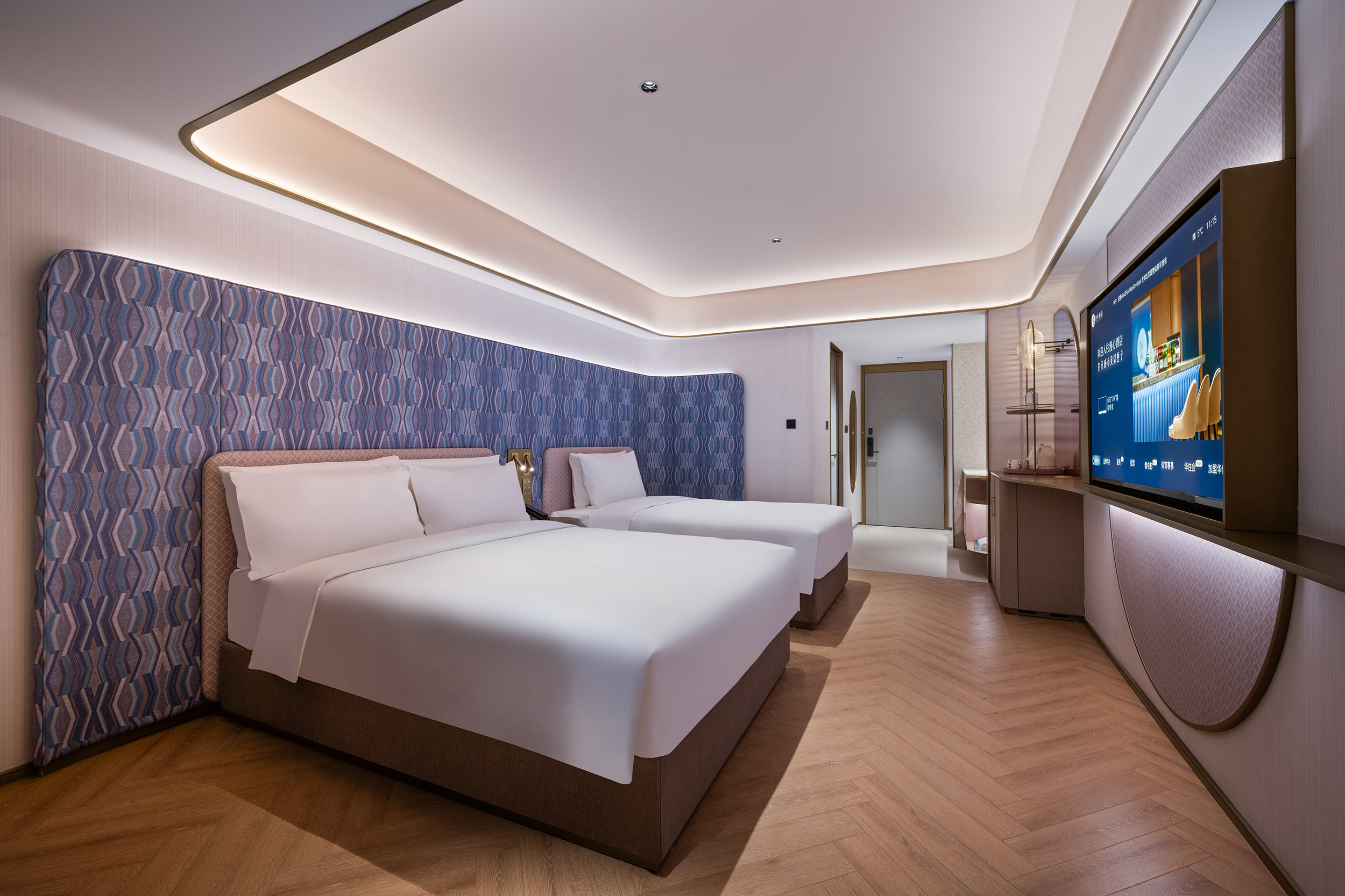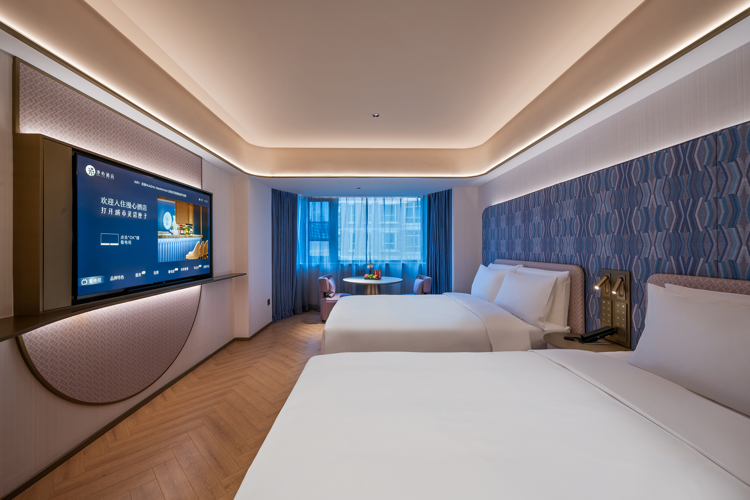 城市海岸双床房(65寸电视投屏,小冰箱,丝涟床垫)