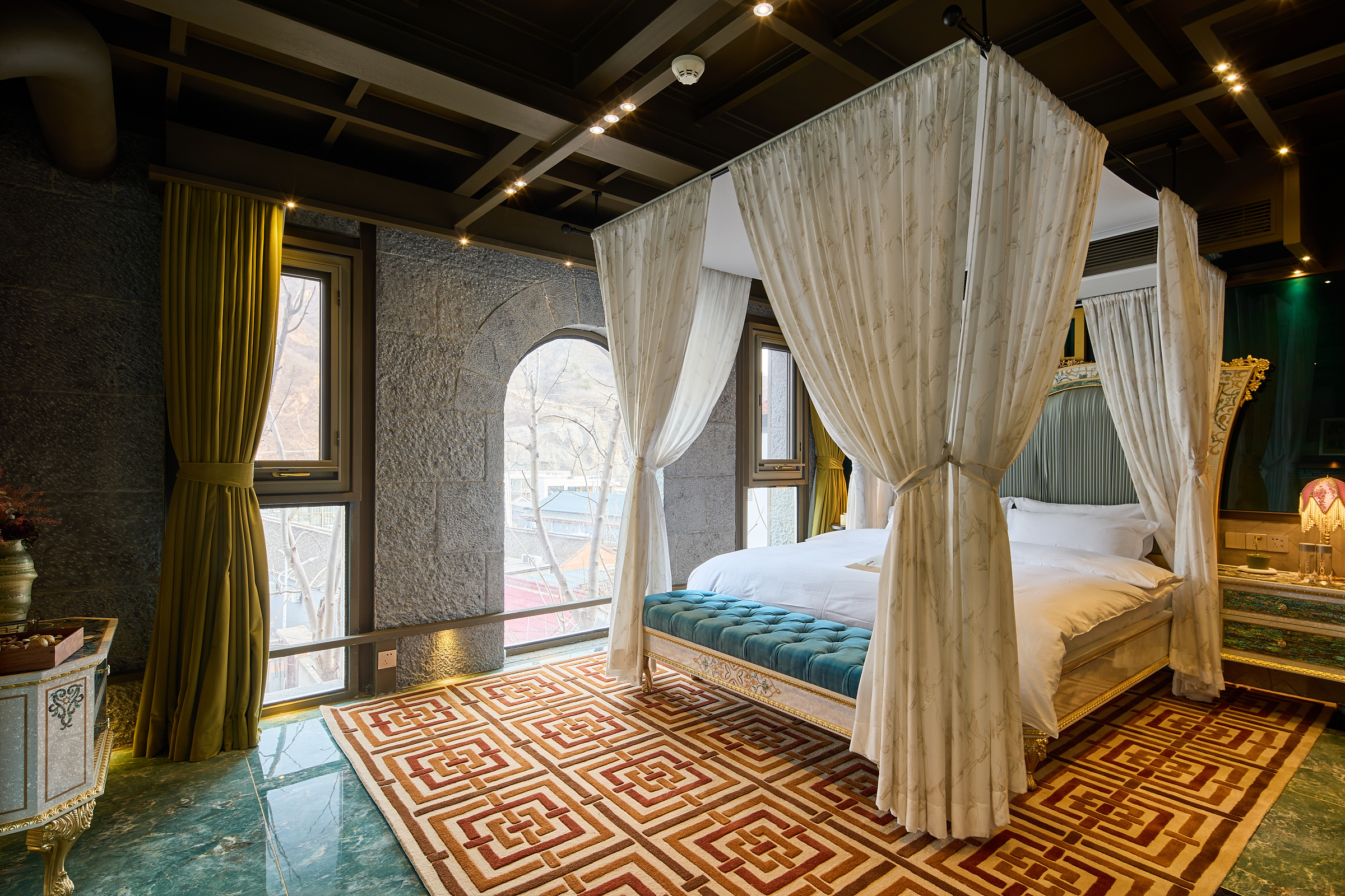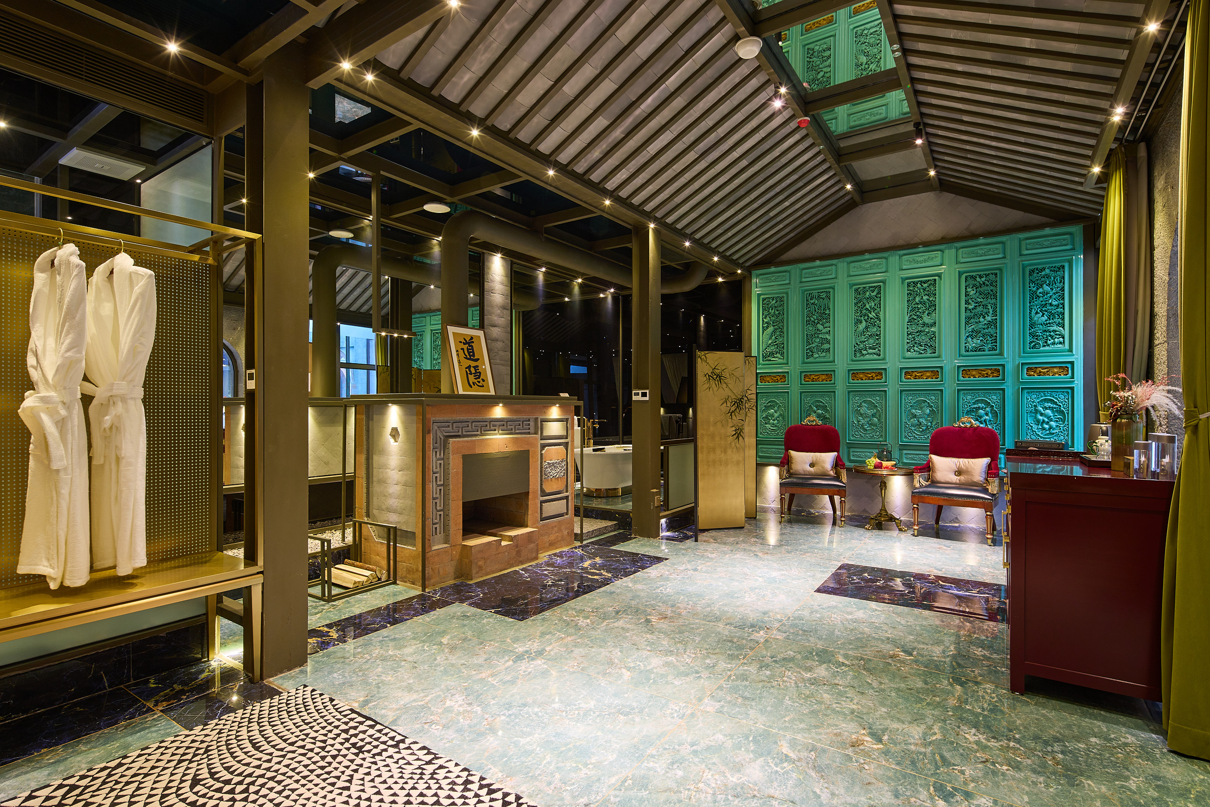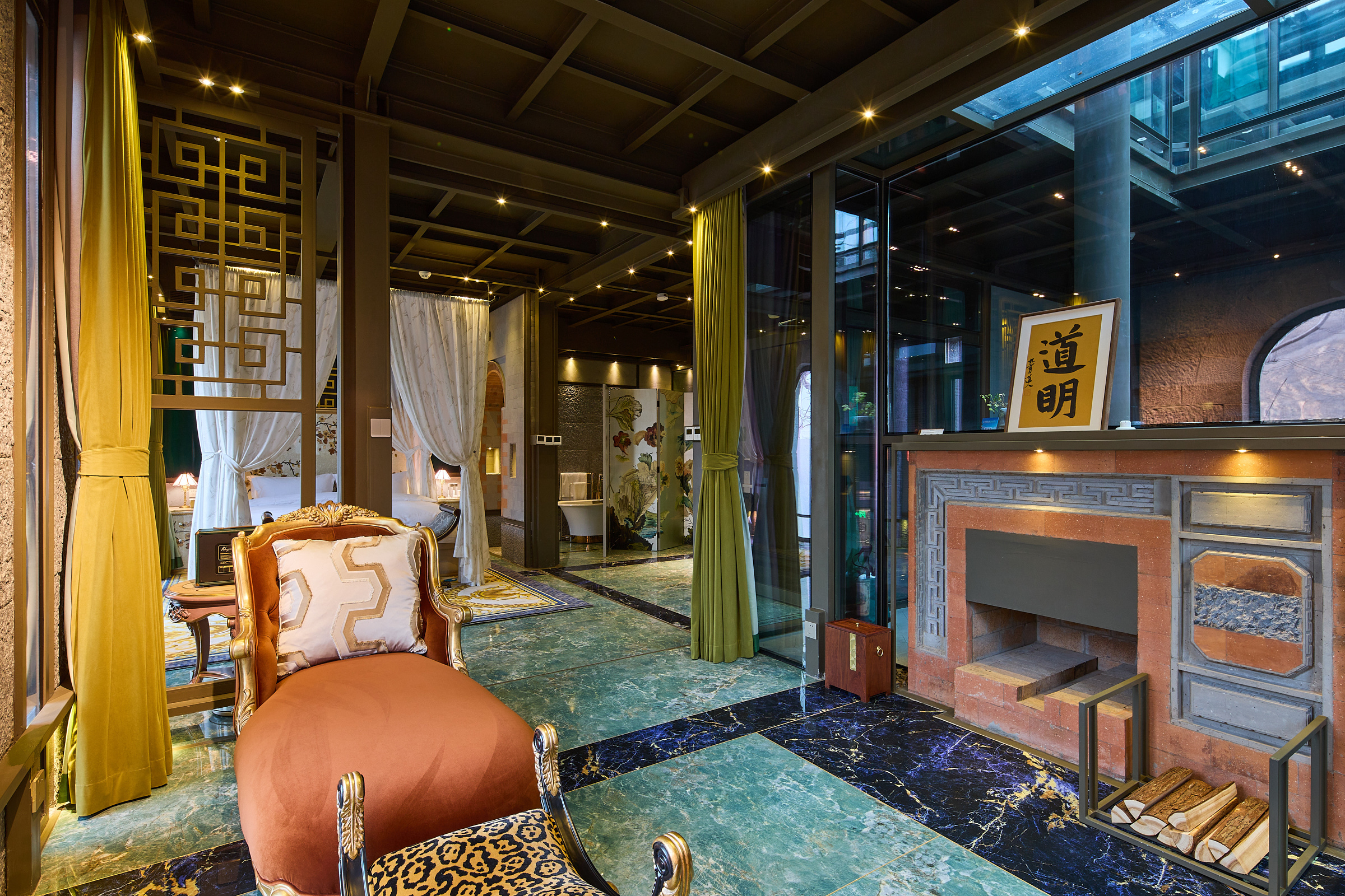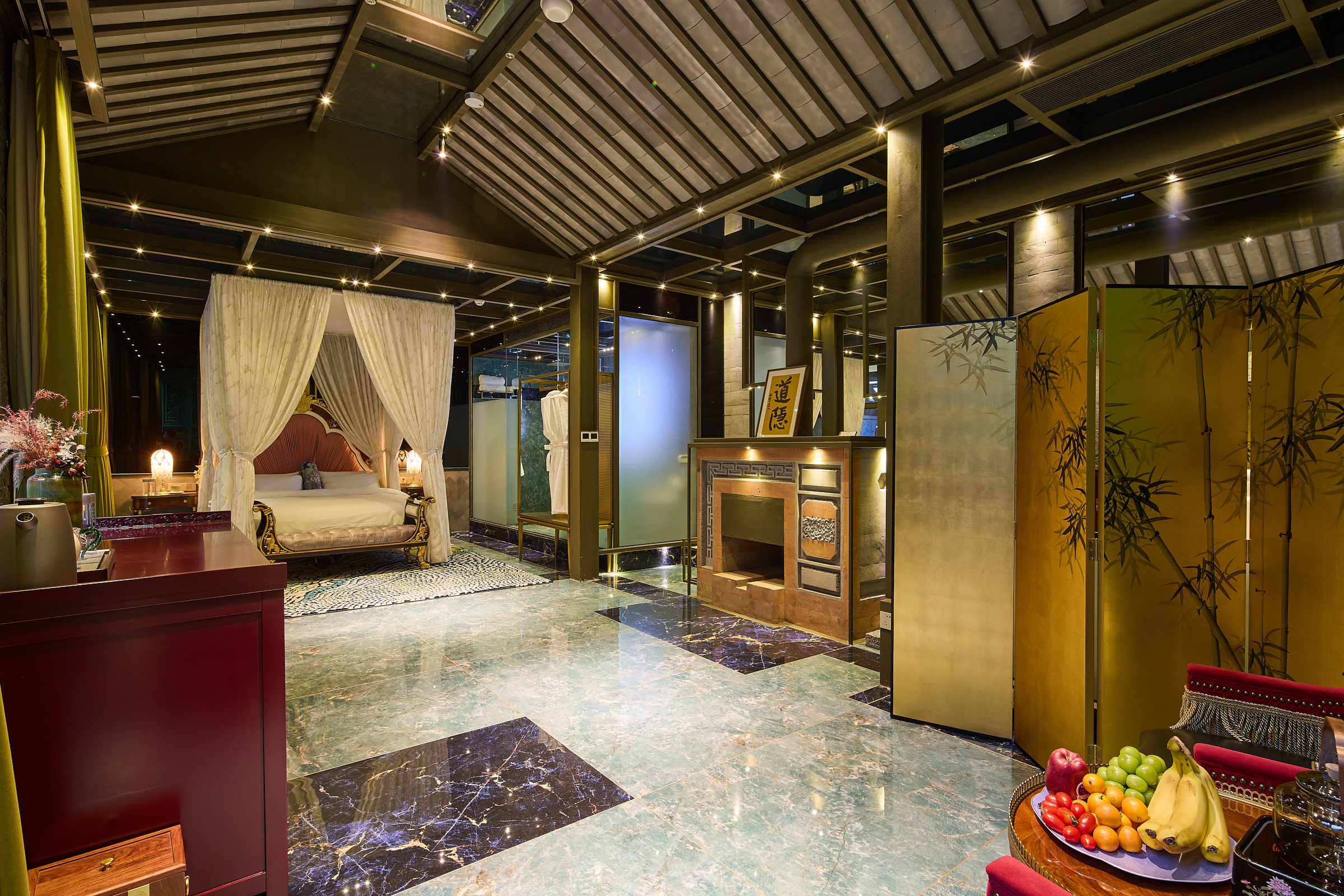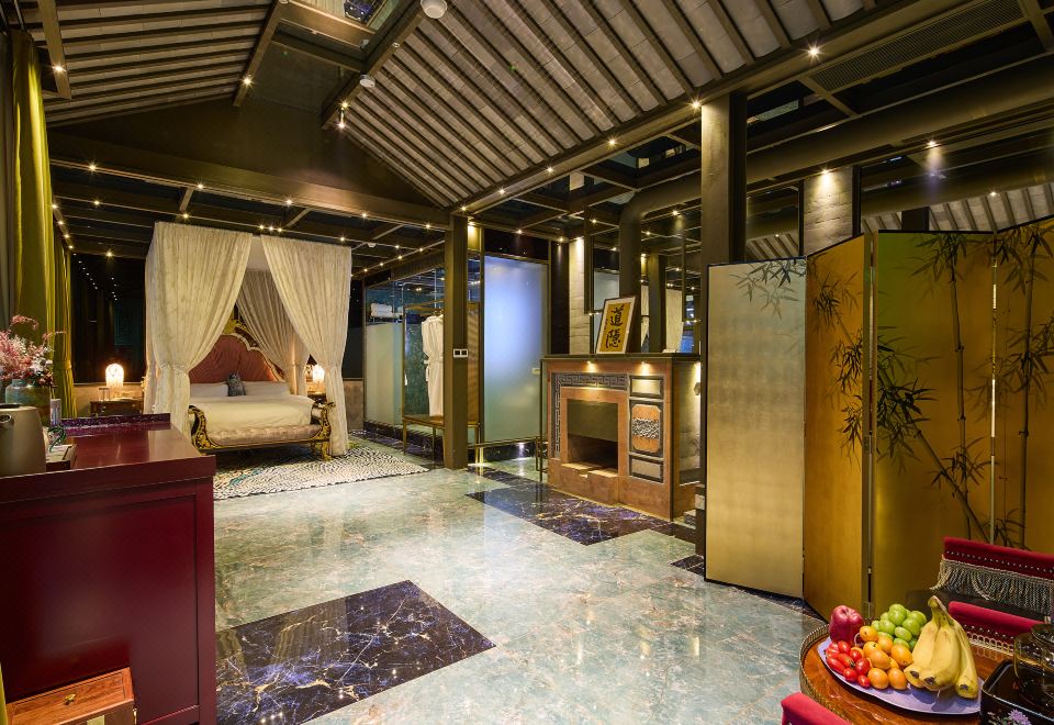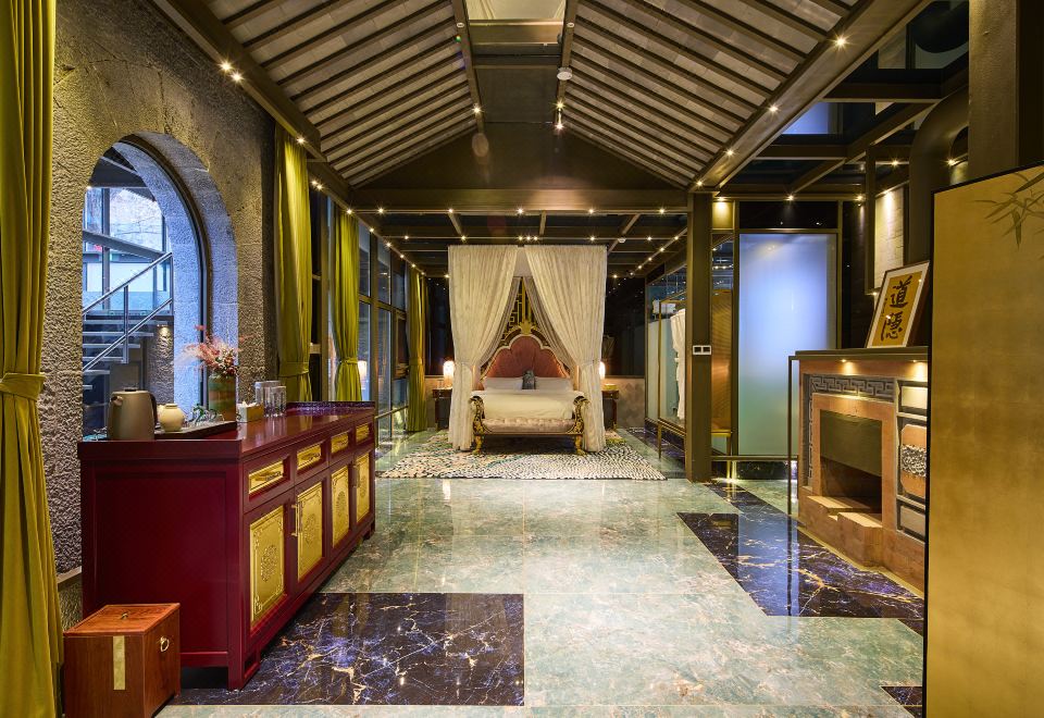 水龙吟·轻听钵吟大床房+地暖+戴森吹风机+壁炉+中式建筑风格