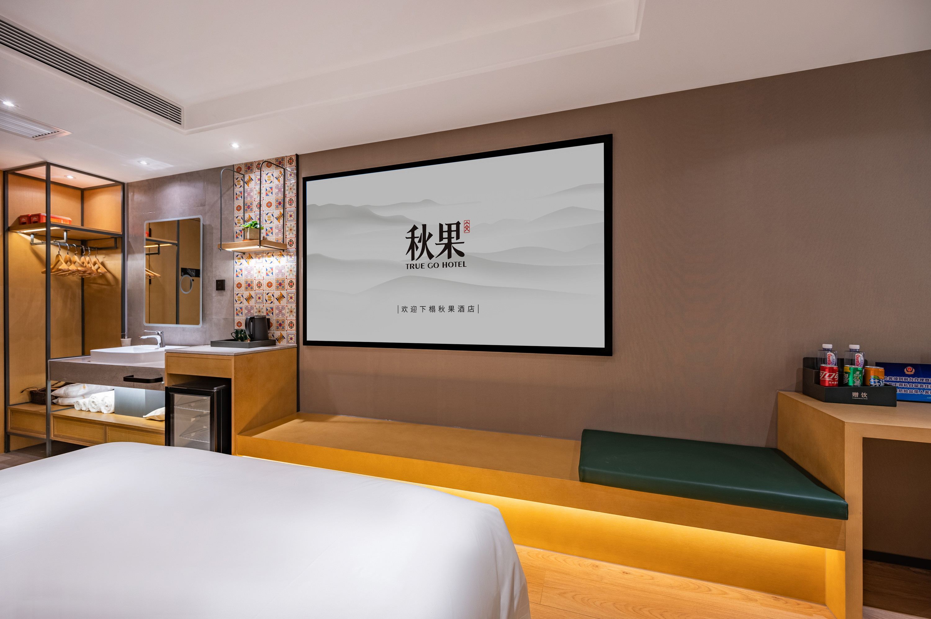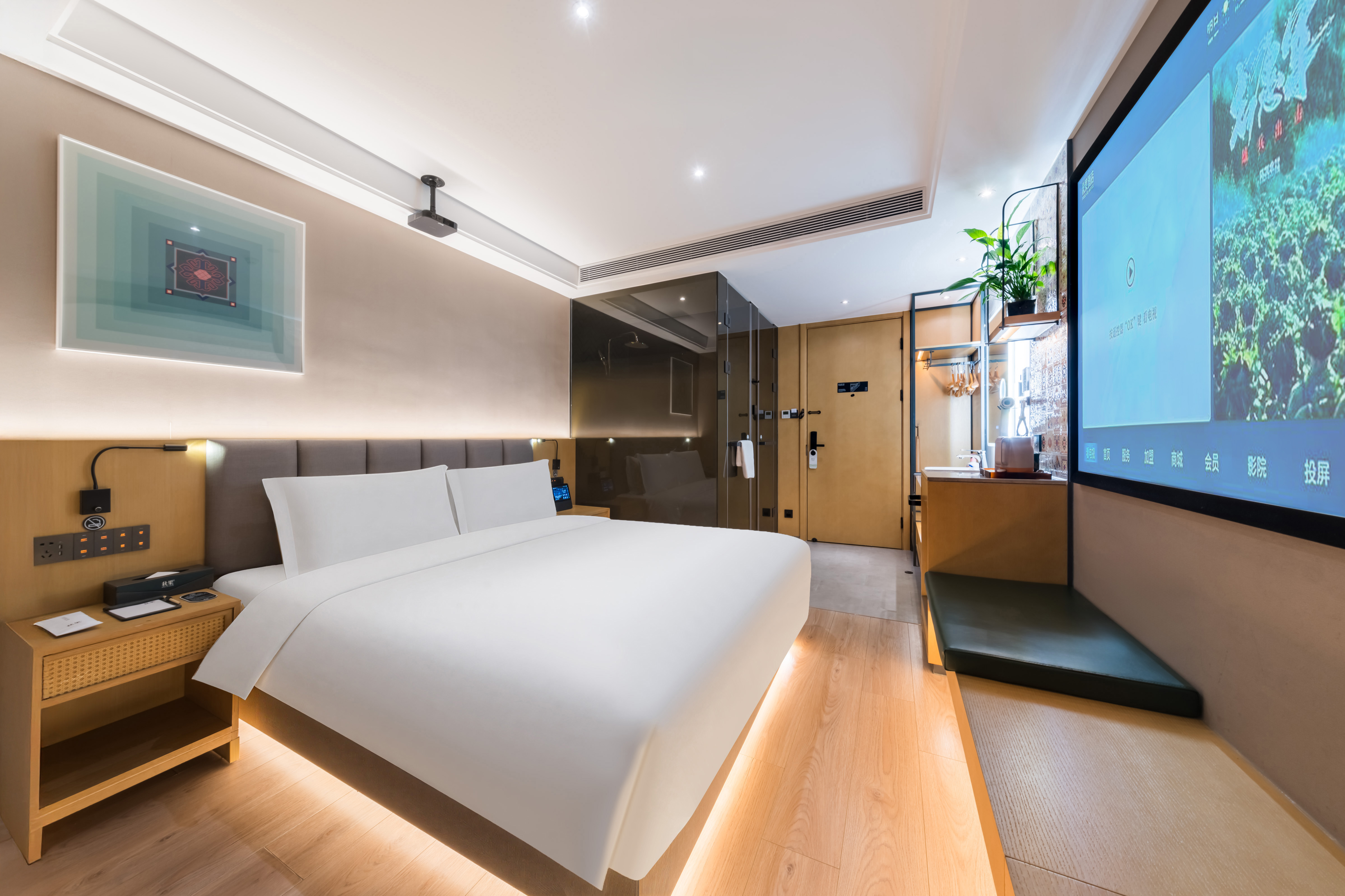 巨幕影音大床房(超大幕布+新风系统+小冰箱)