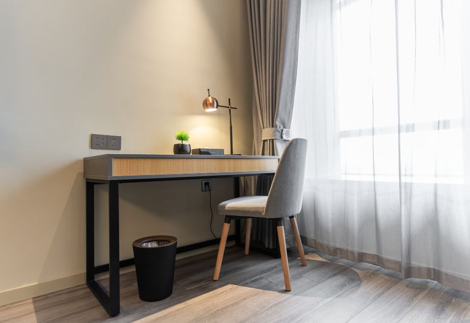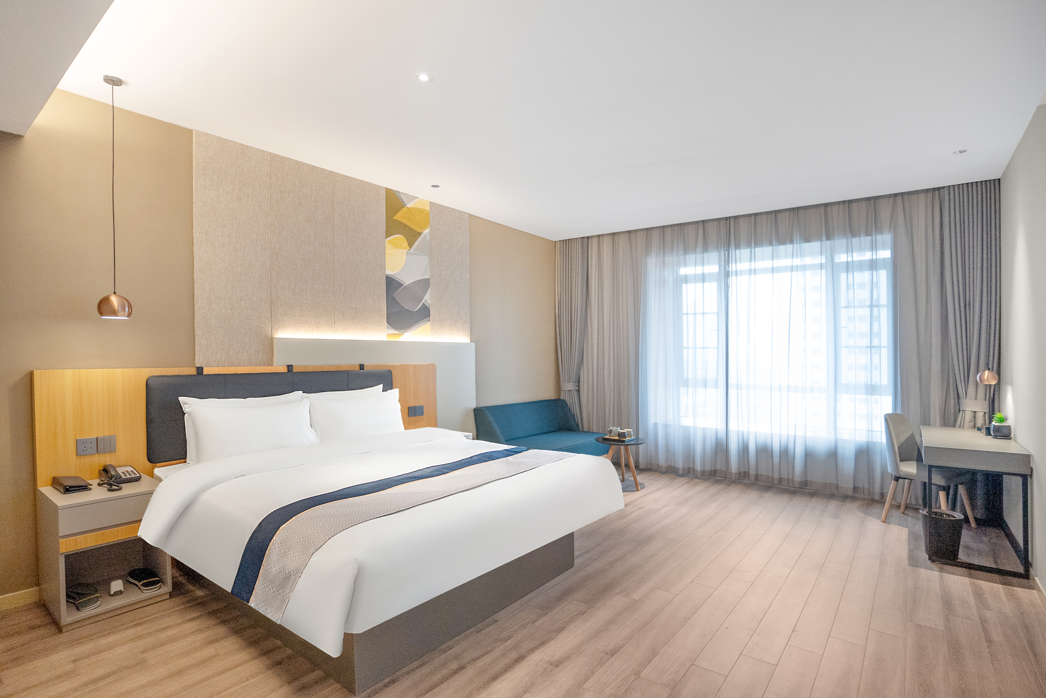 高级大床房(静谧舒适+舒适沙发+商务办公桌椅+空间大)