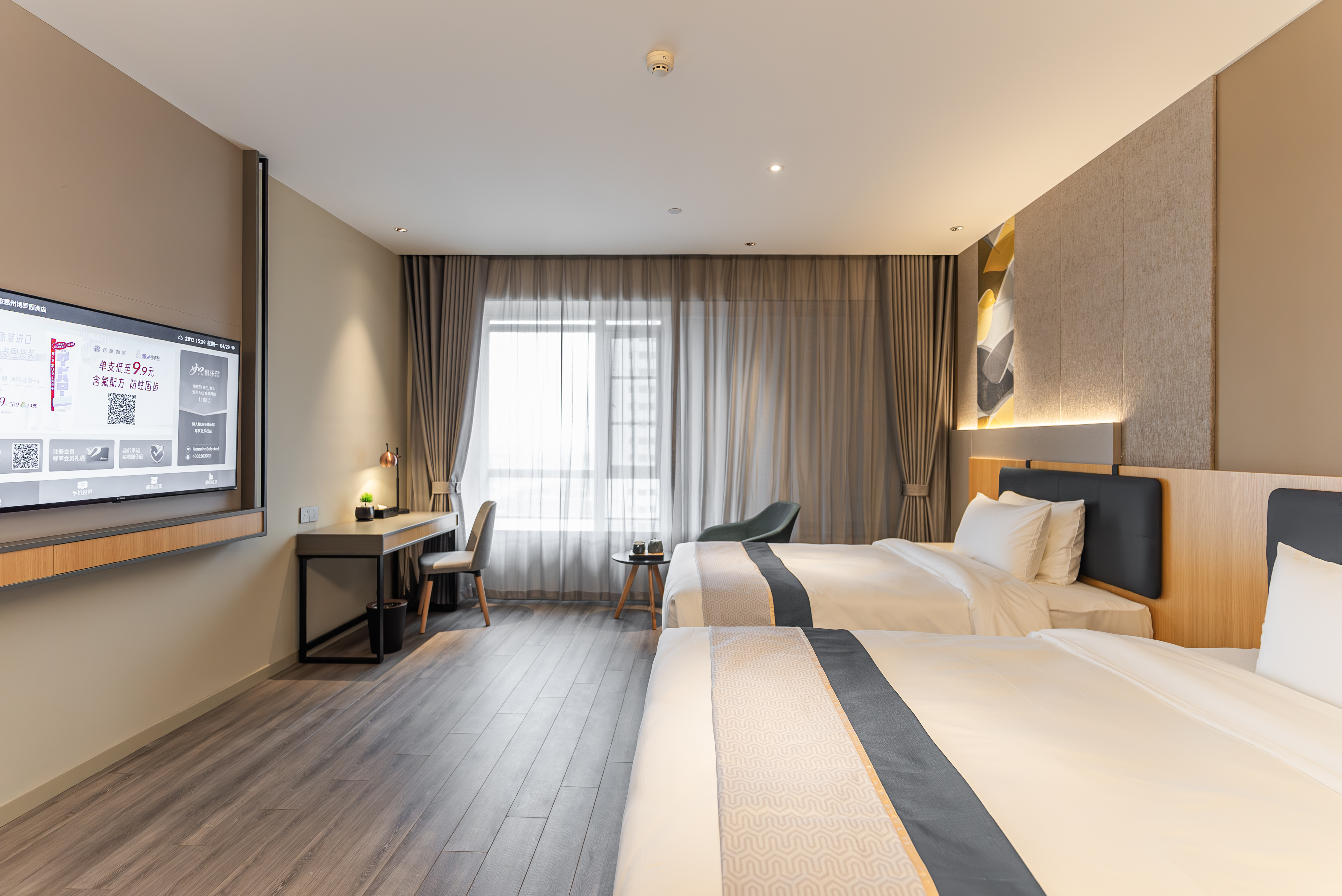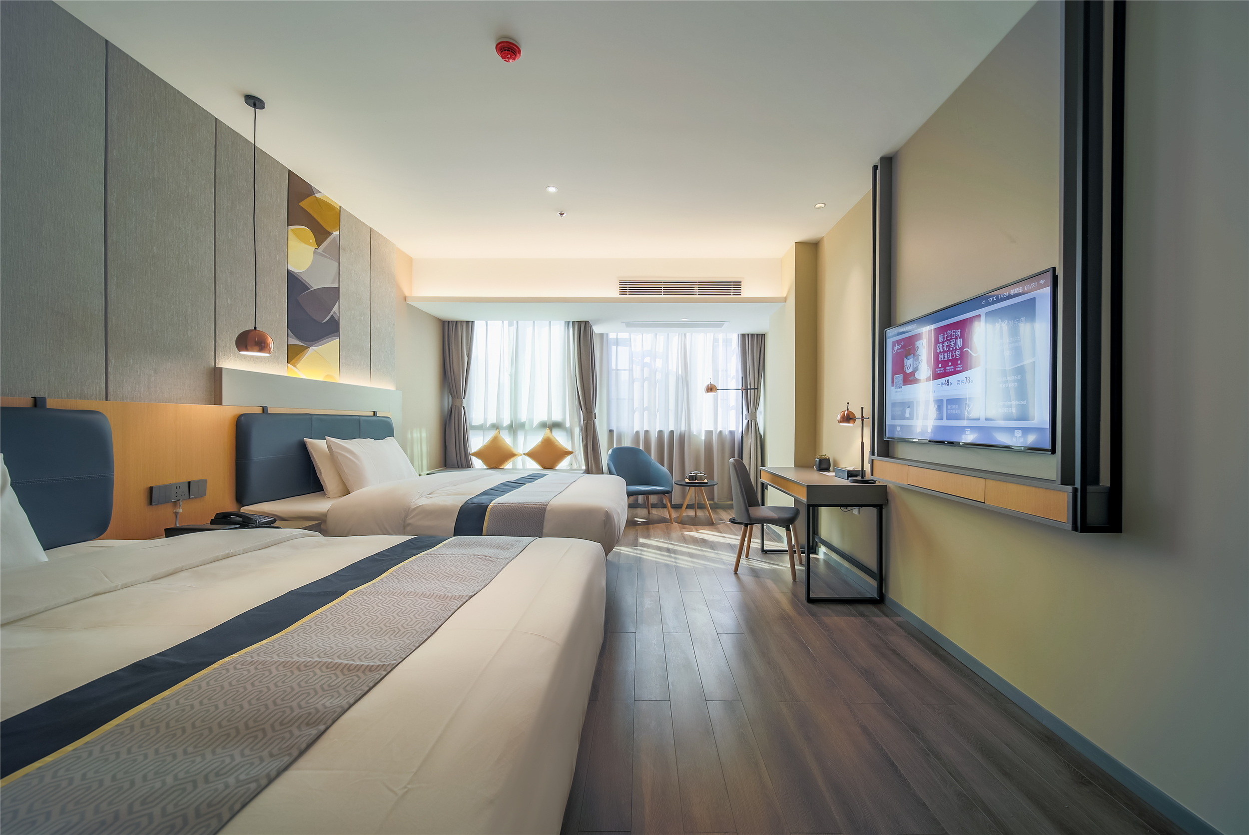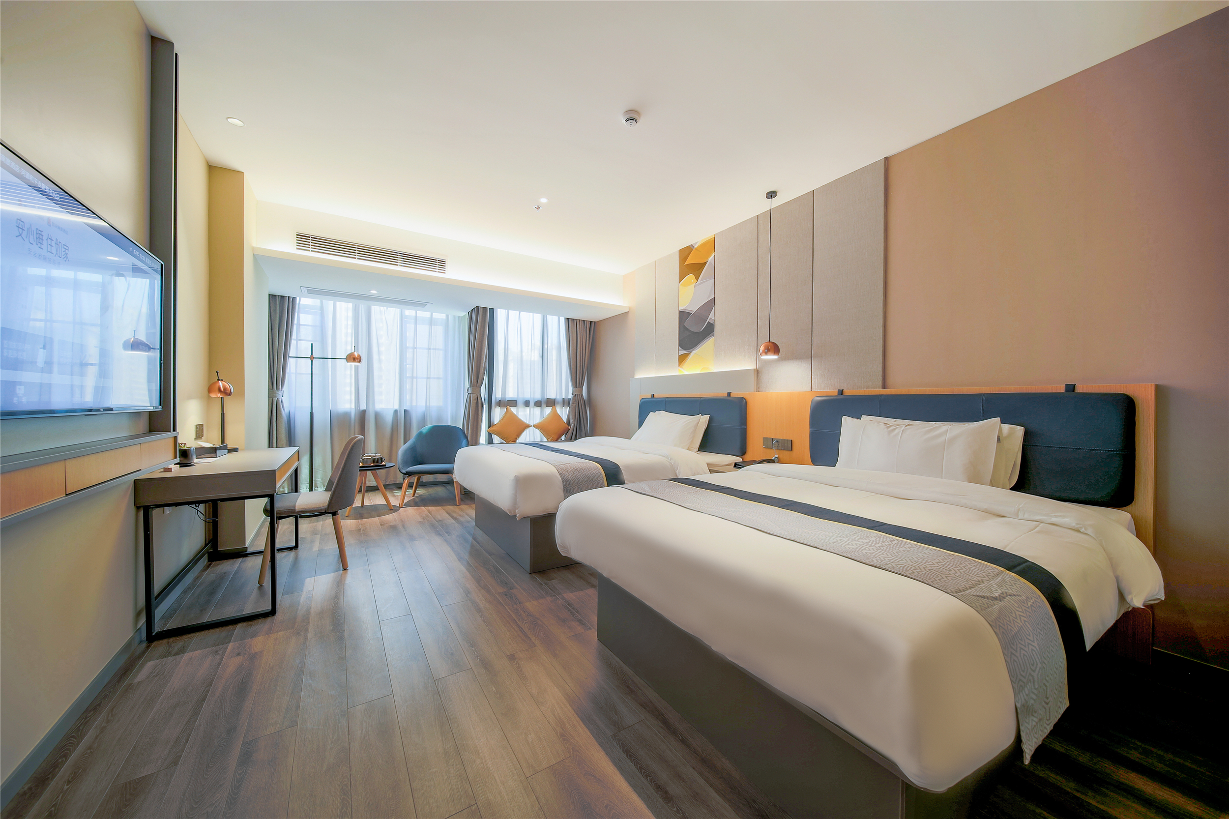 高级双床房(静谧舒适+电视投屏+商务办公桌椅)