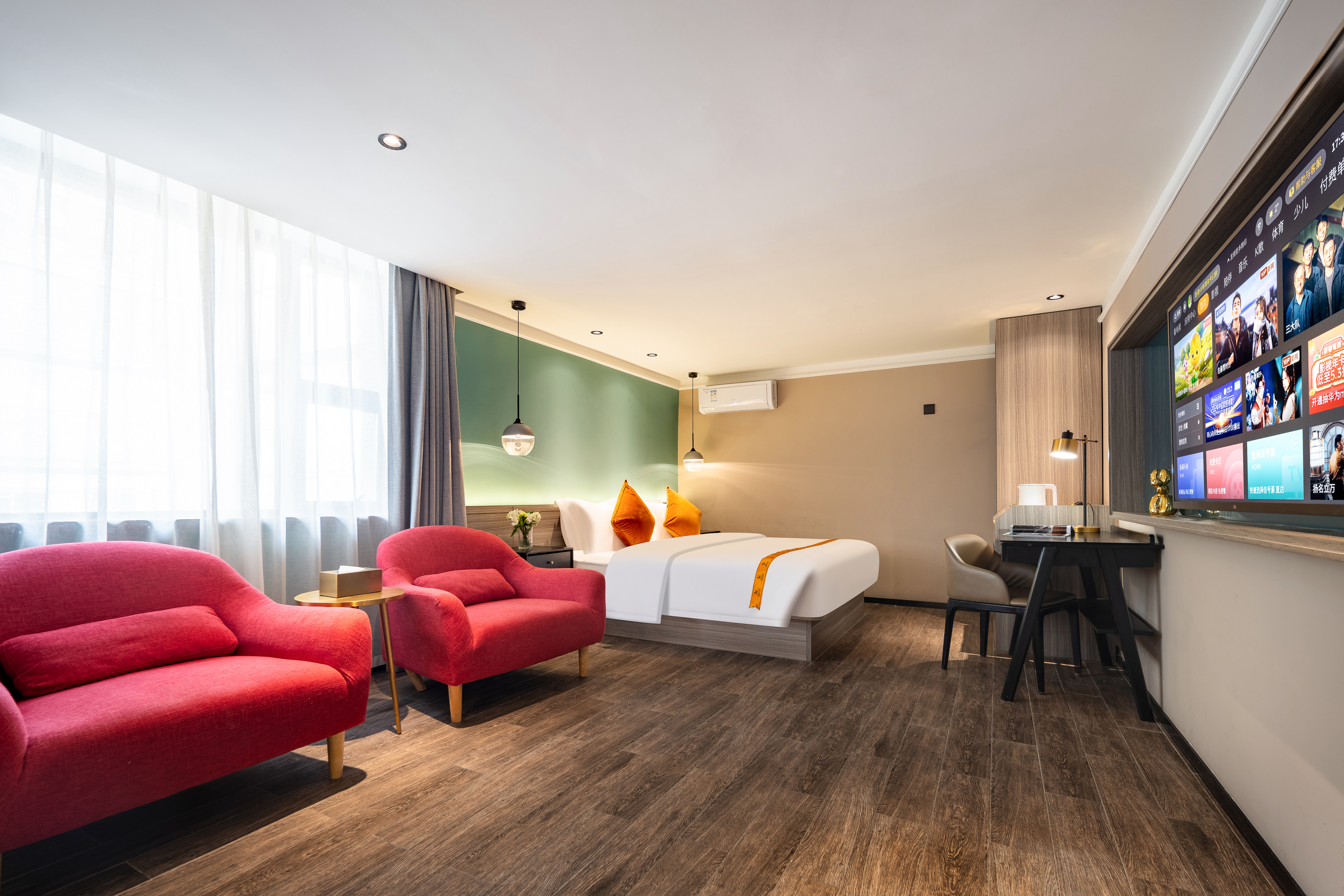 智能語音大床房(語音喚醒+冰箱+書桌+深睡護頸枕+全包裹深睡床墊+手機投屏)