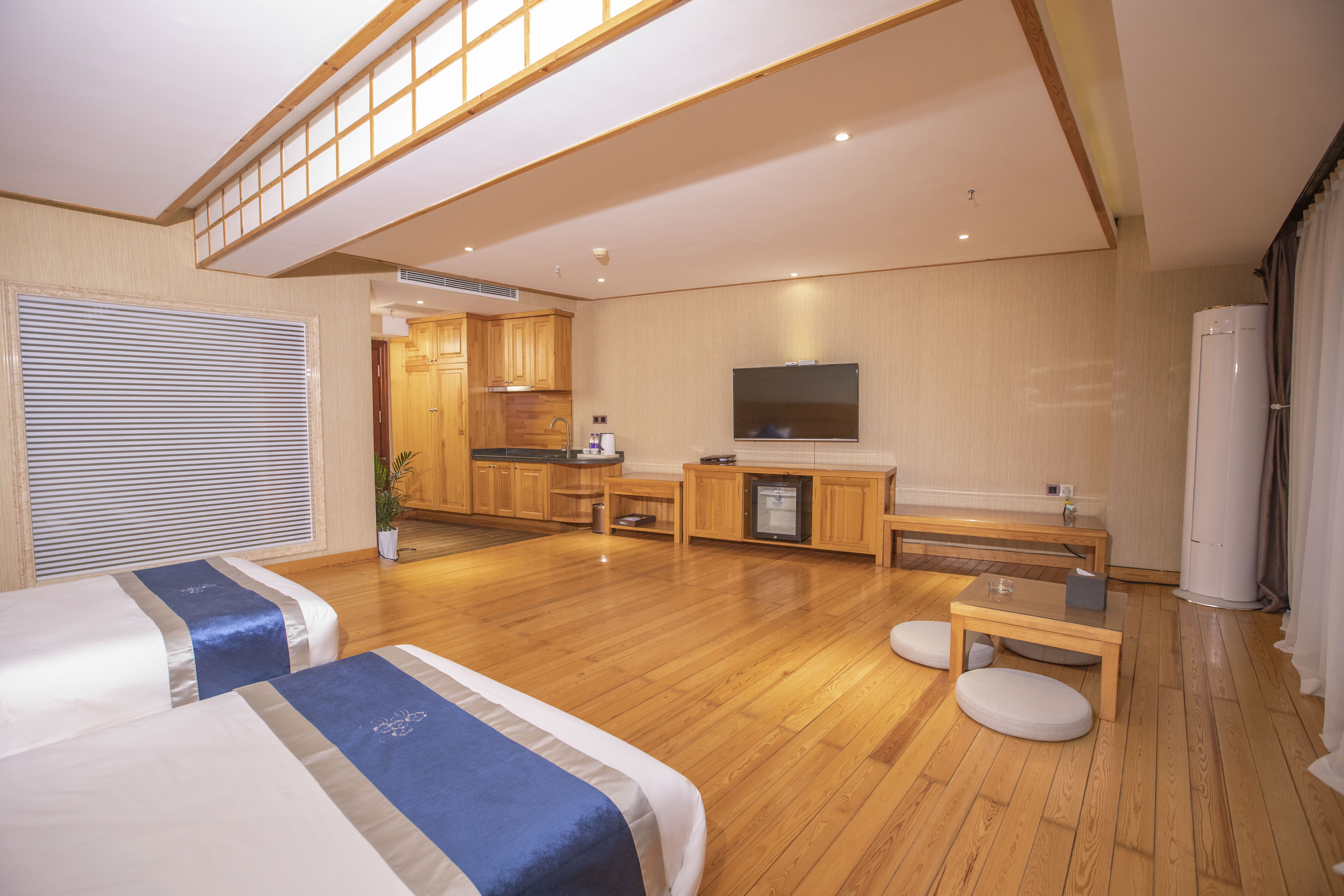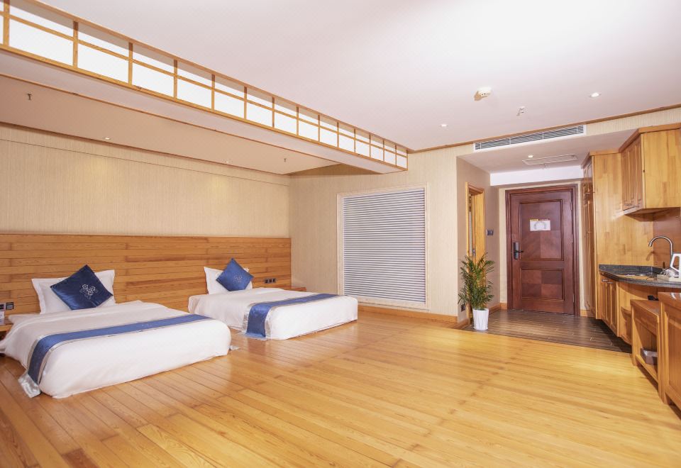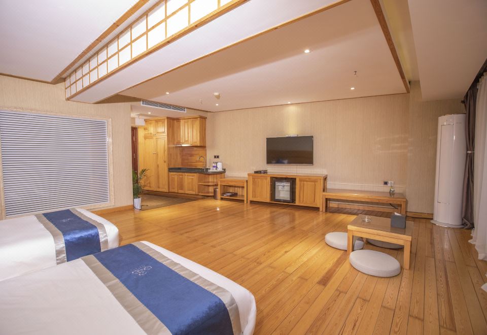 沐夏·半岛|榻榻米双床房(180°观景禅意茶台· 护脊舒压深睡床垫 · 60织悦眠柔梦亲肤布草· DIY厨房)